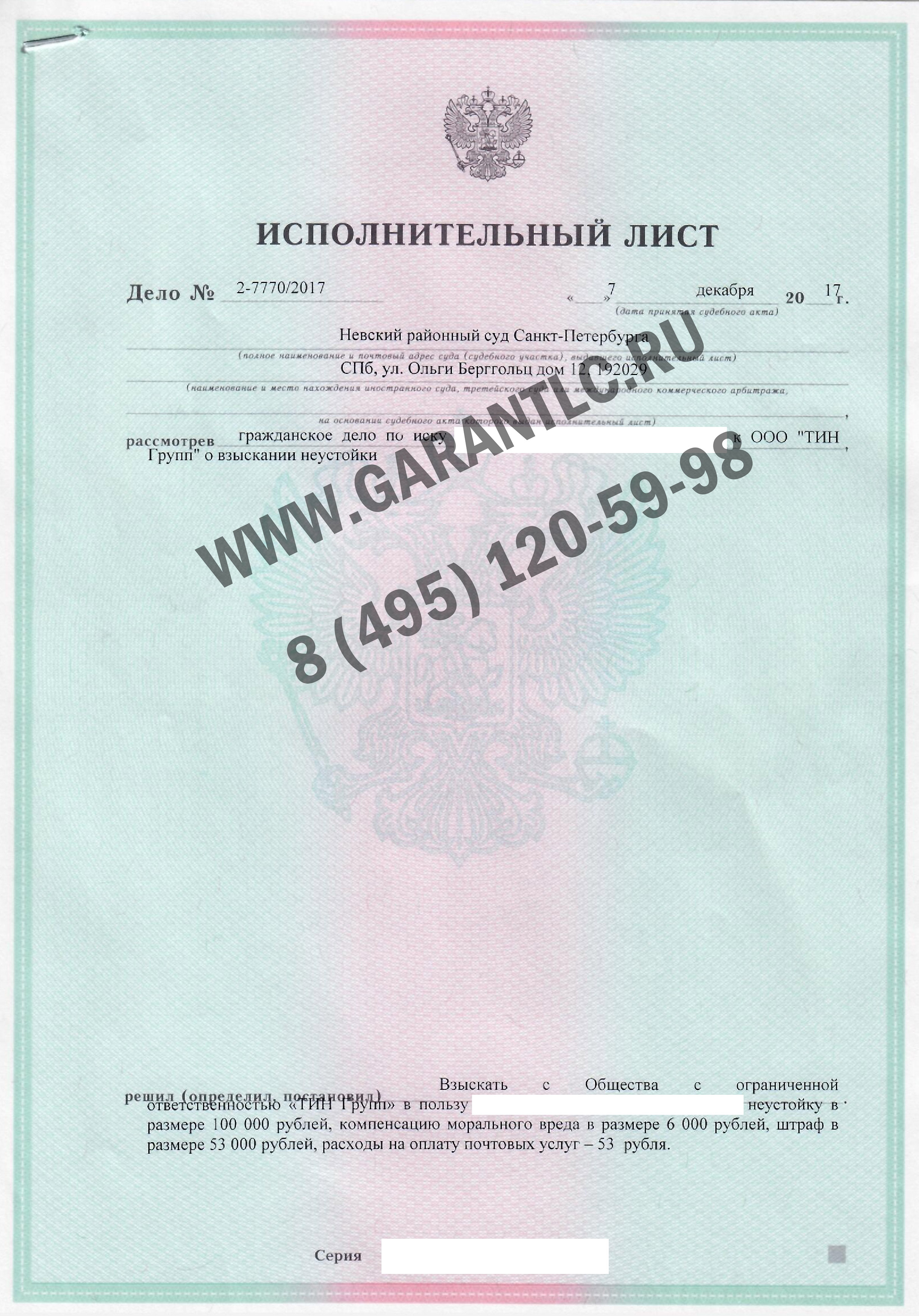 Суд с застройщиком, работа по исполнительному листу