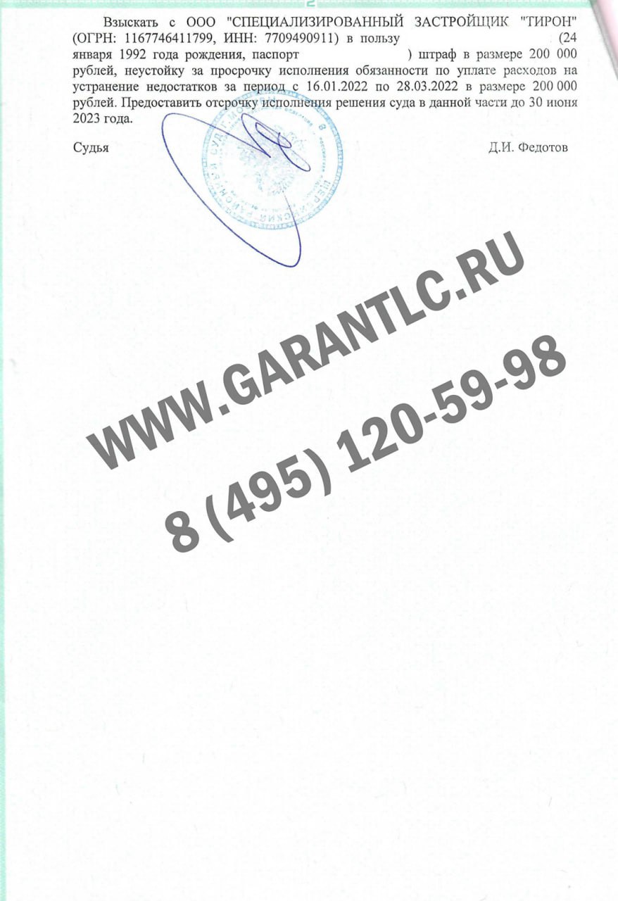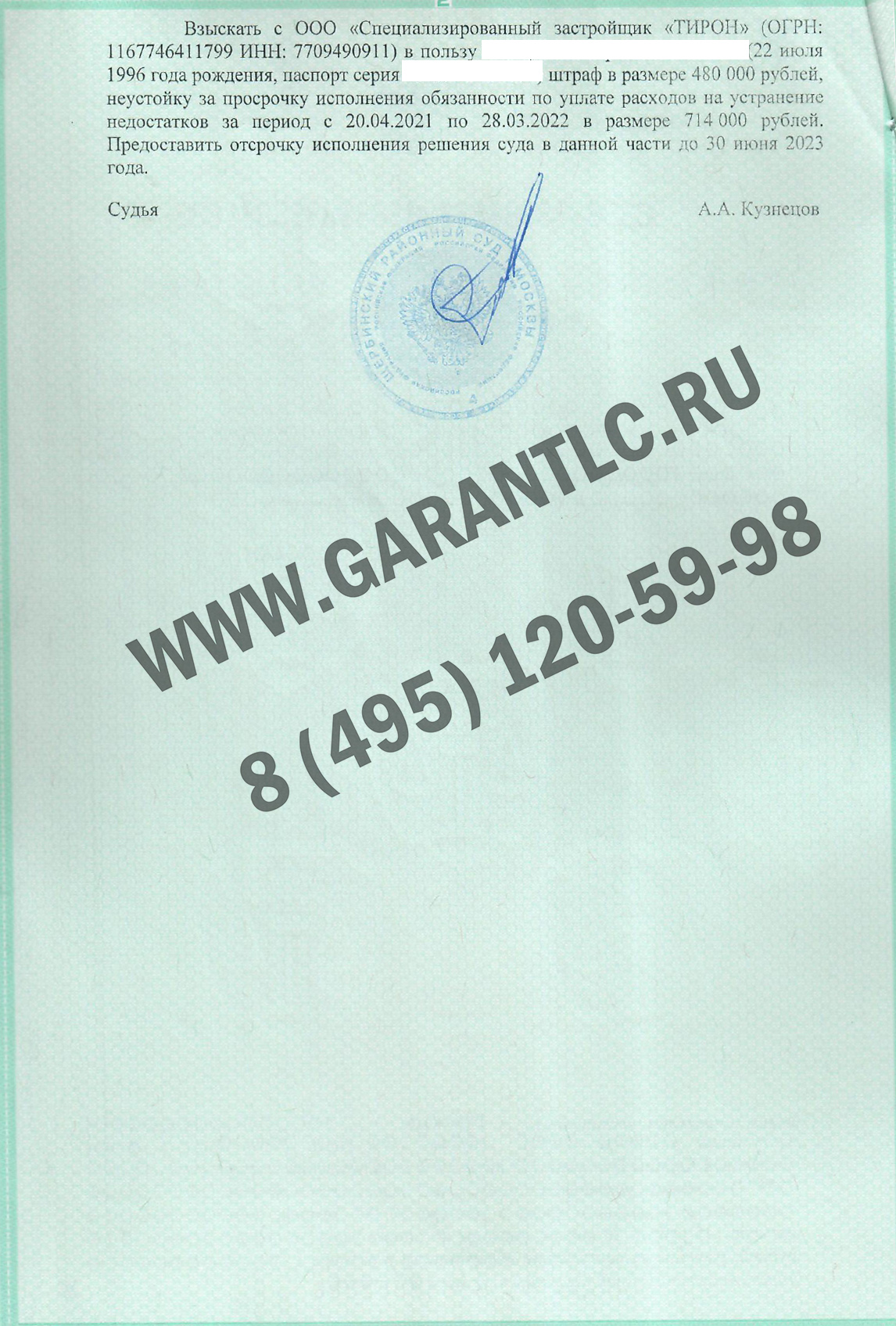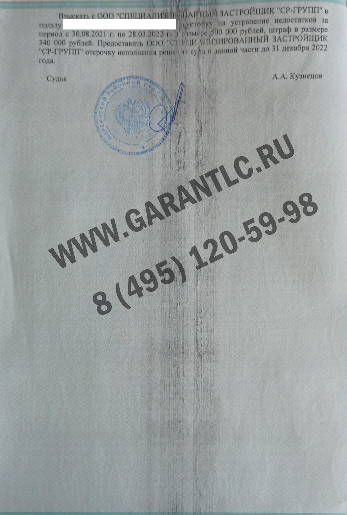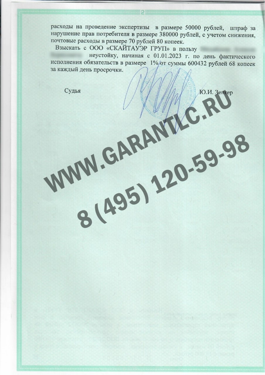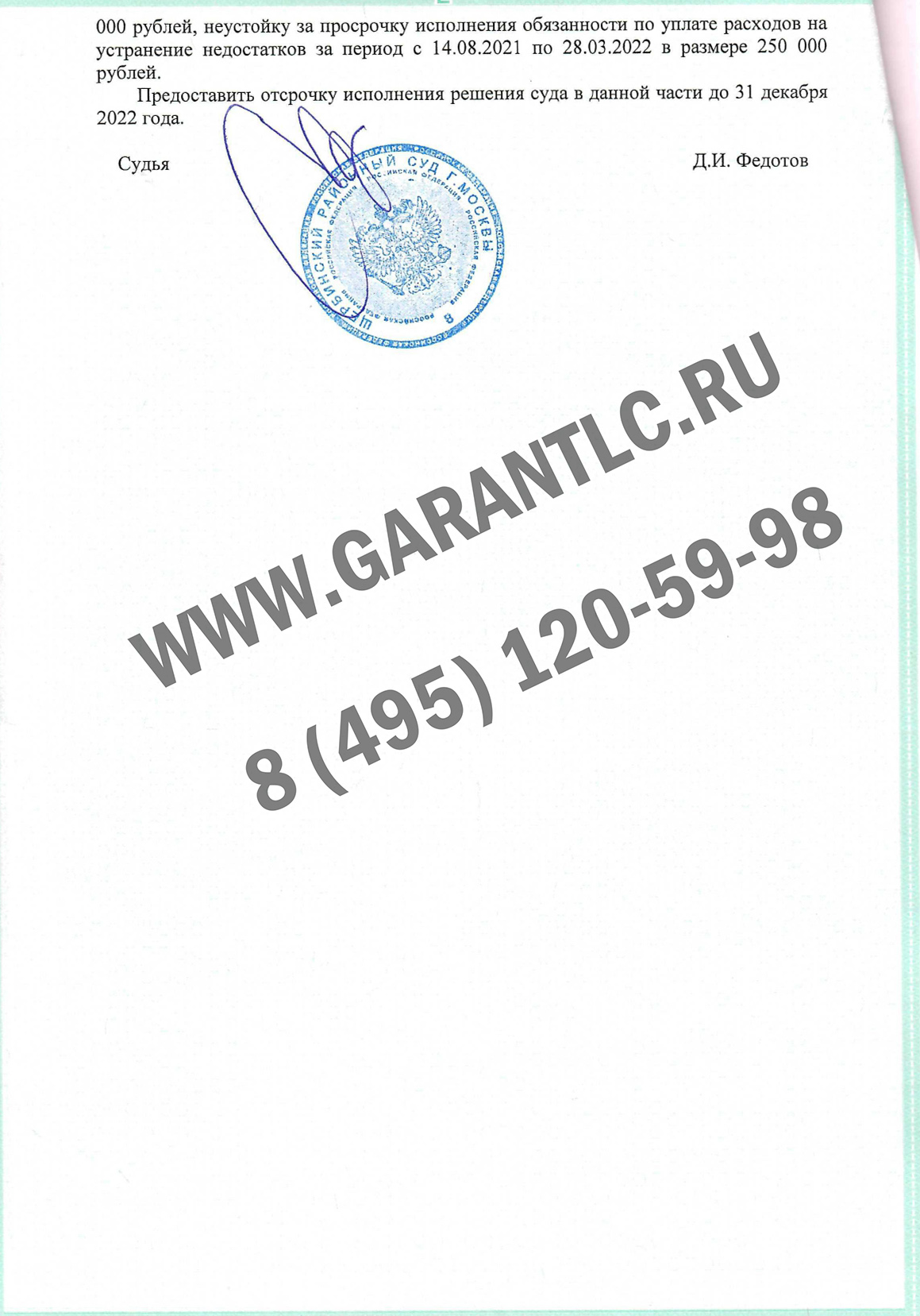 Судебная практика ЮК ГАРАНТ по взысканию компенсации за недостатки в отделке от застройщика (соразмерное уменьшение покупной цены)