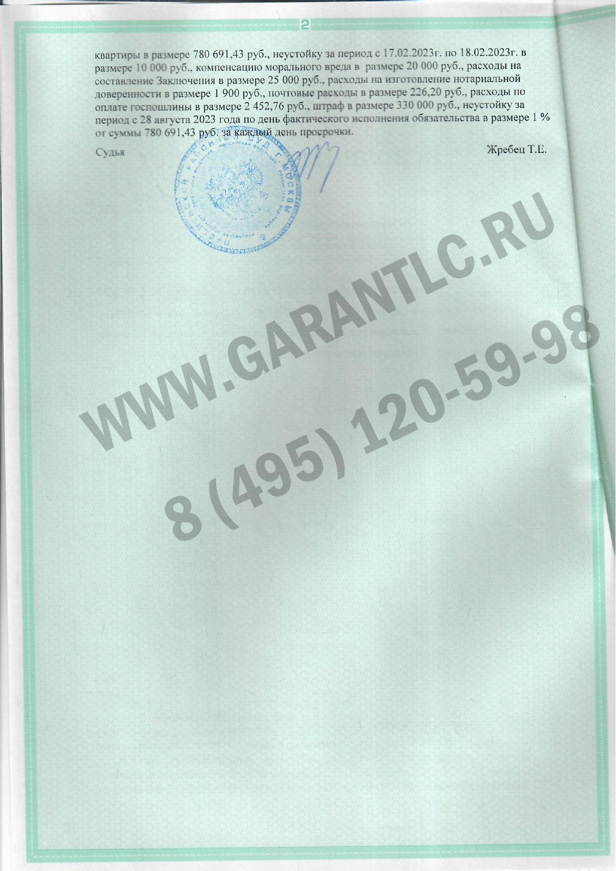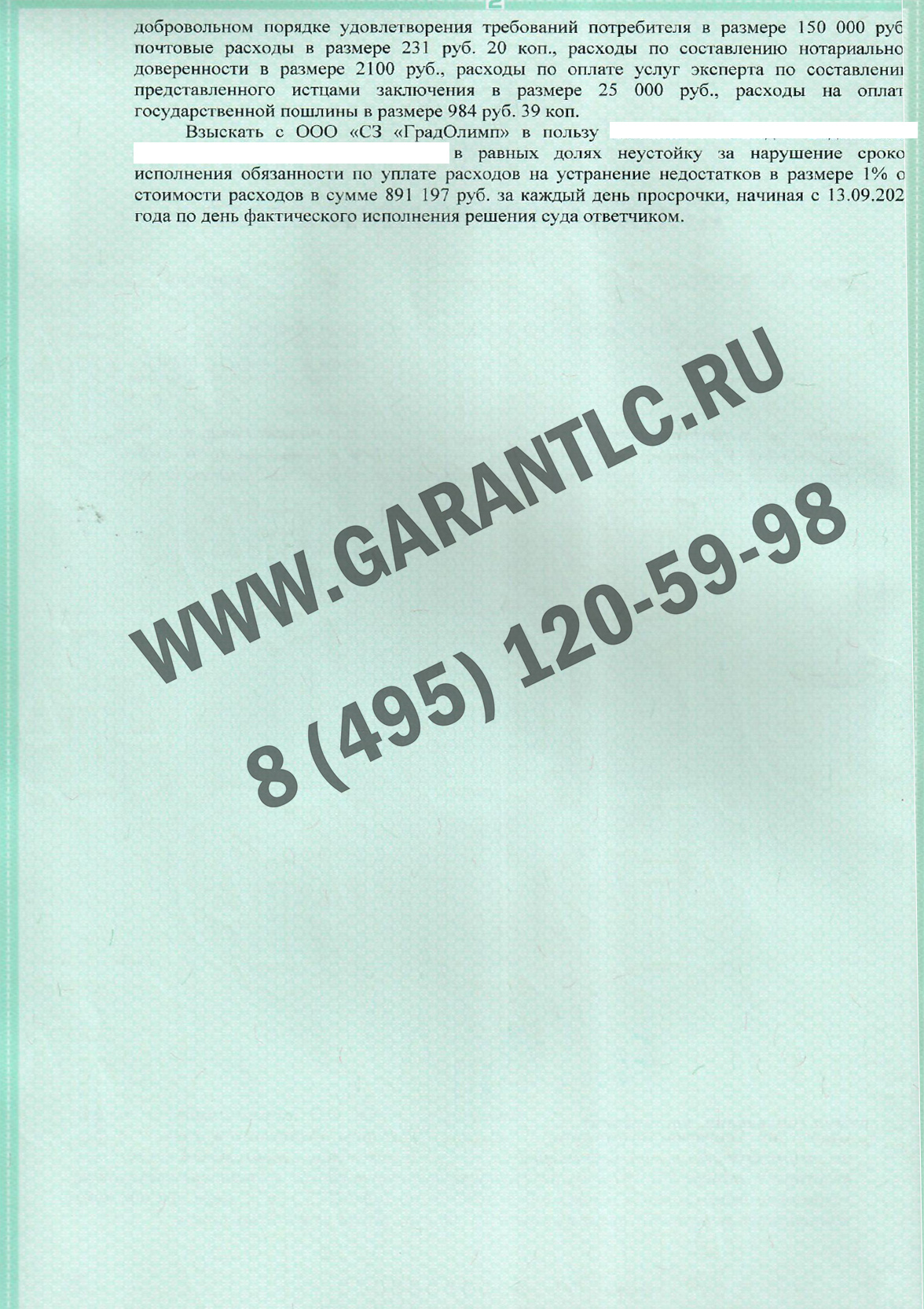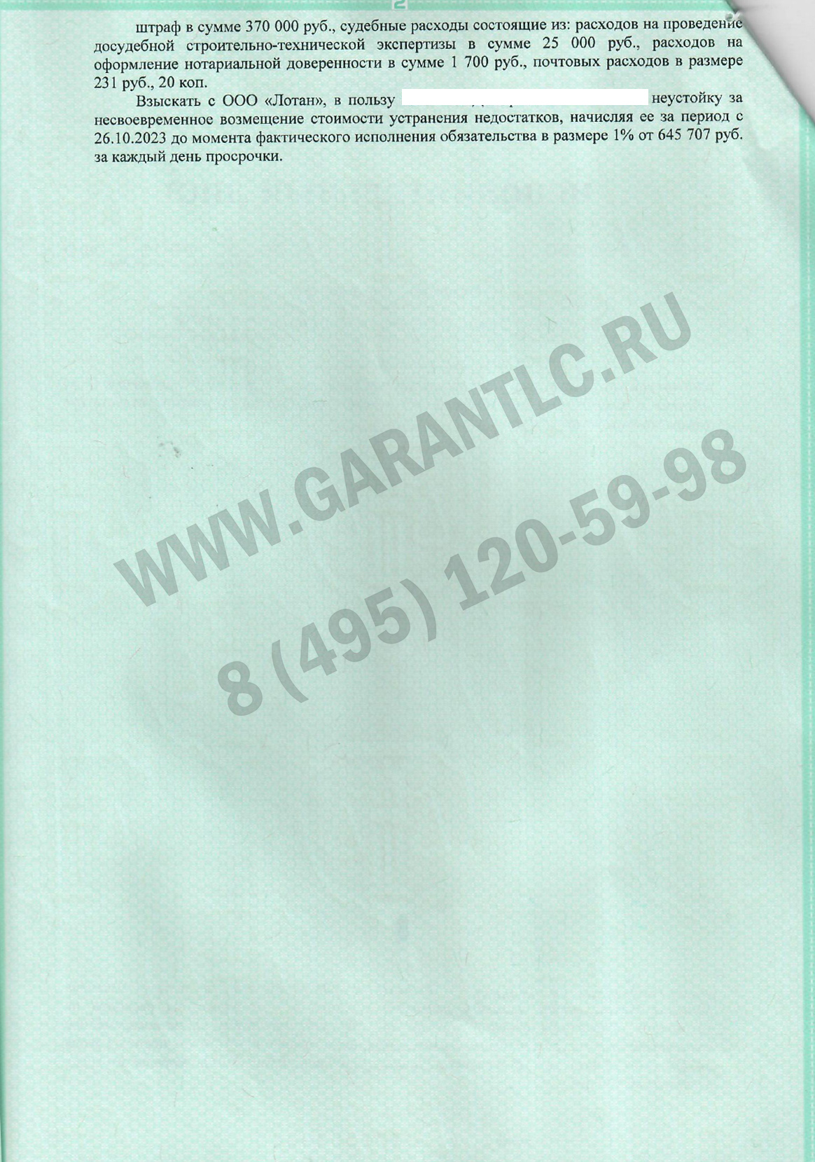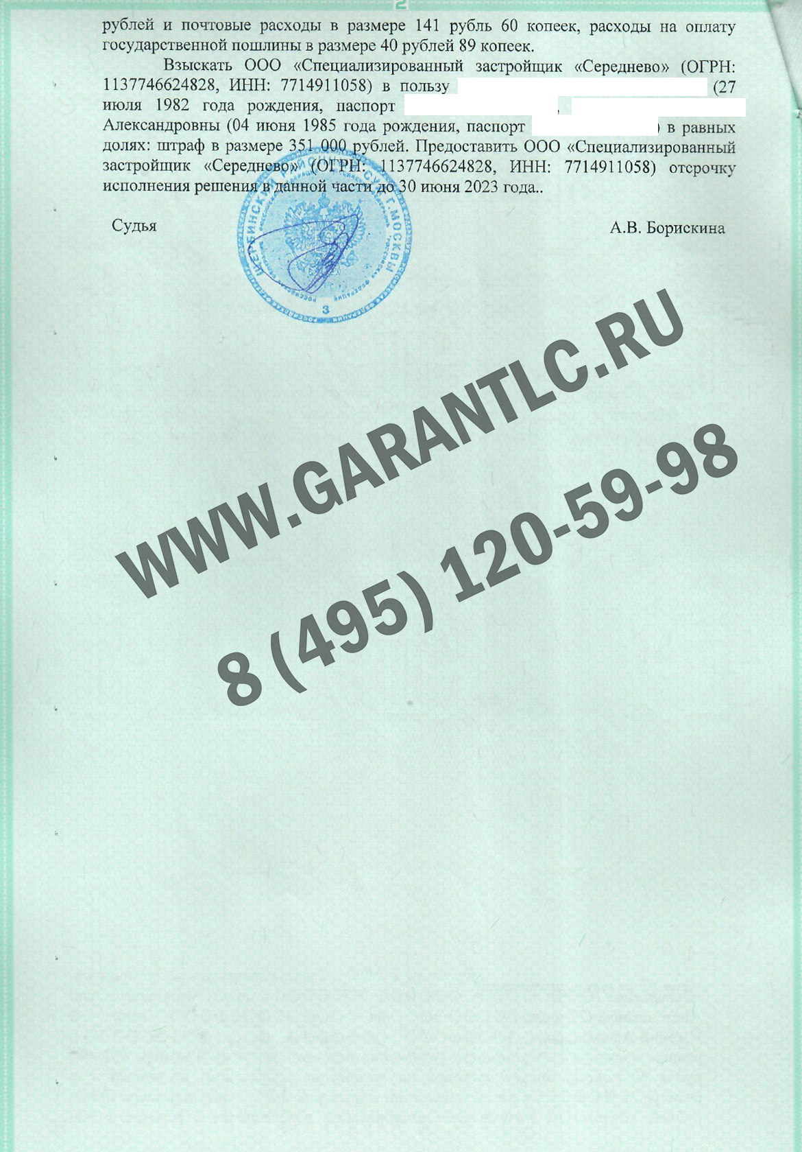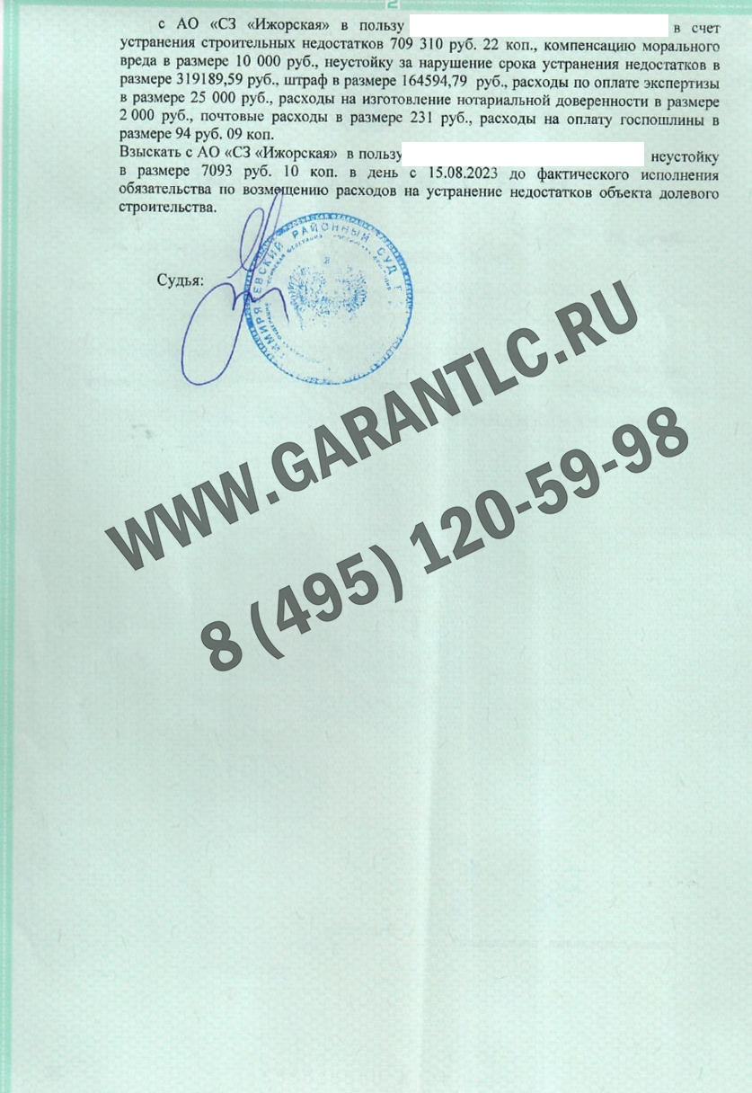Судебная практика ЮК ГАРАНТ по взысканию компенсации за недостатки в отделке от застройщика (соразмерное уменьшение покупной цены)