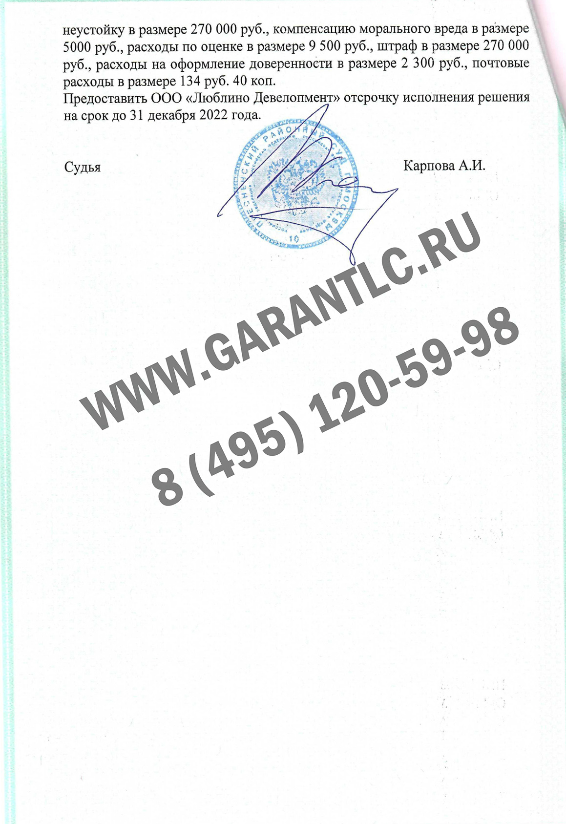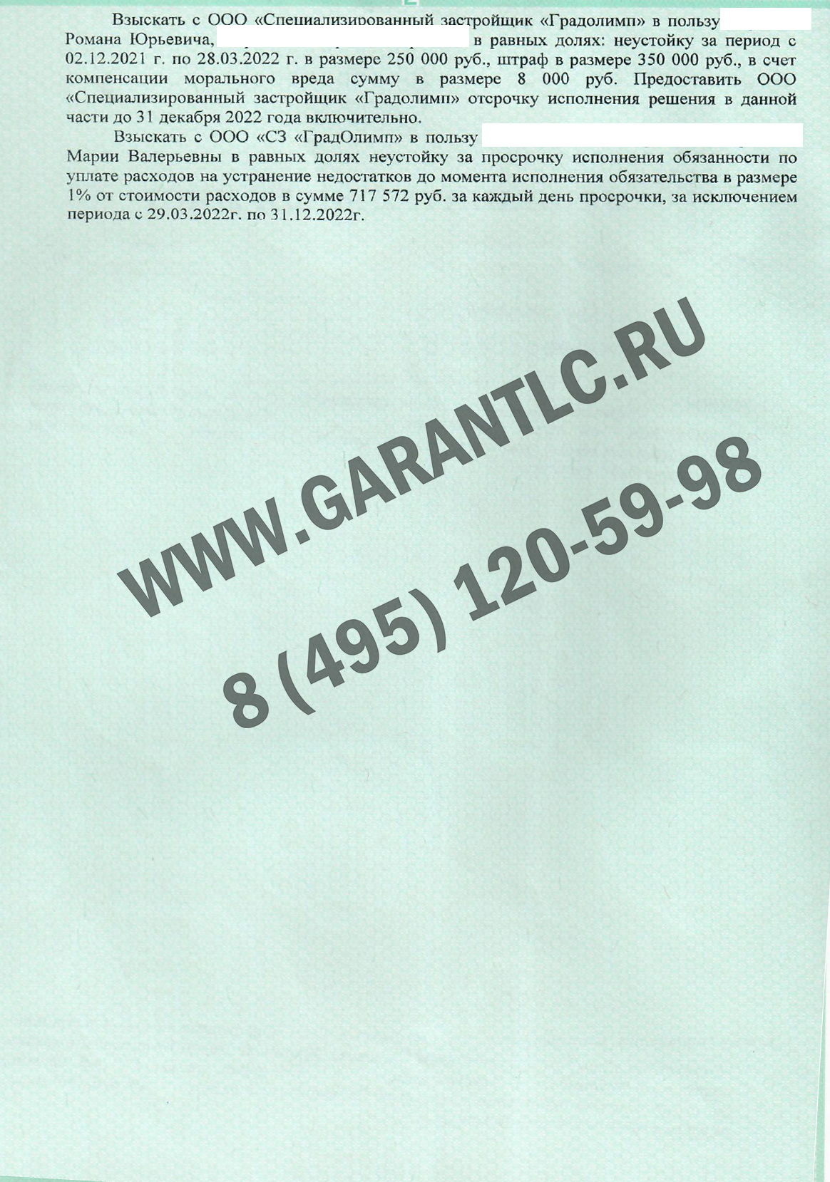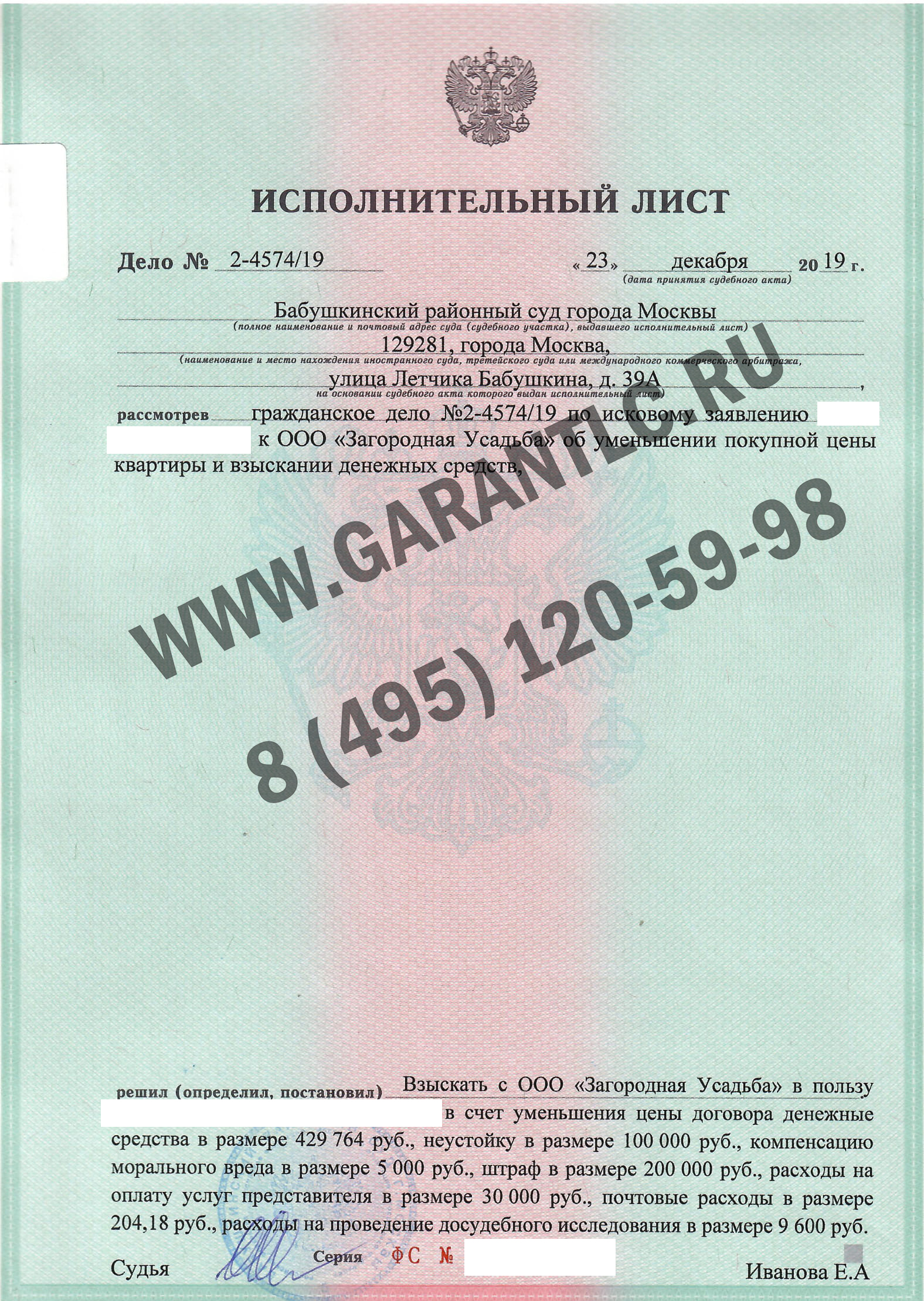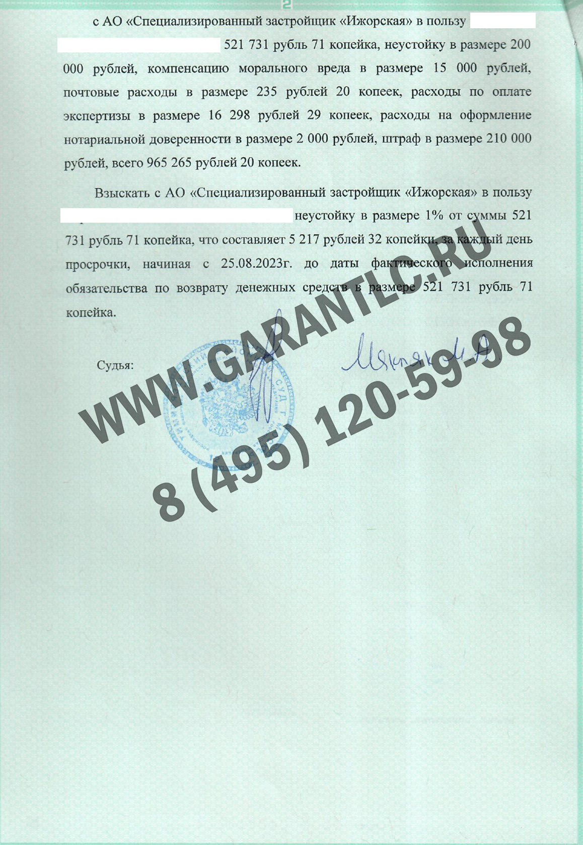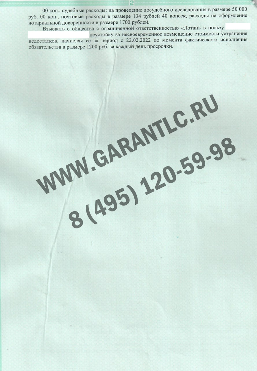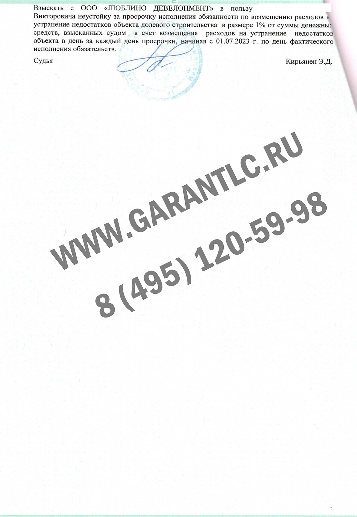 Судебная практика ЮК ГАРАНТ по взысканию компенсации за недостатки в отделке от застройщика (соразмерное уменьшение покупной цены)