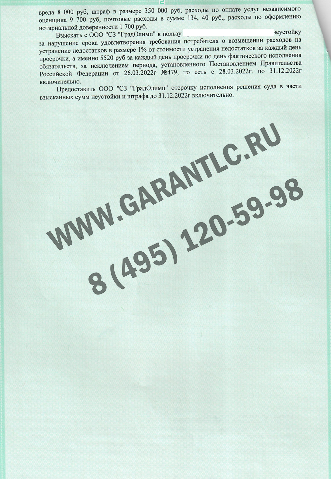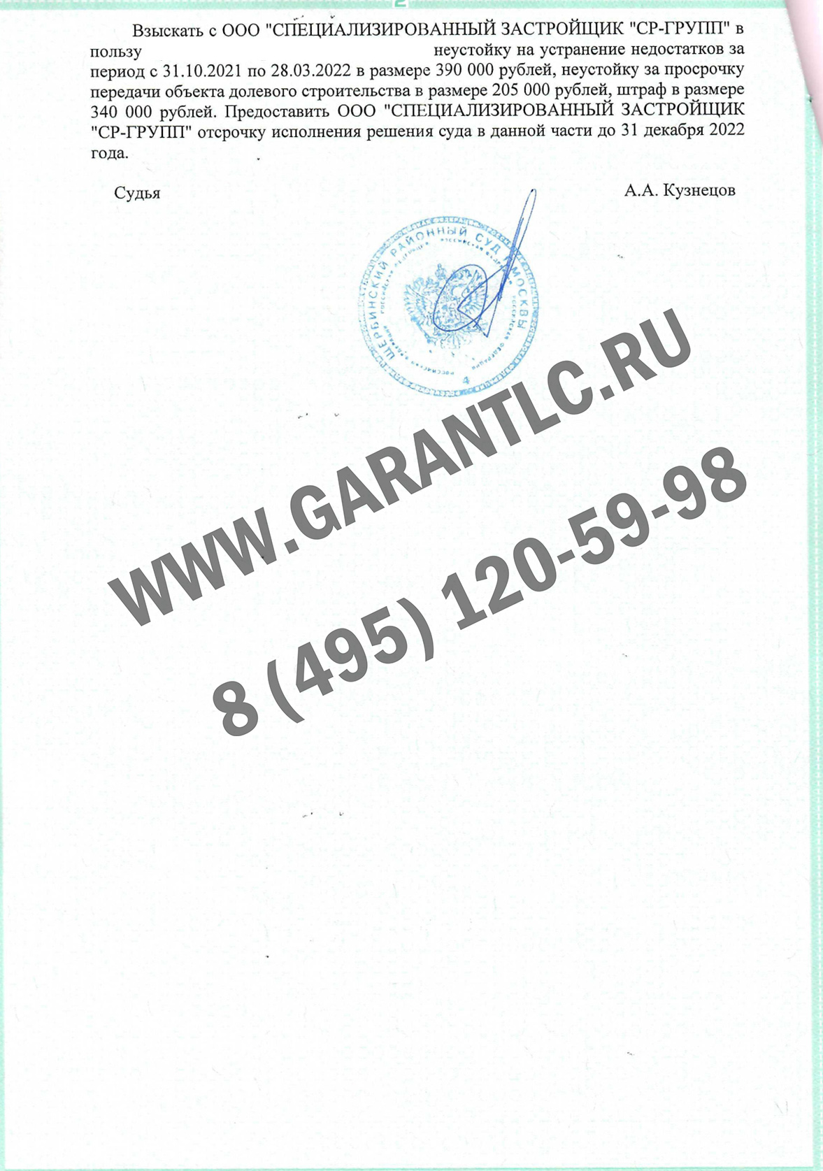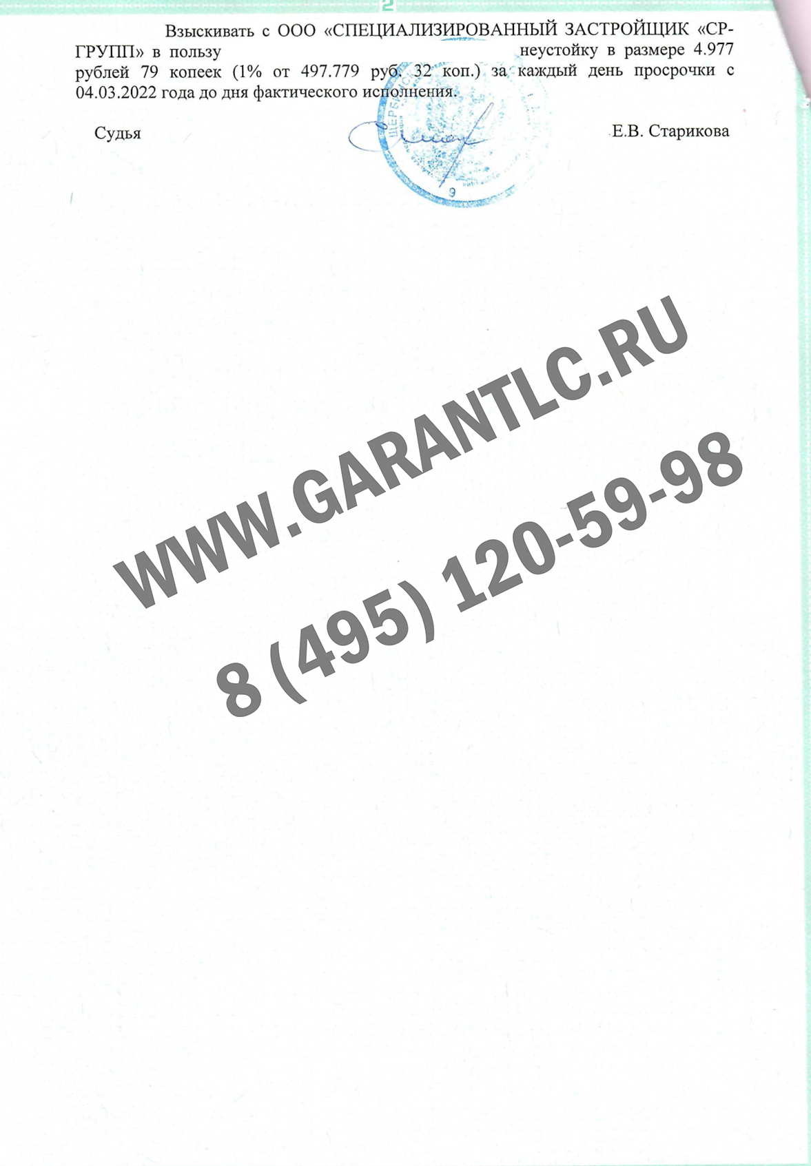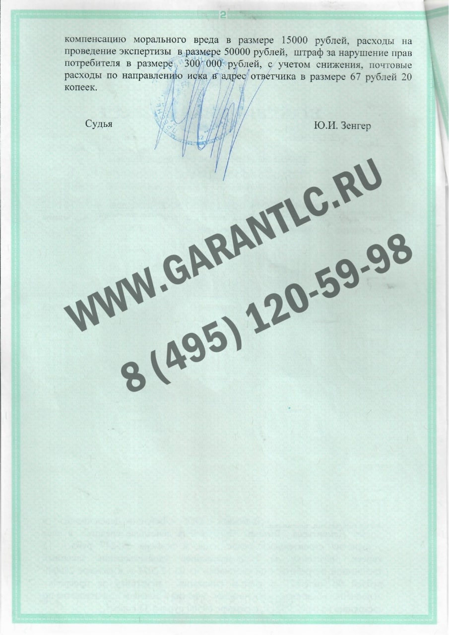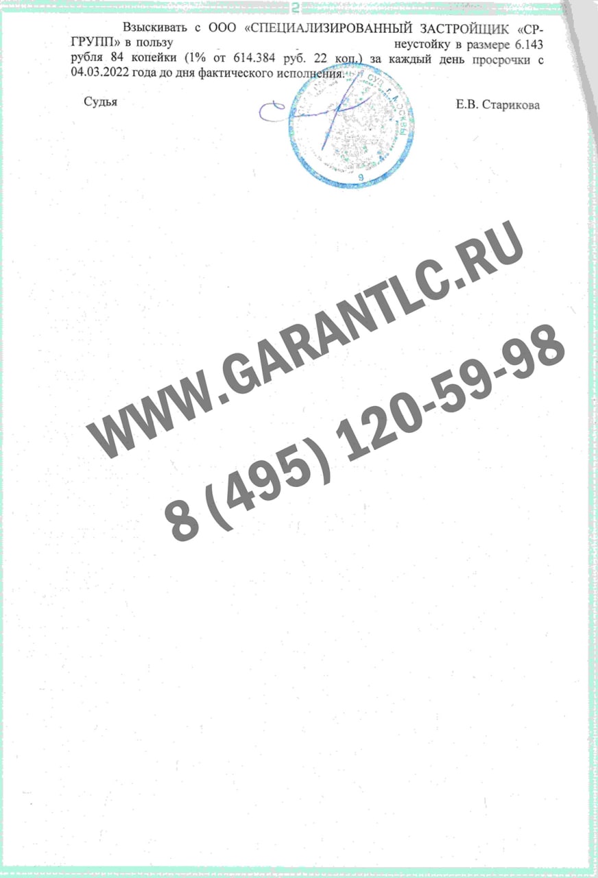 Судебная практика ЮК ГАРАНТ по взысканию компенсации за недостатки в отделке от застройщика (соразмерное уменьшение покупной цены)