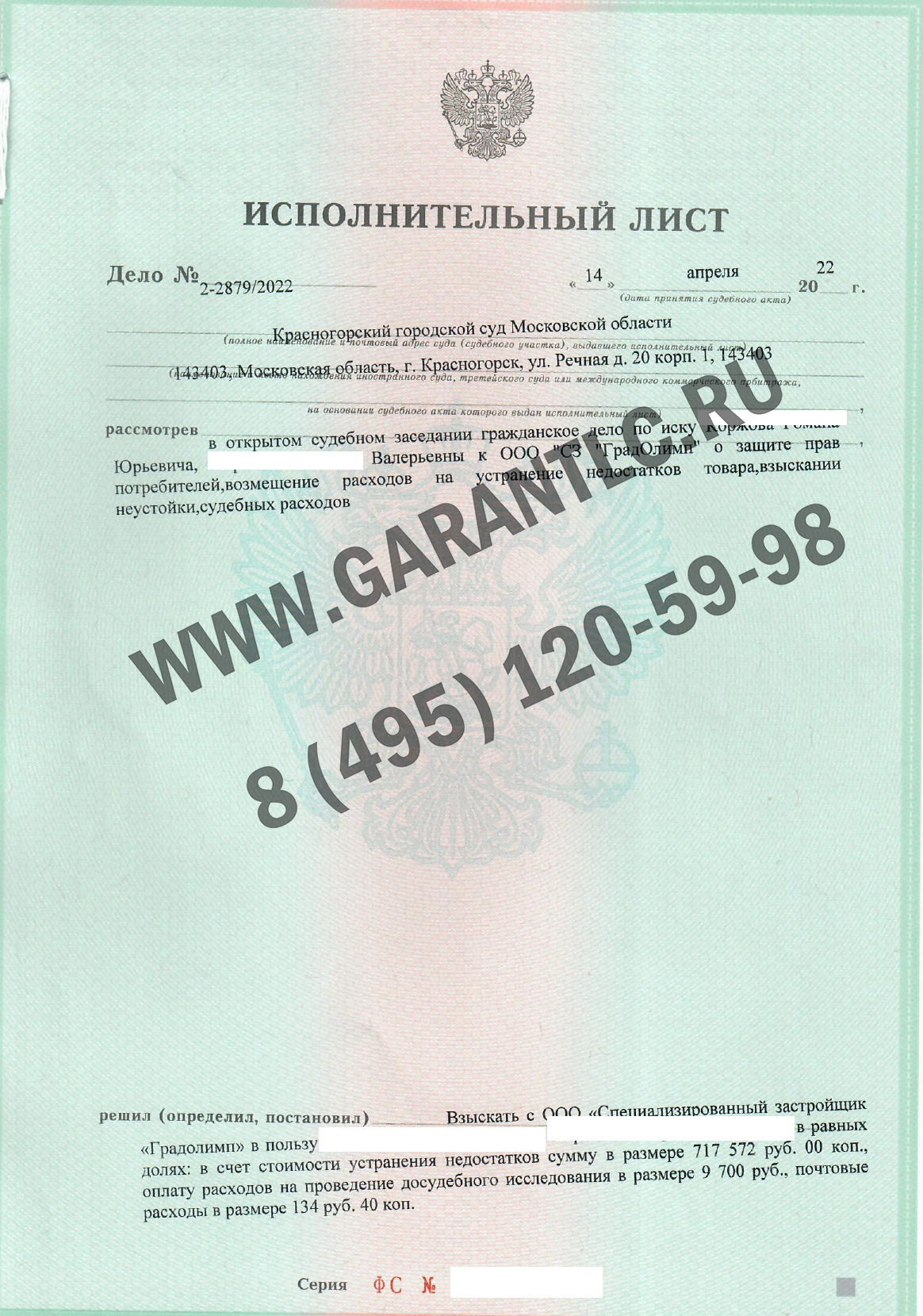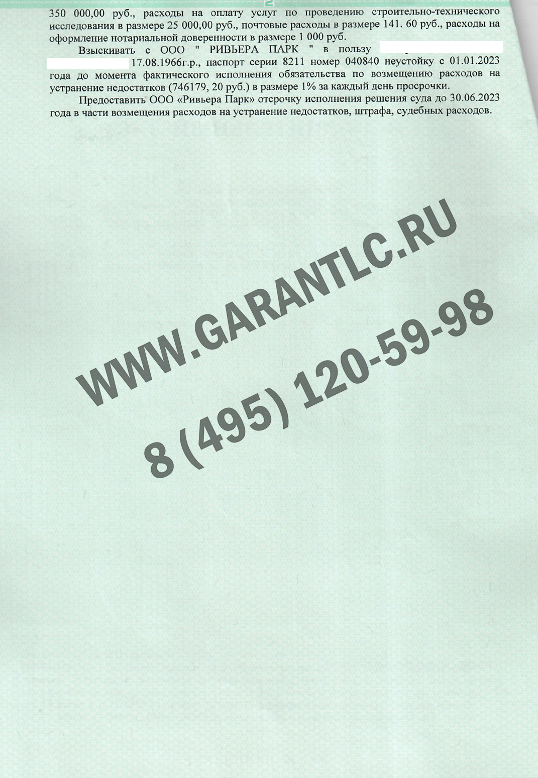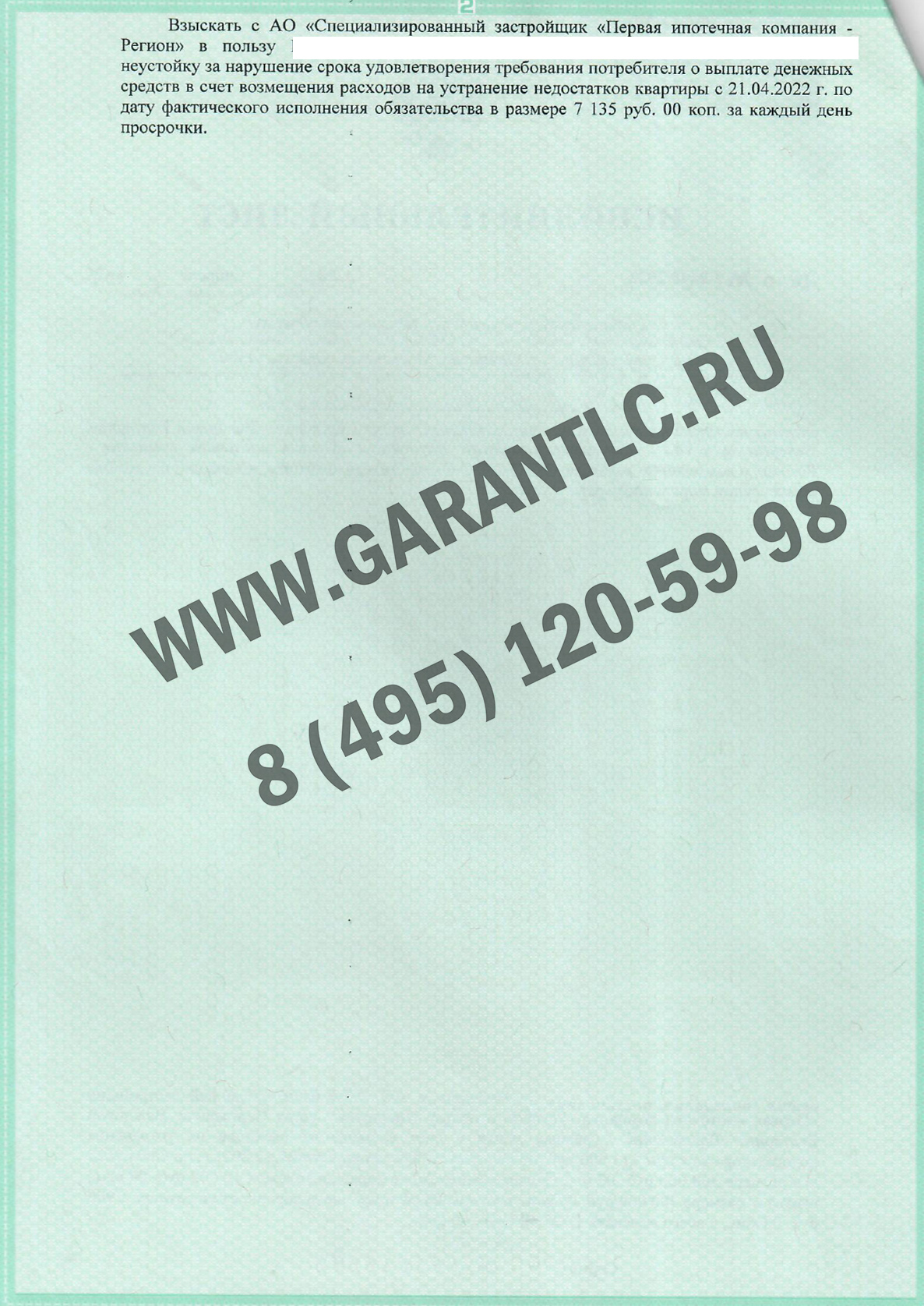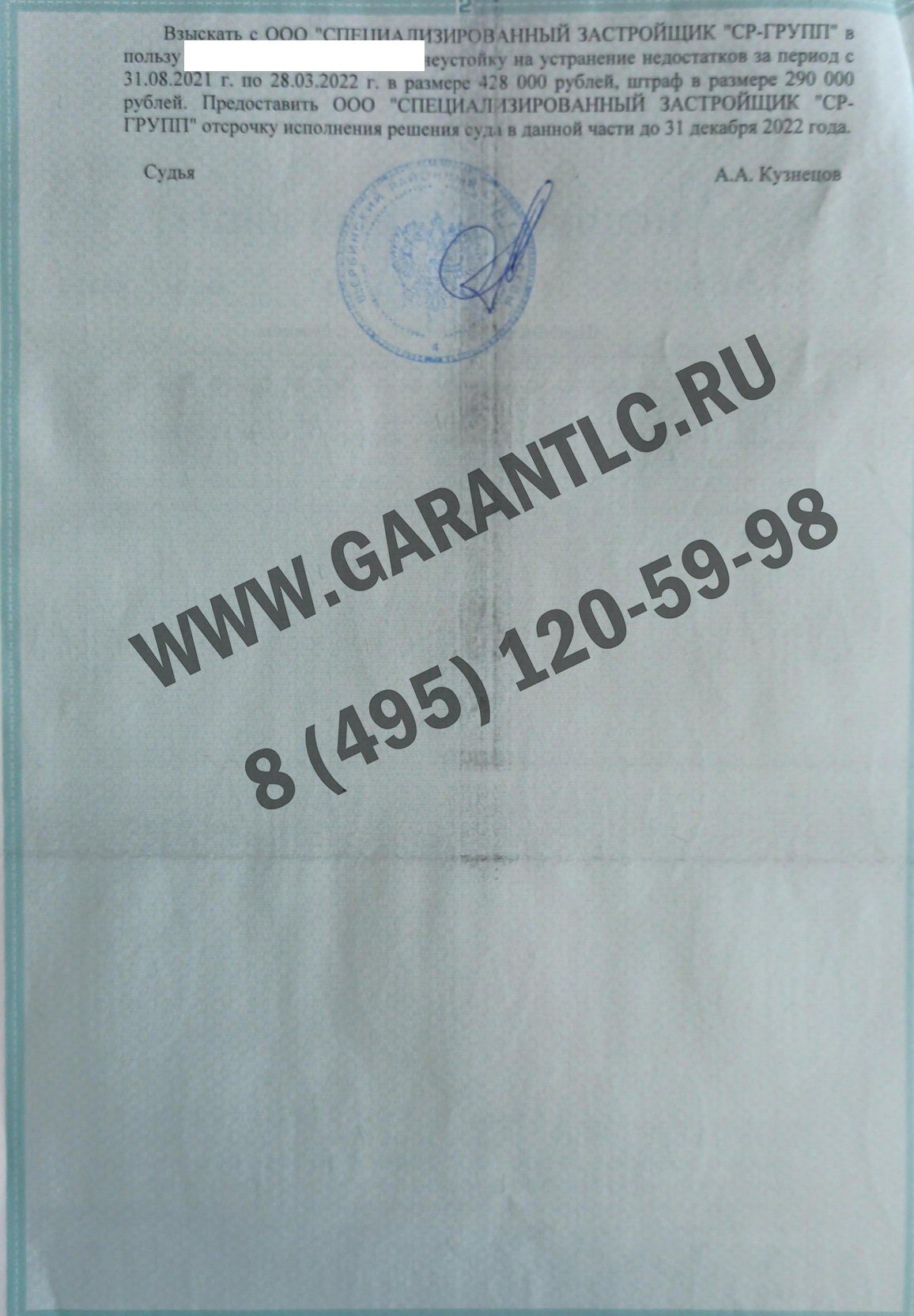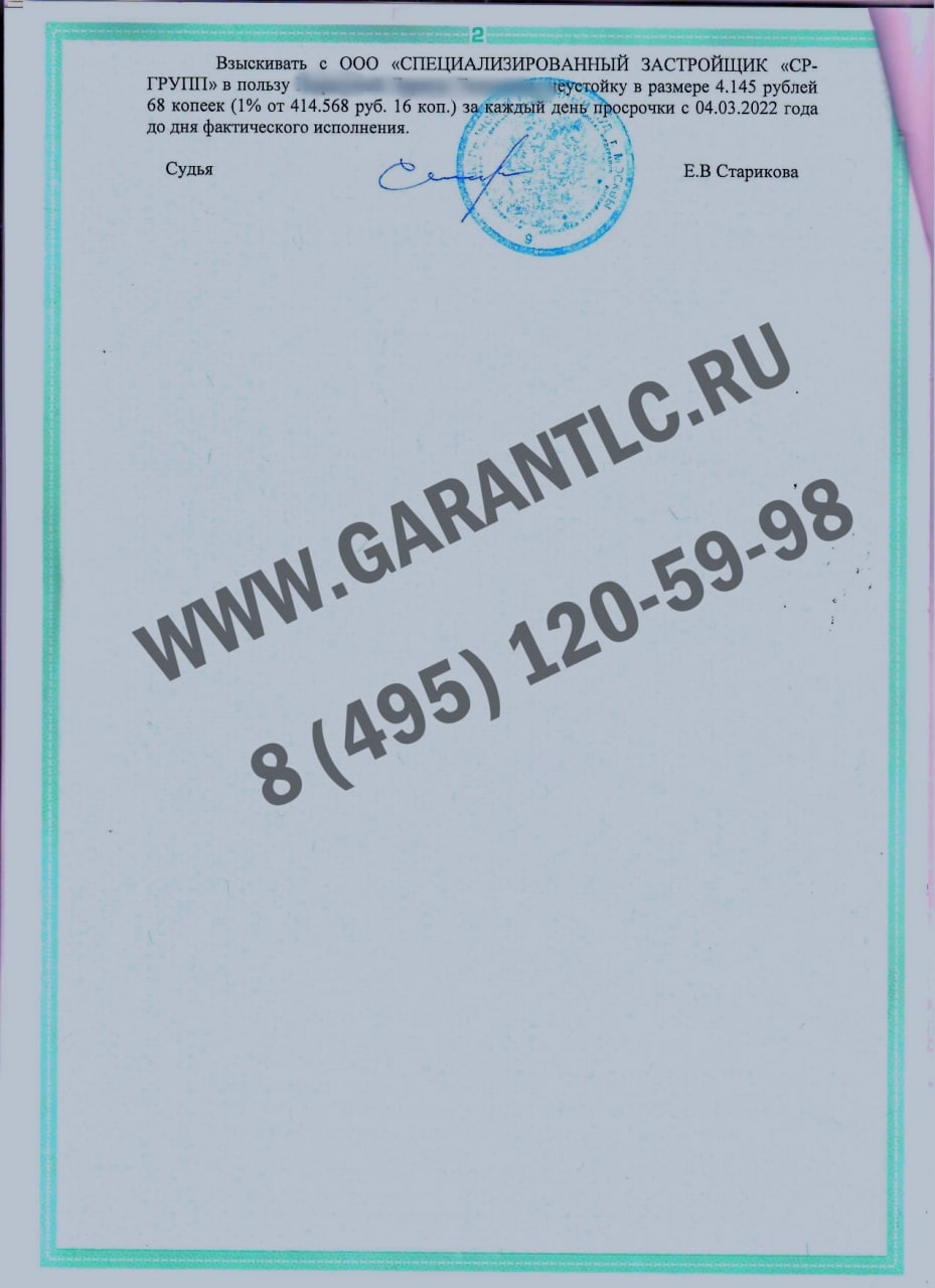 Судебная практика ЮК ГАРАНТ по взысканию компенсации за недостатки в отделке от застройщика (соразмерное уменьшение покупной цены)
