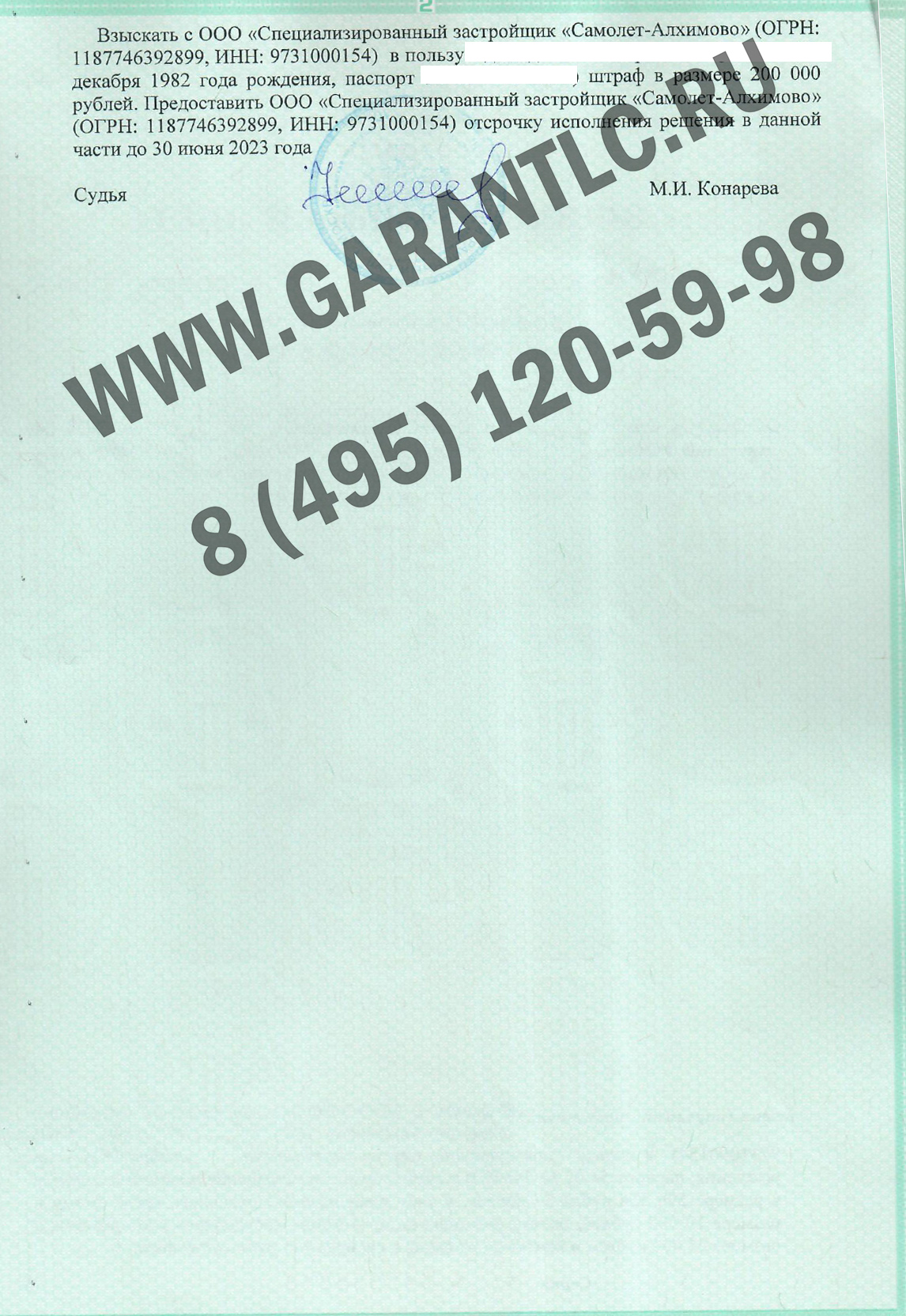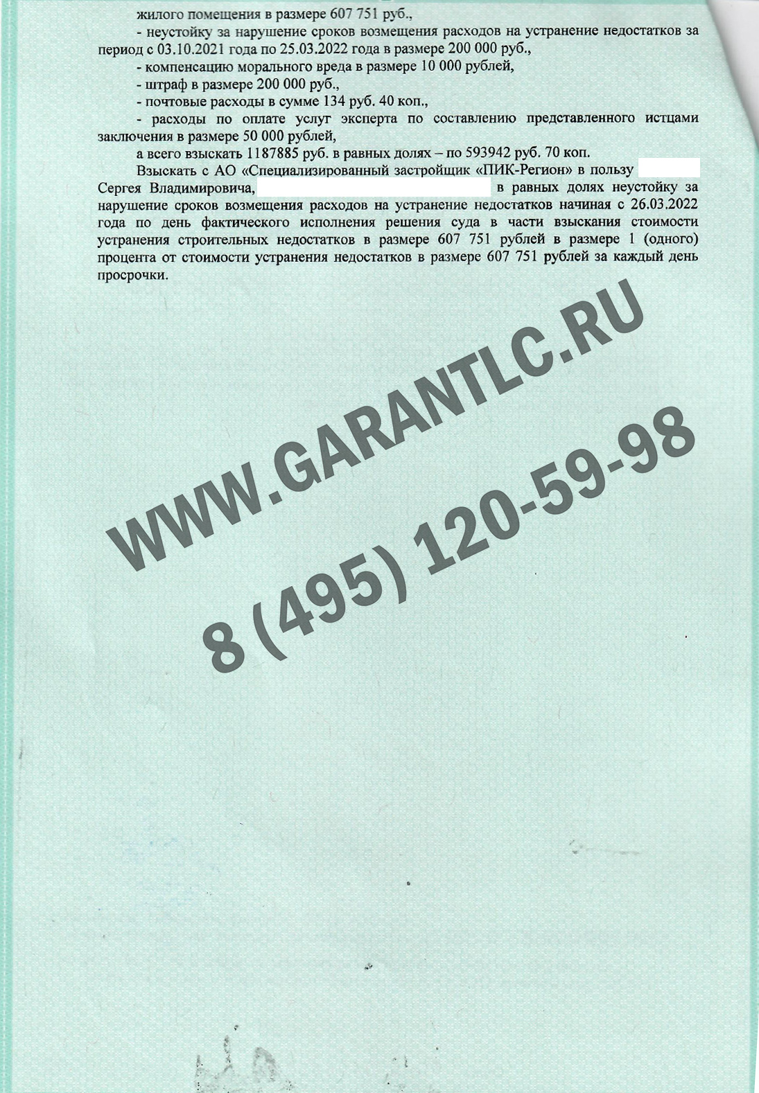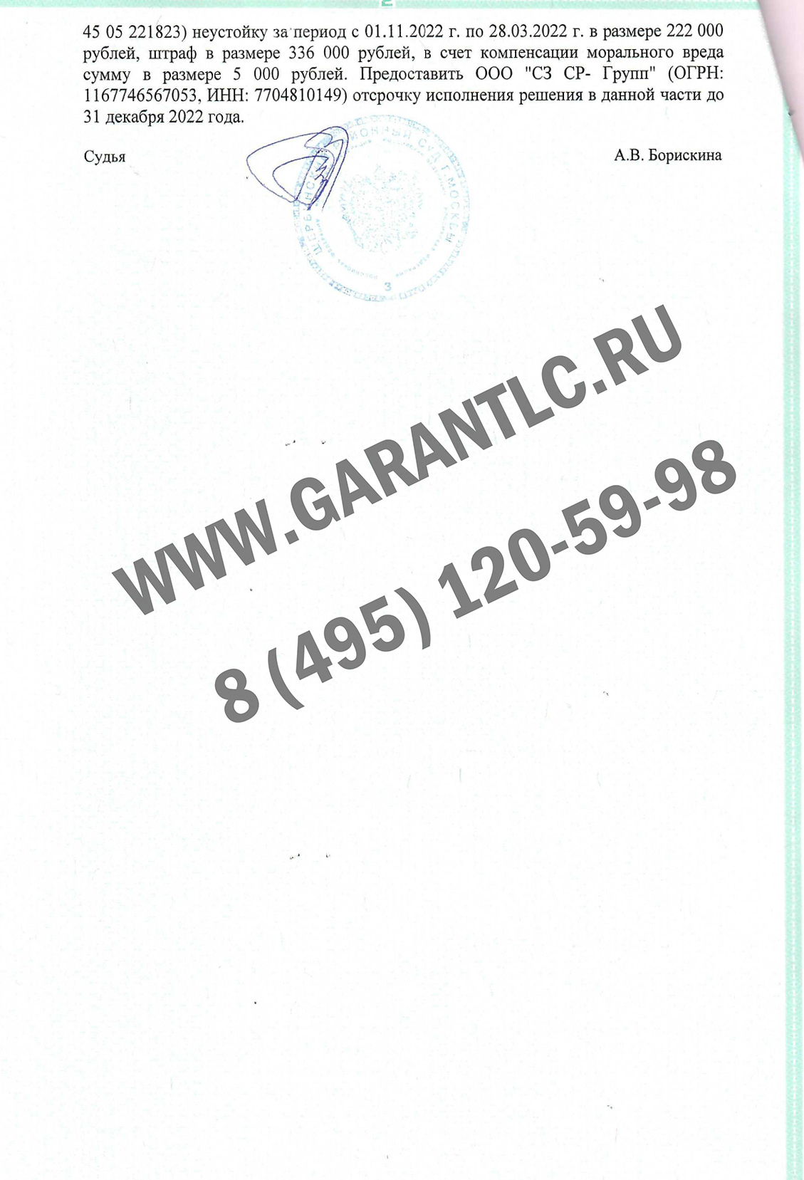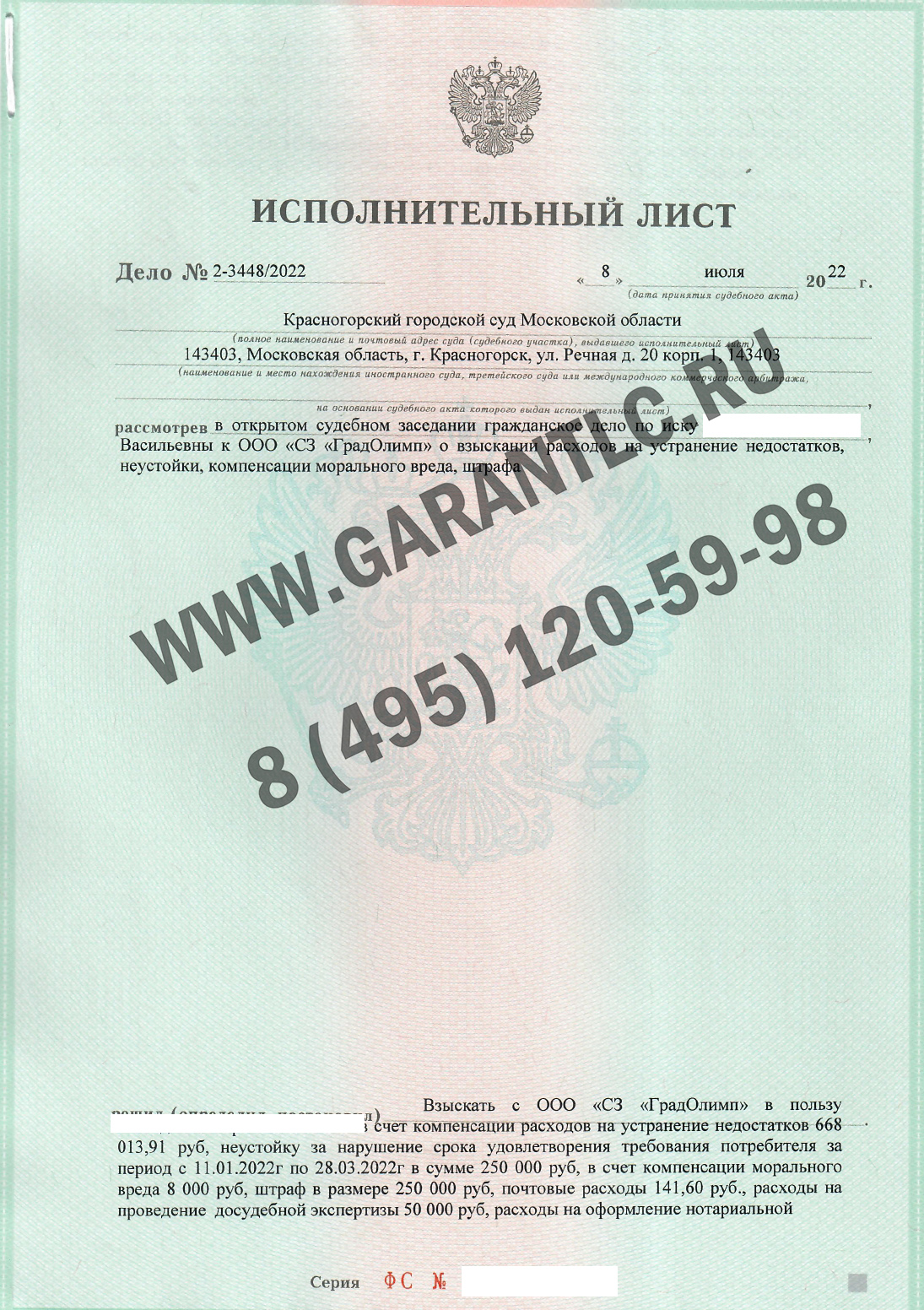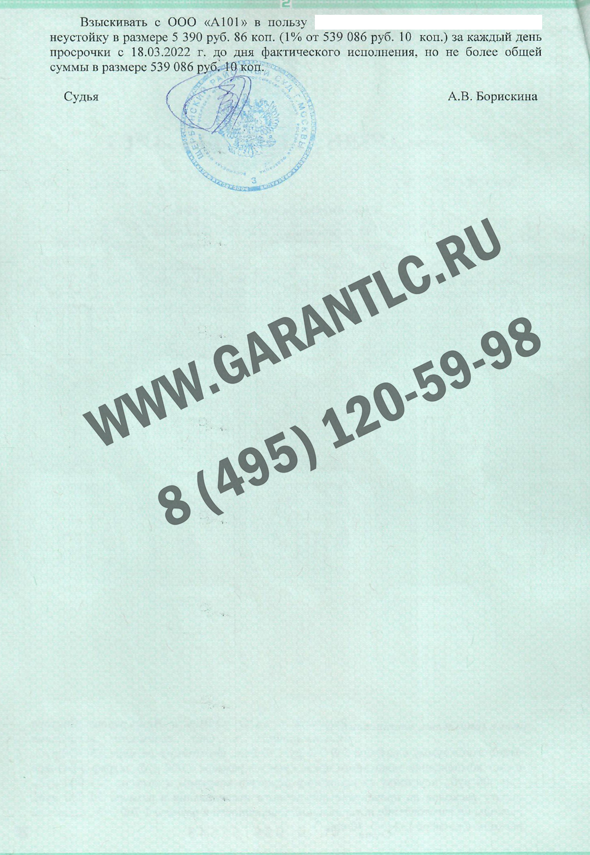 Судебная практика ЮК ГАРАНТ по взысканию компенсации за недостатки в отделке от застройщика (соразмерное уменьшение покупной цены)