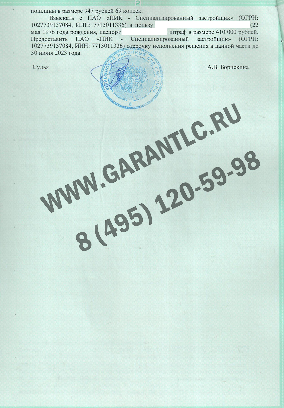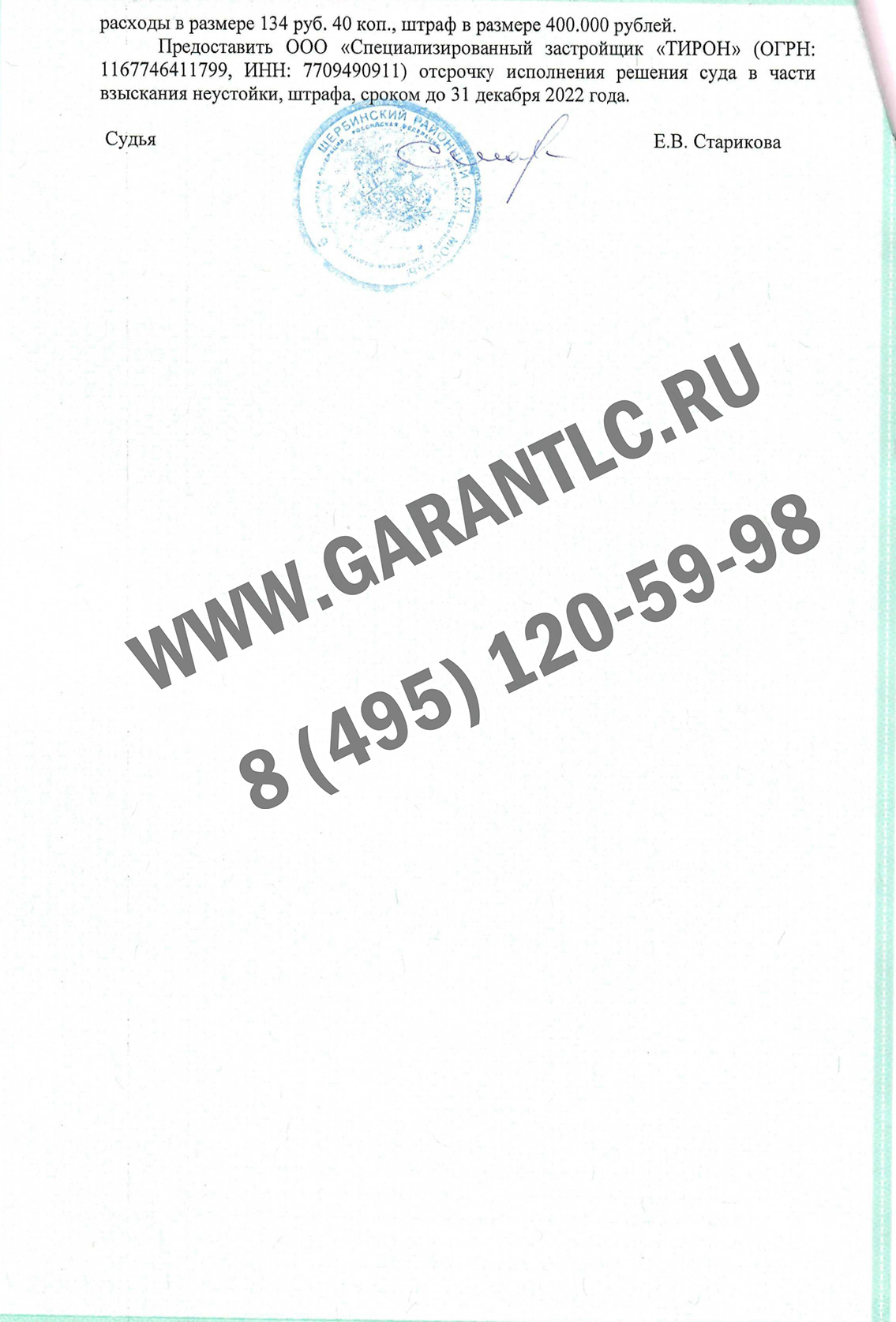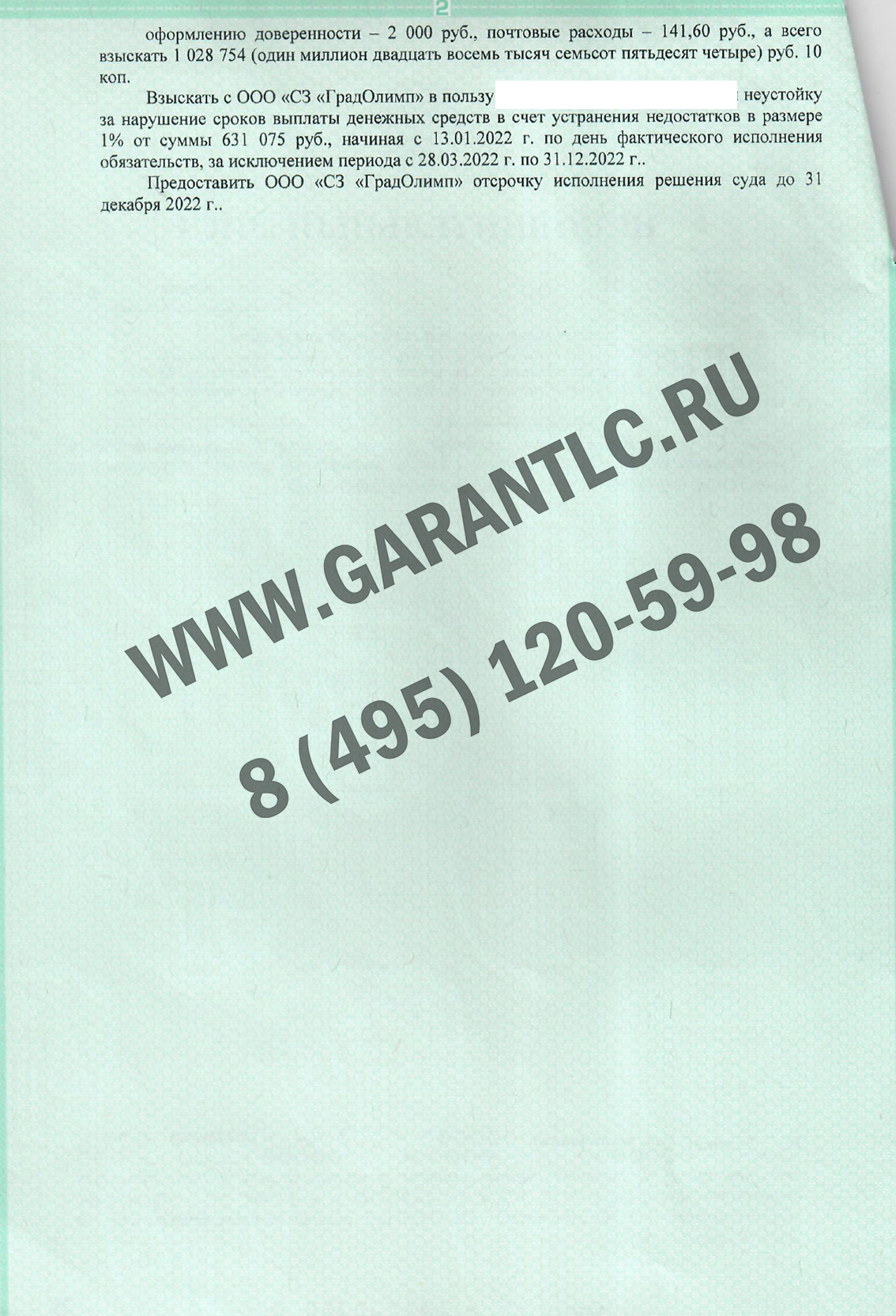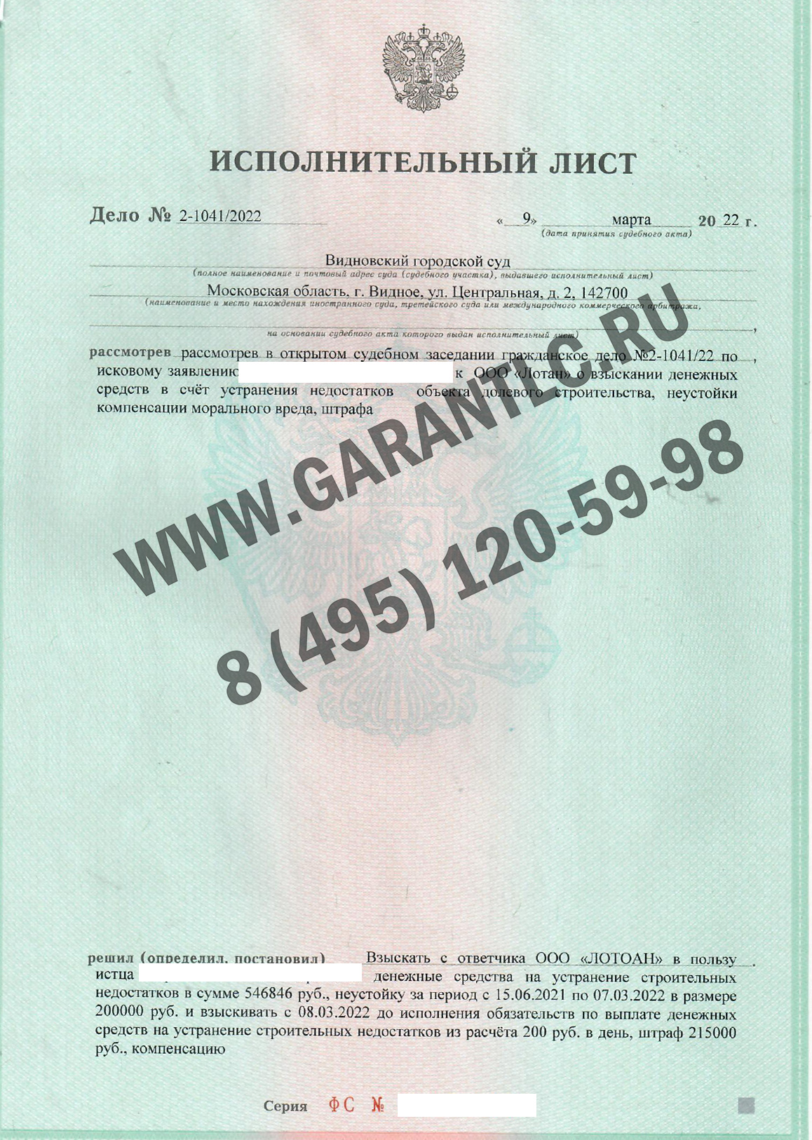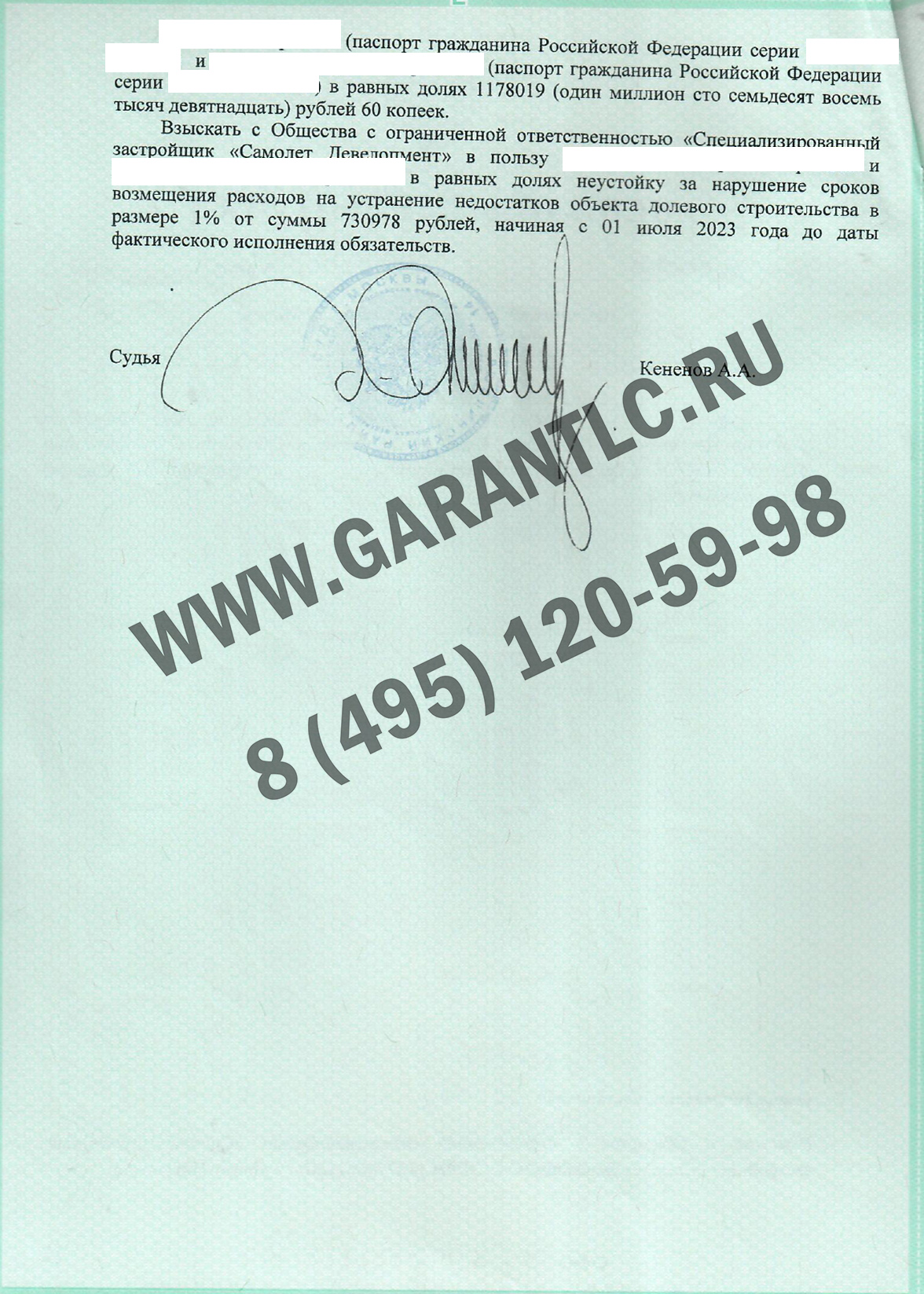 Судебная практика ЮК ГАРАНТ по взысканию компенсации за недостатки в отделке от застройщика (соразмерное уменьшение покупной цены)