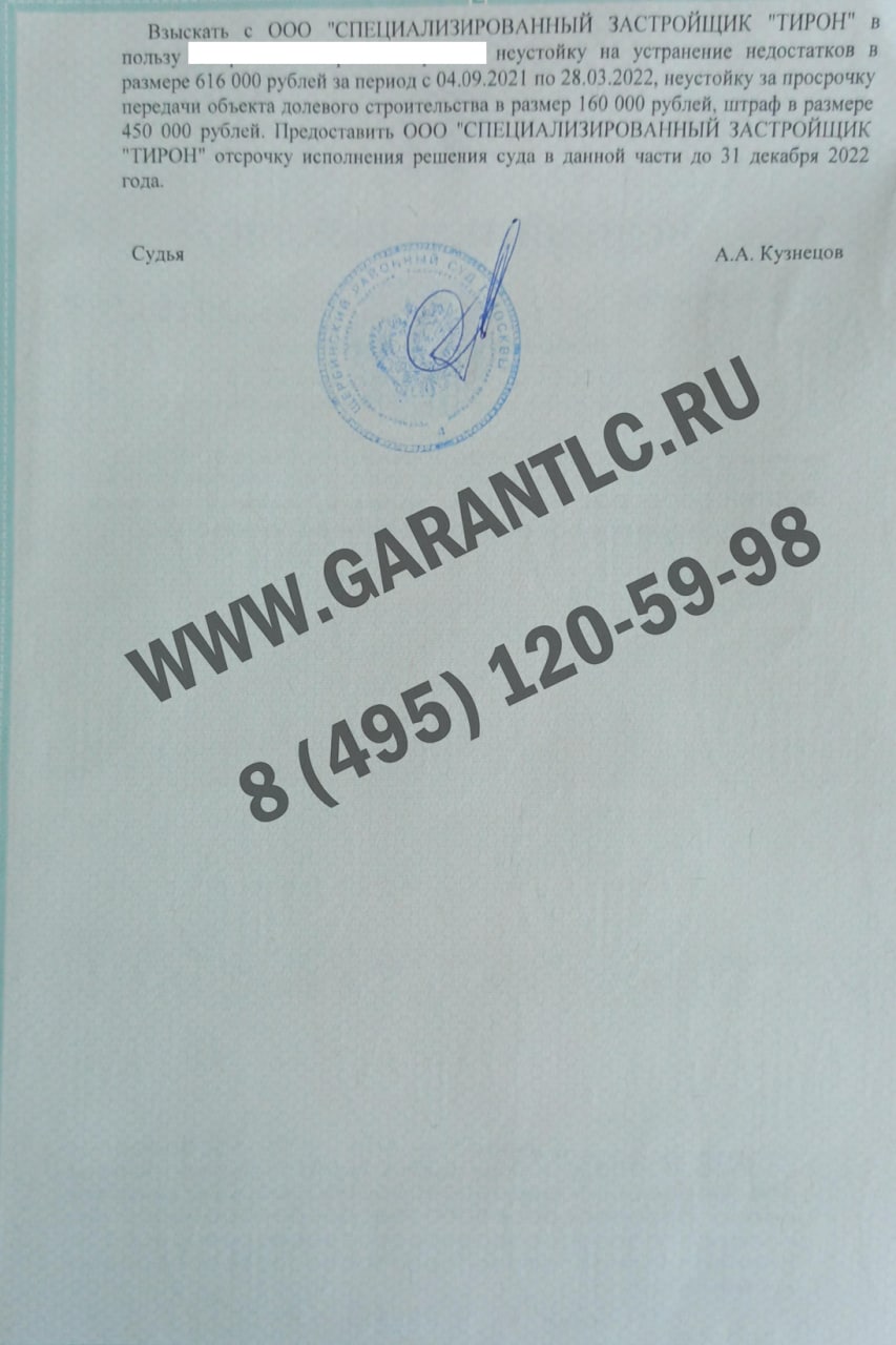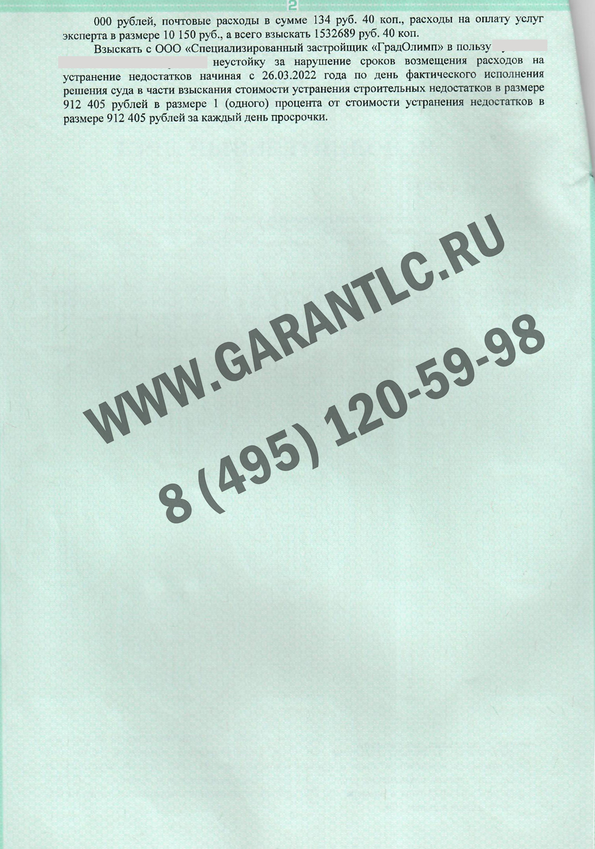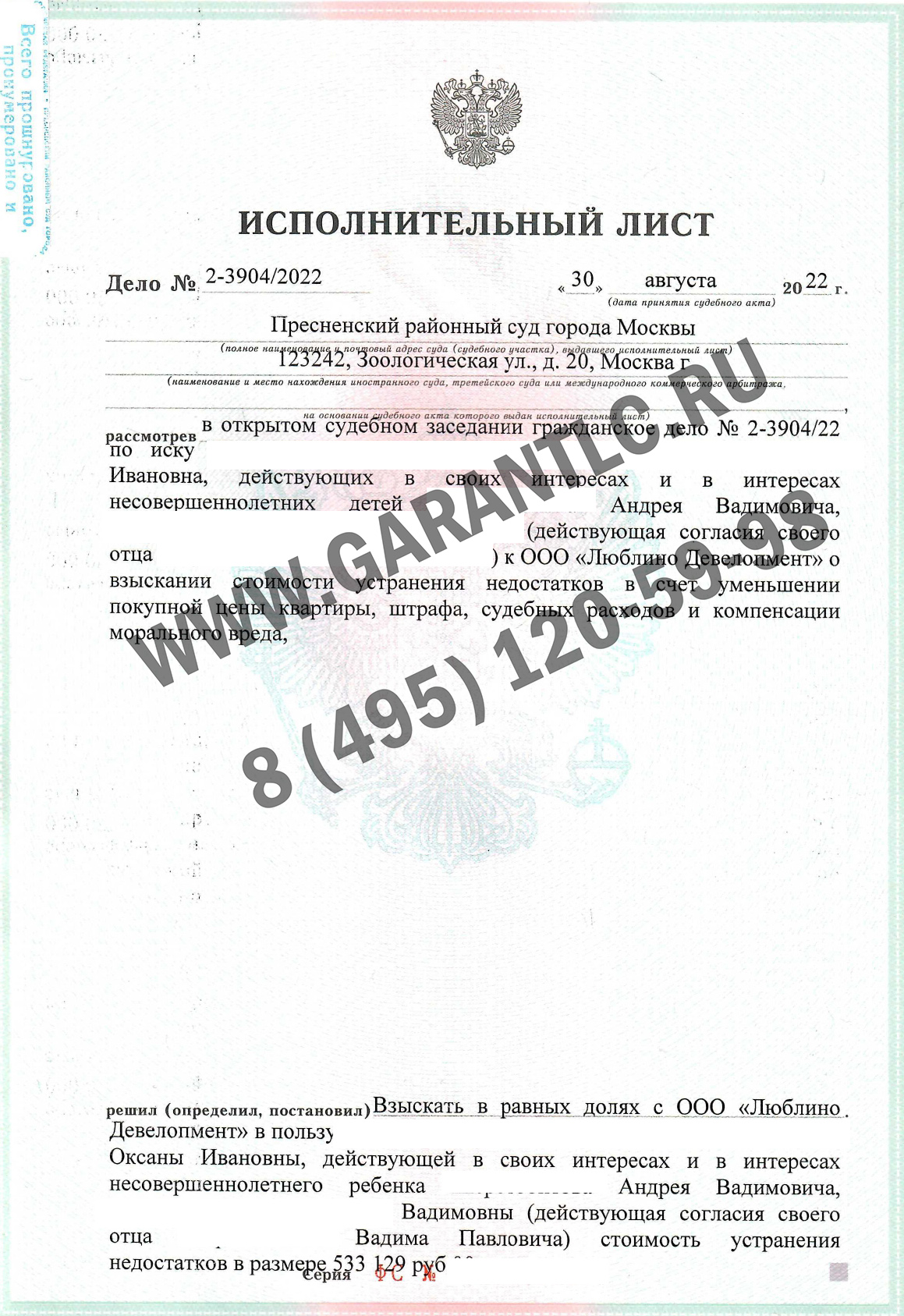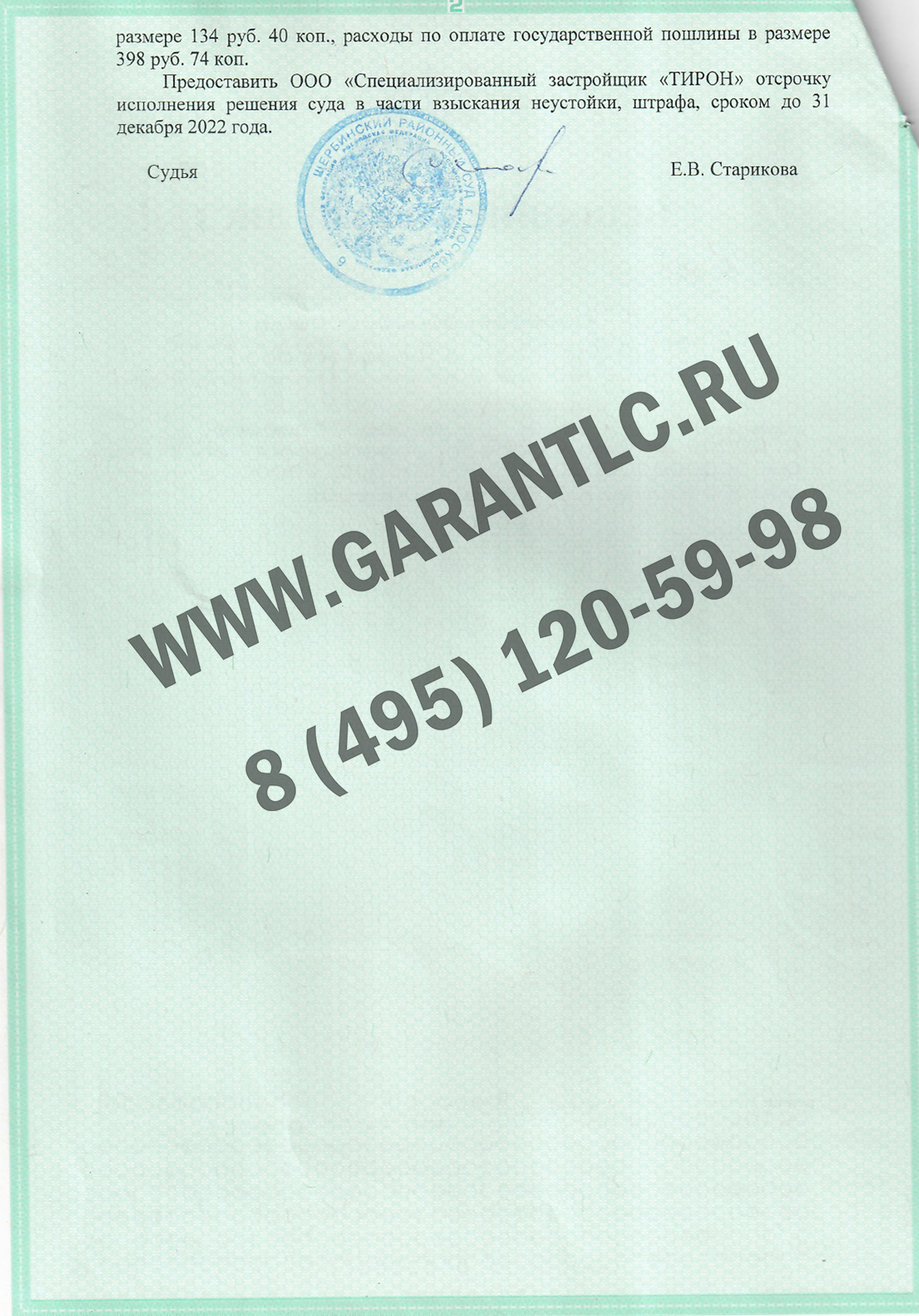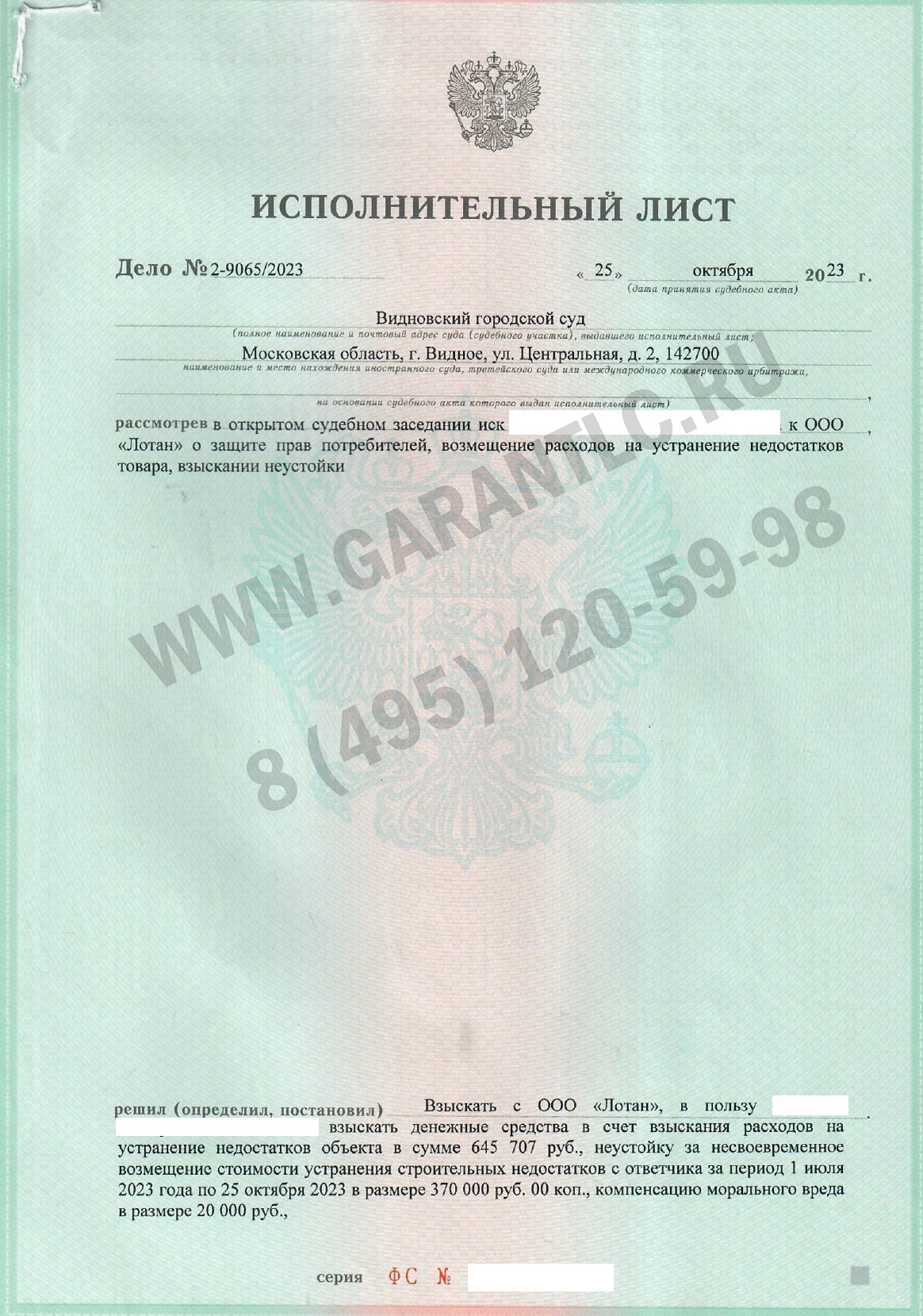 Судебная практика ЮК ГАРАНТ по взысканию компенсации за недостатки в отделке от застройщика (соразмерное уменьшение покупной цены)