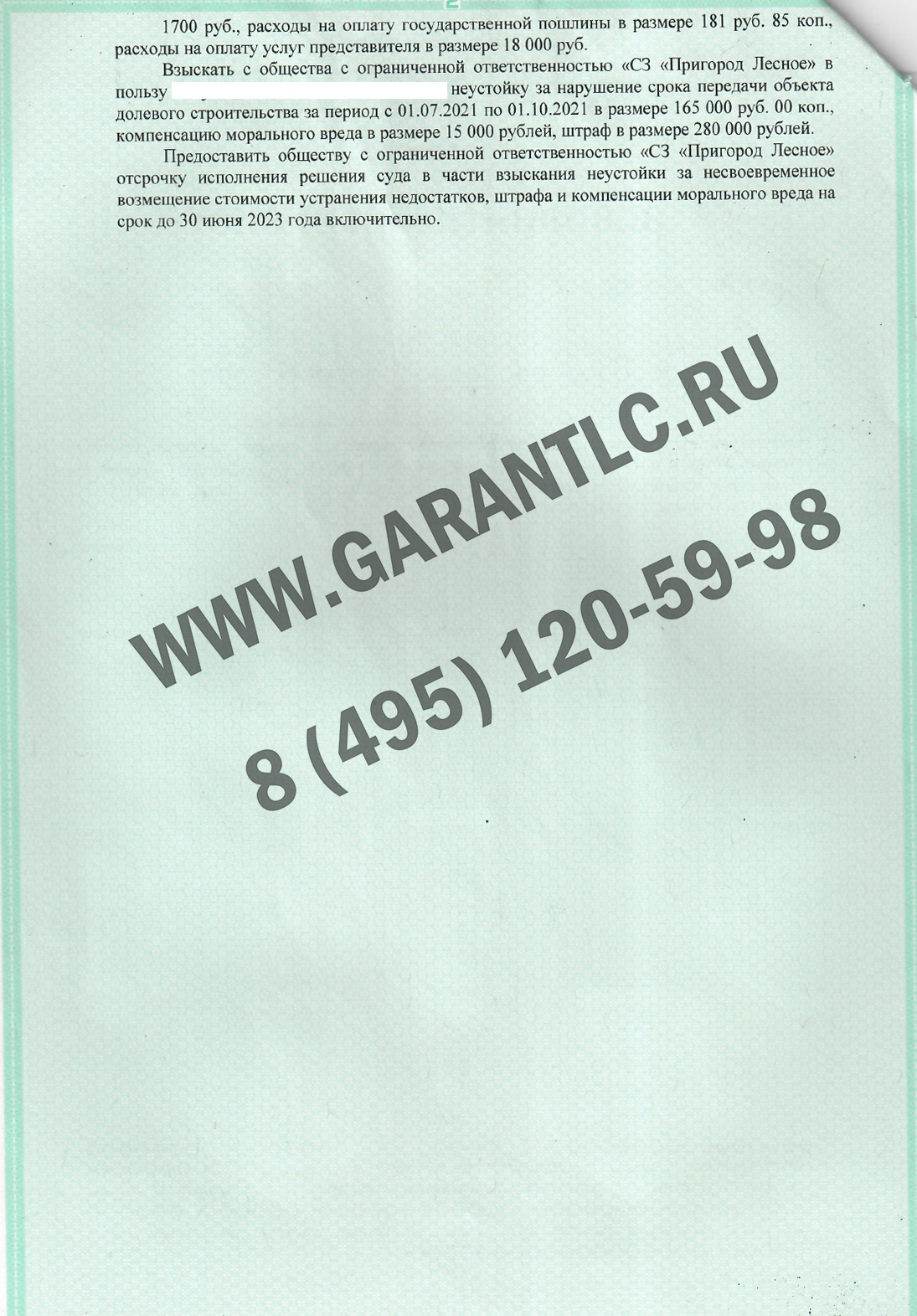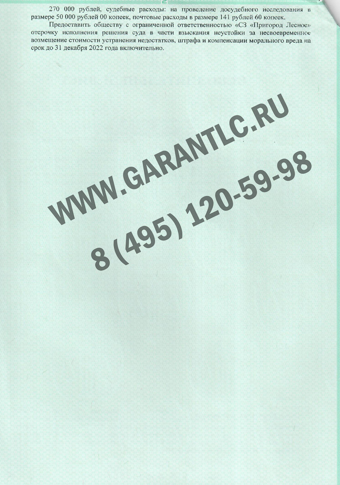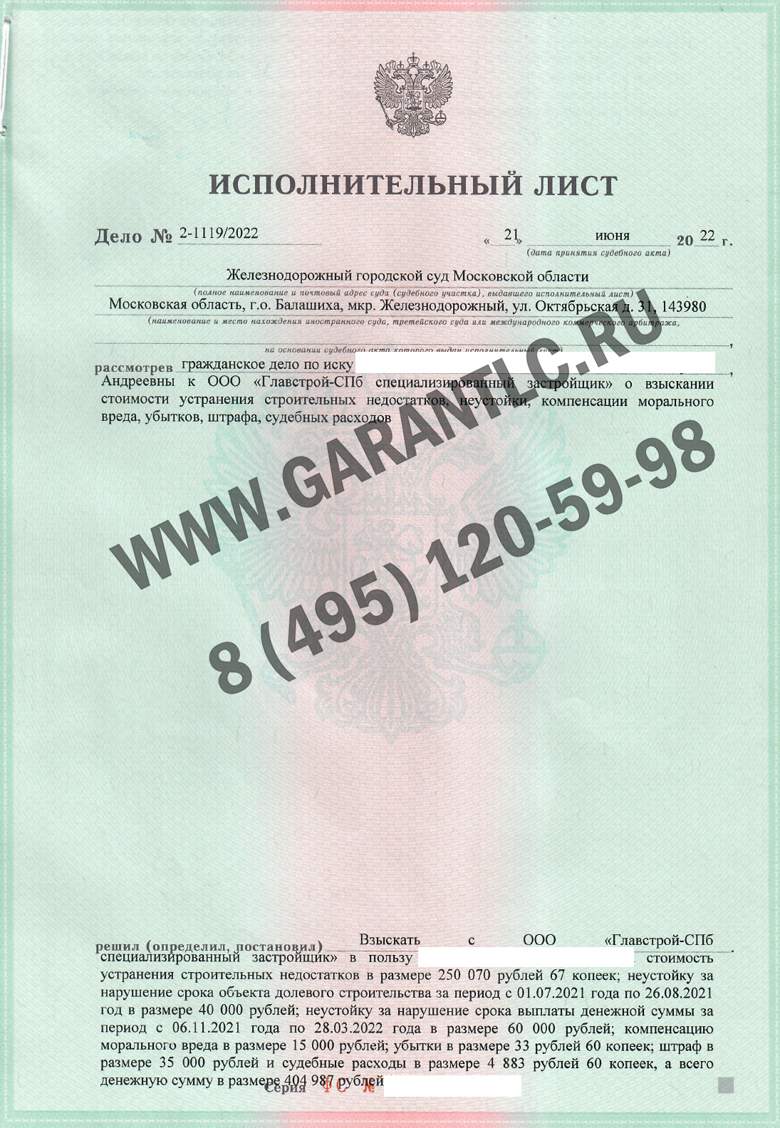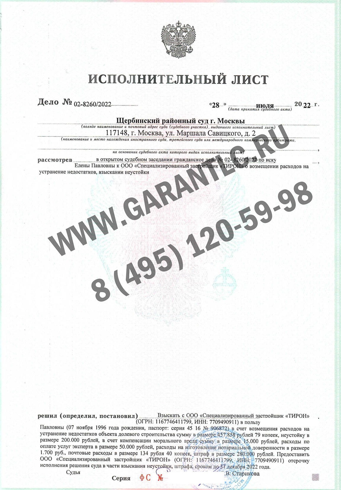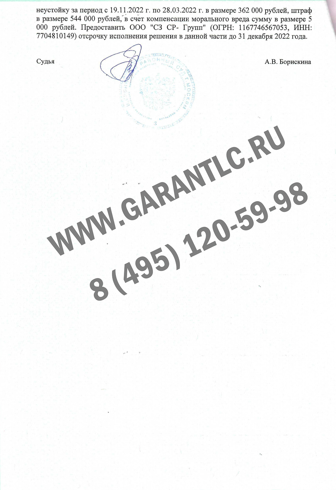 Судебная практика ЮК ГАРАНТ по взысканию компенсации за недостатки в отделке от застройщика (соразмерное уменьшение покупной цены)
