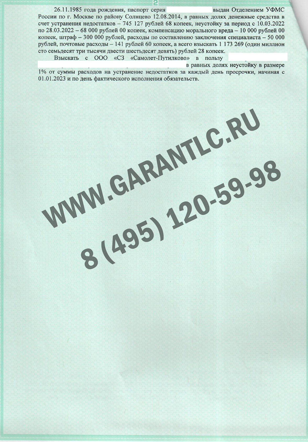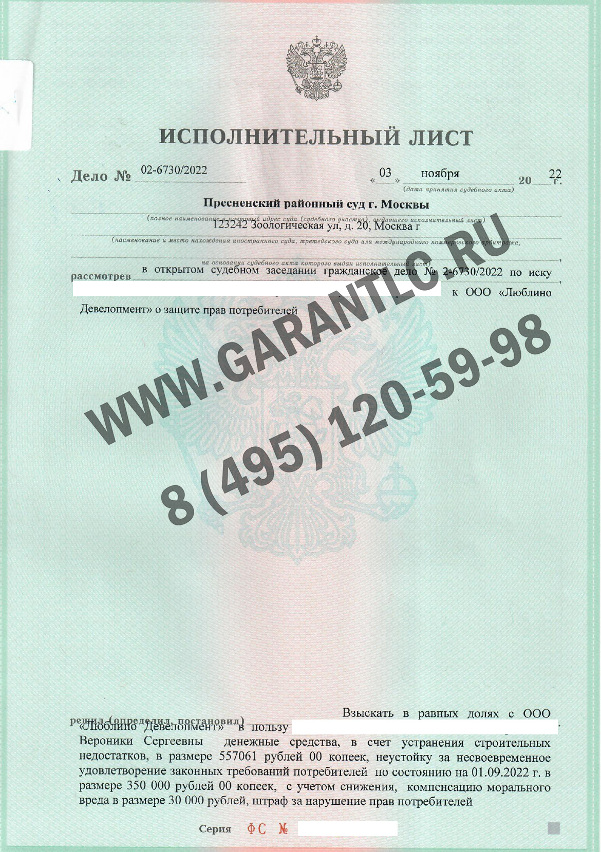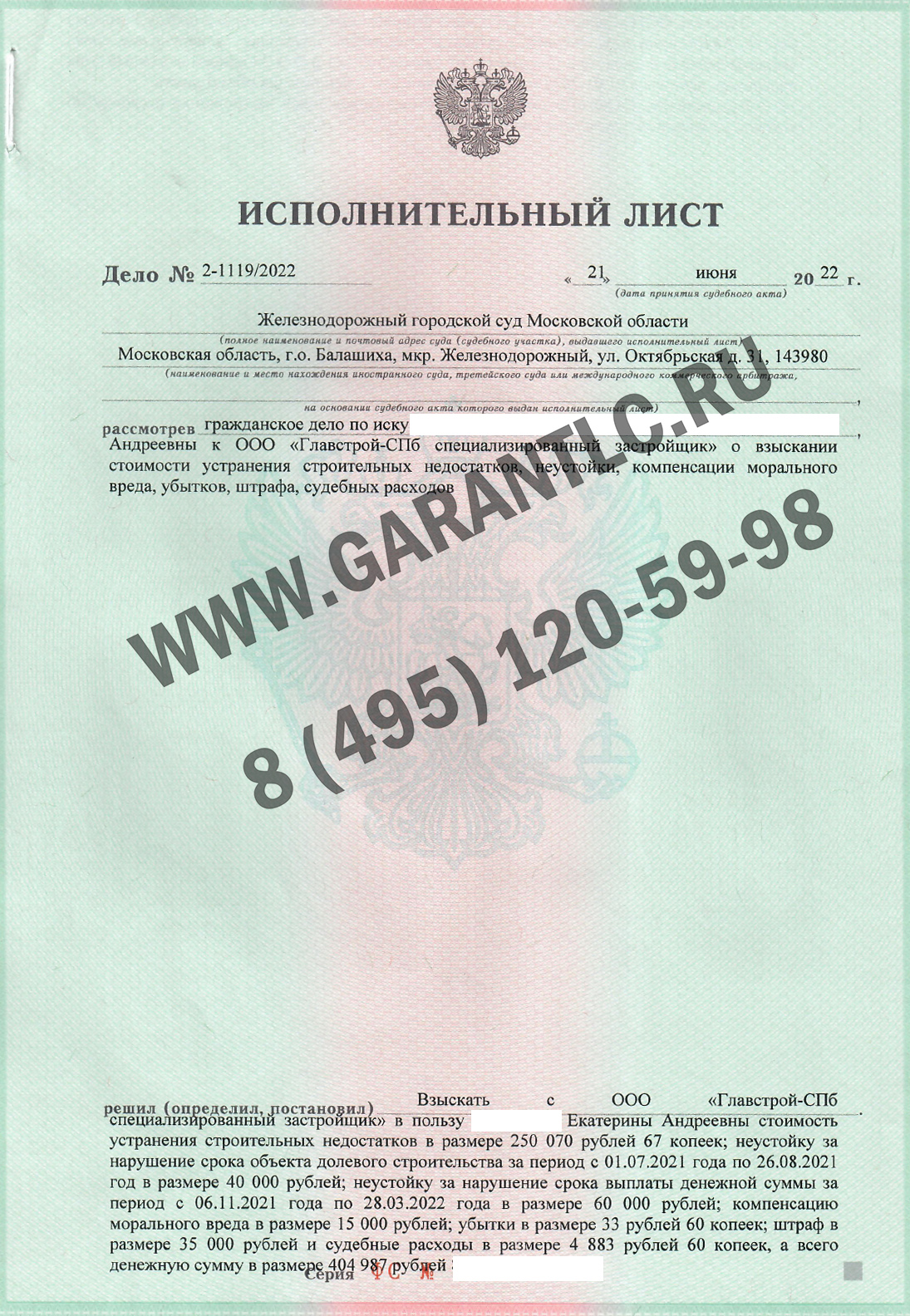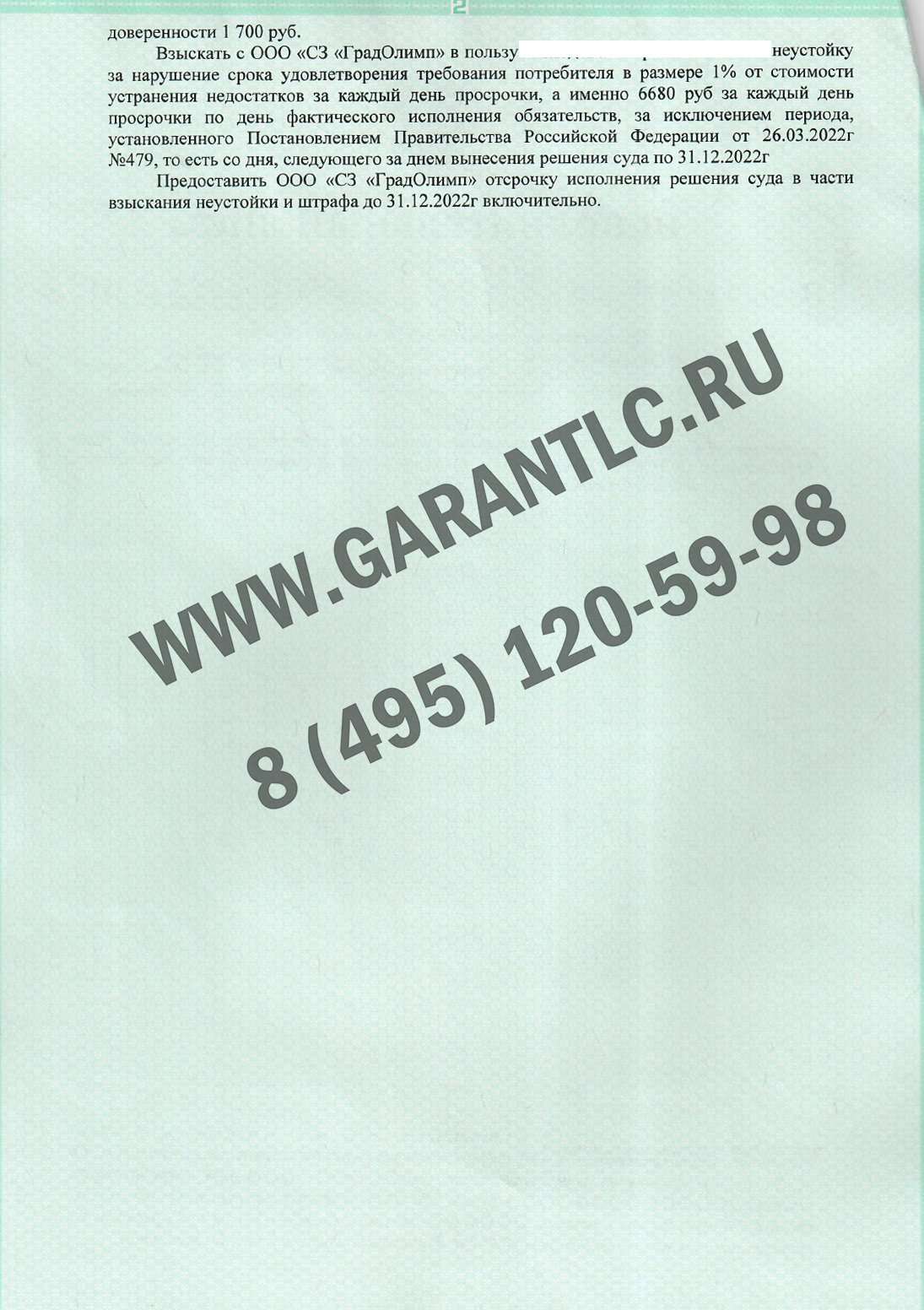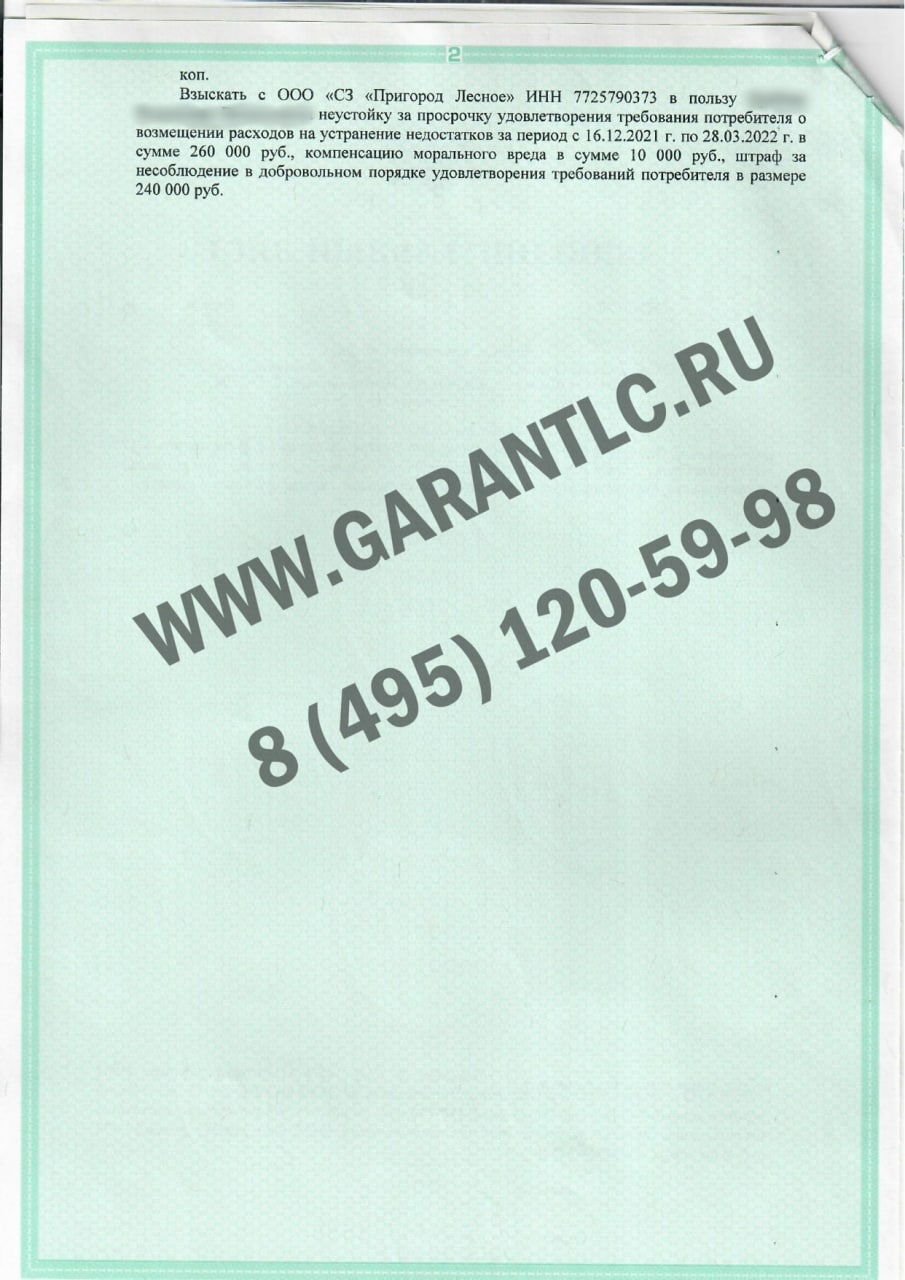 Судебная практика ЮК ГАРАНТ по взысканию компенсации за недостатки в отделке от застройщика (соразмерное уменьшение покупной цены)