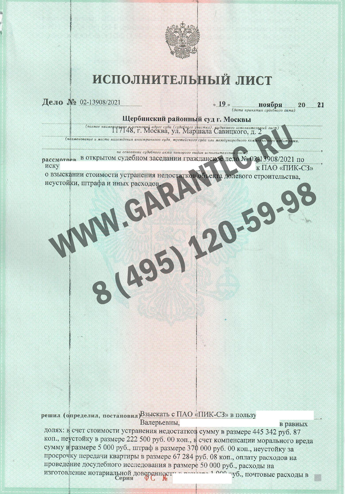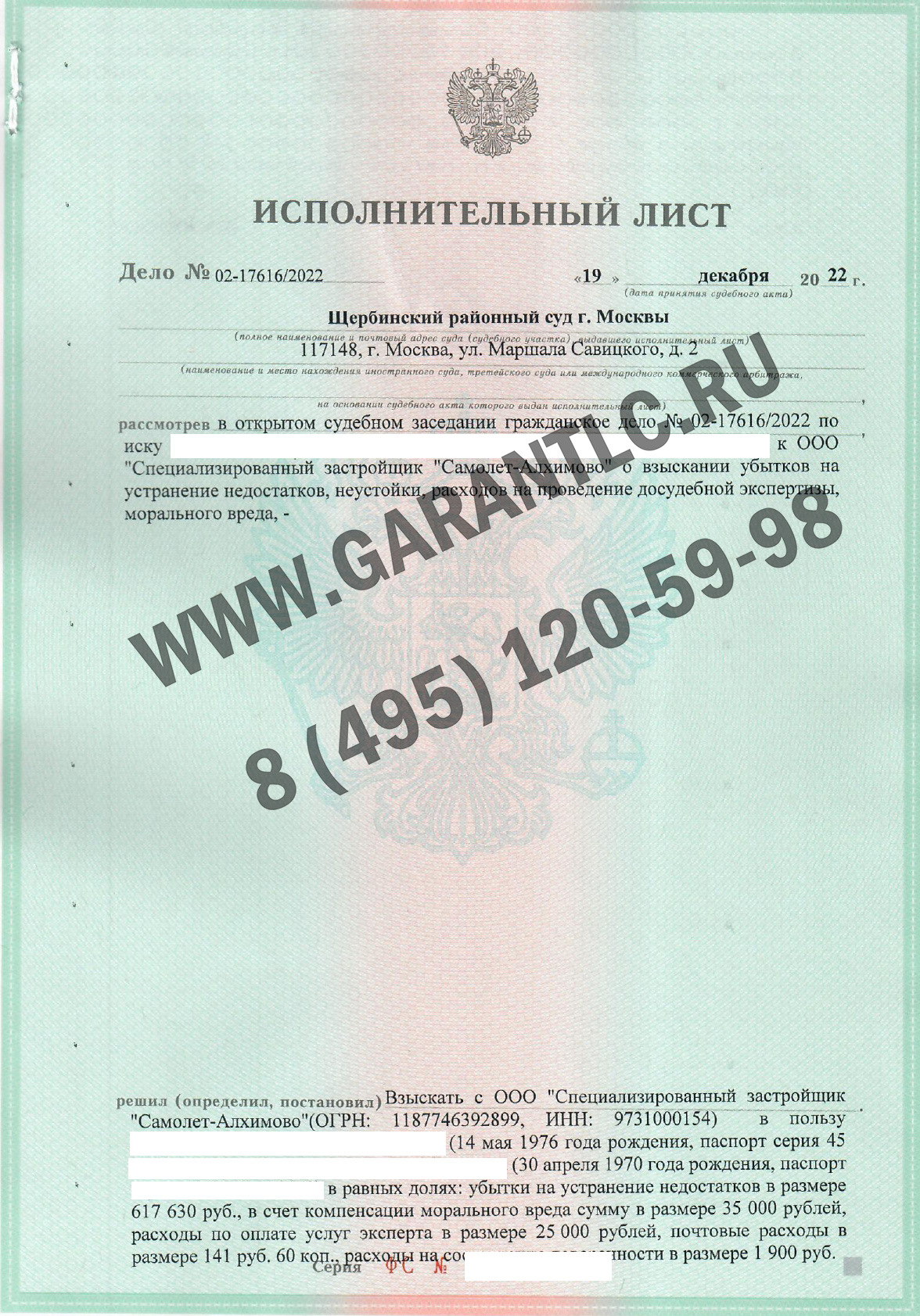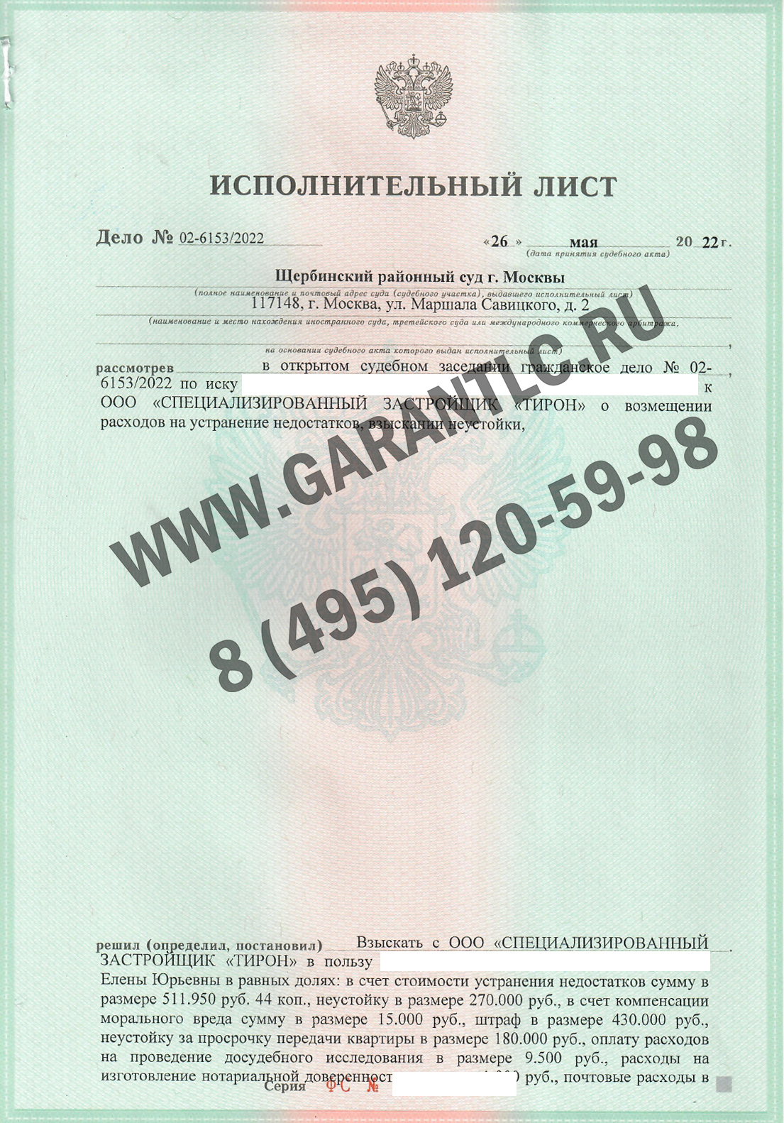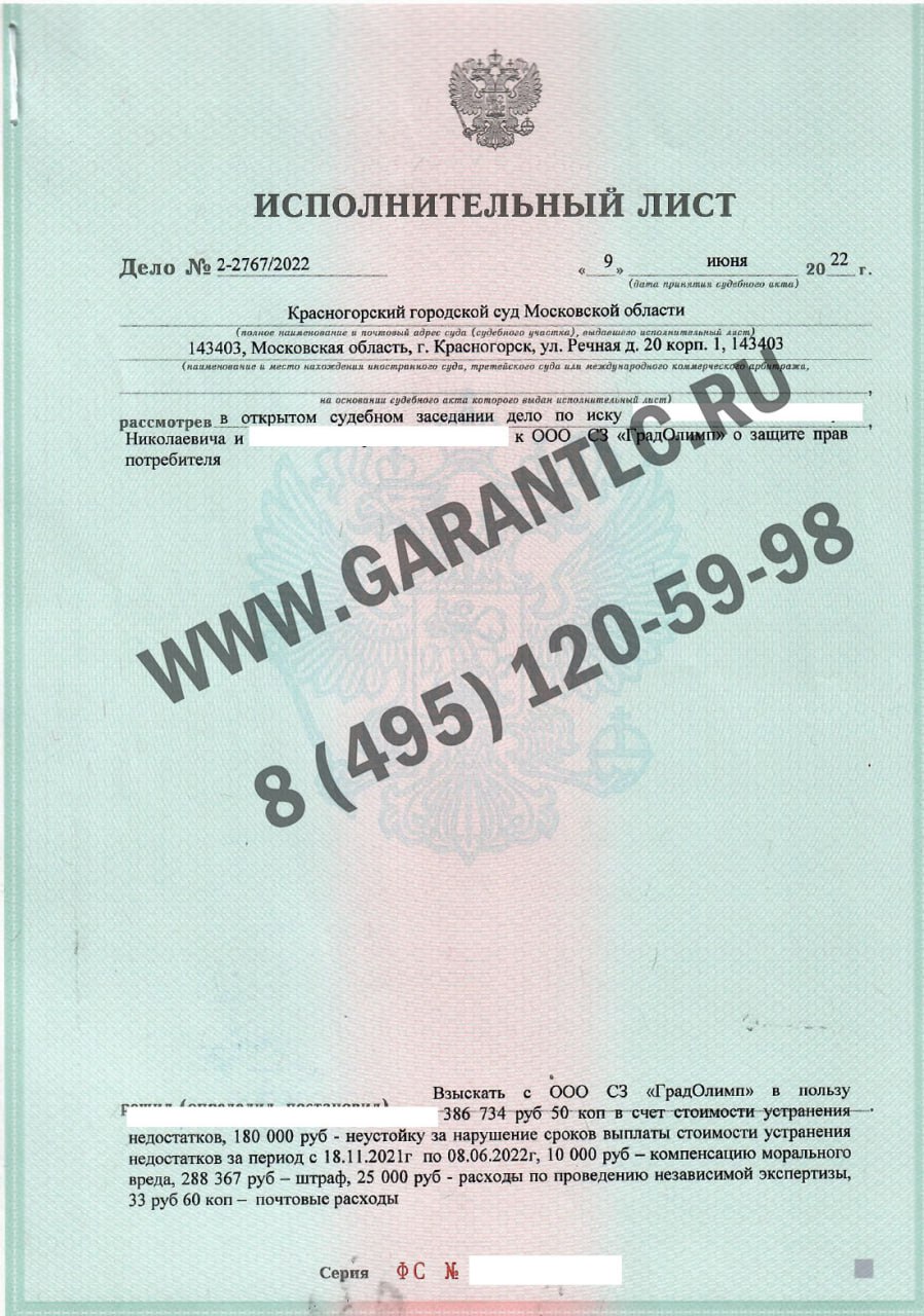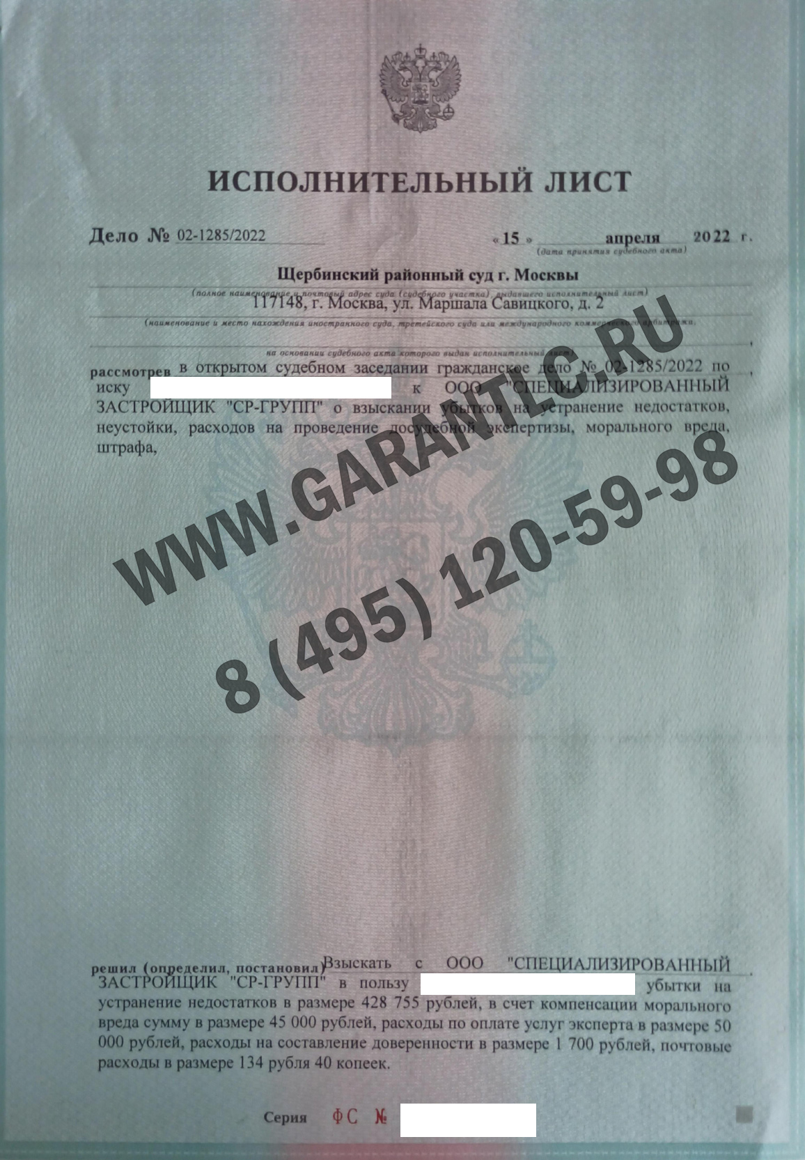 Судебная практика ЮК ГАРАНТ по взысканию компенсации за недостатки в отделке от застройщика (соразмерное уменьшение покупной цены)