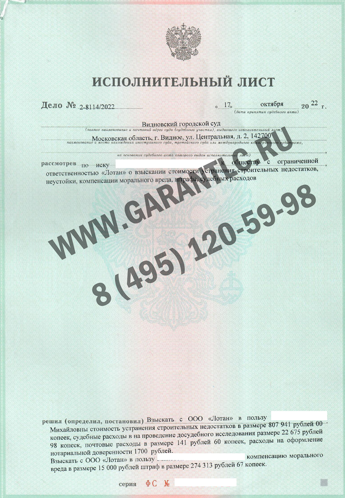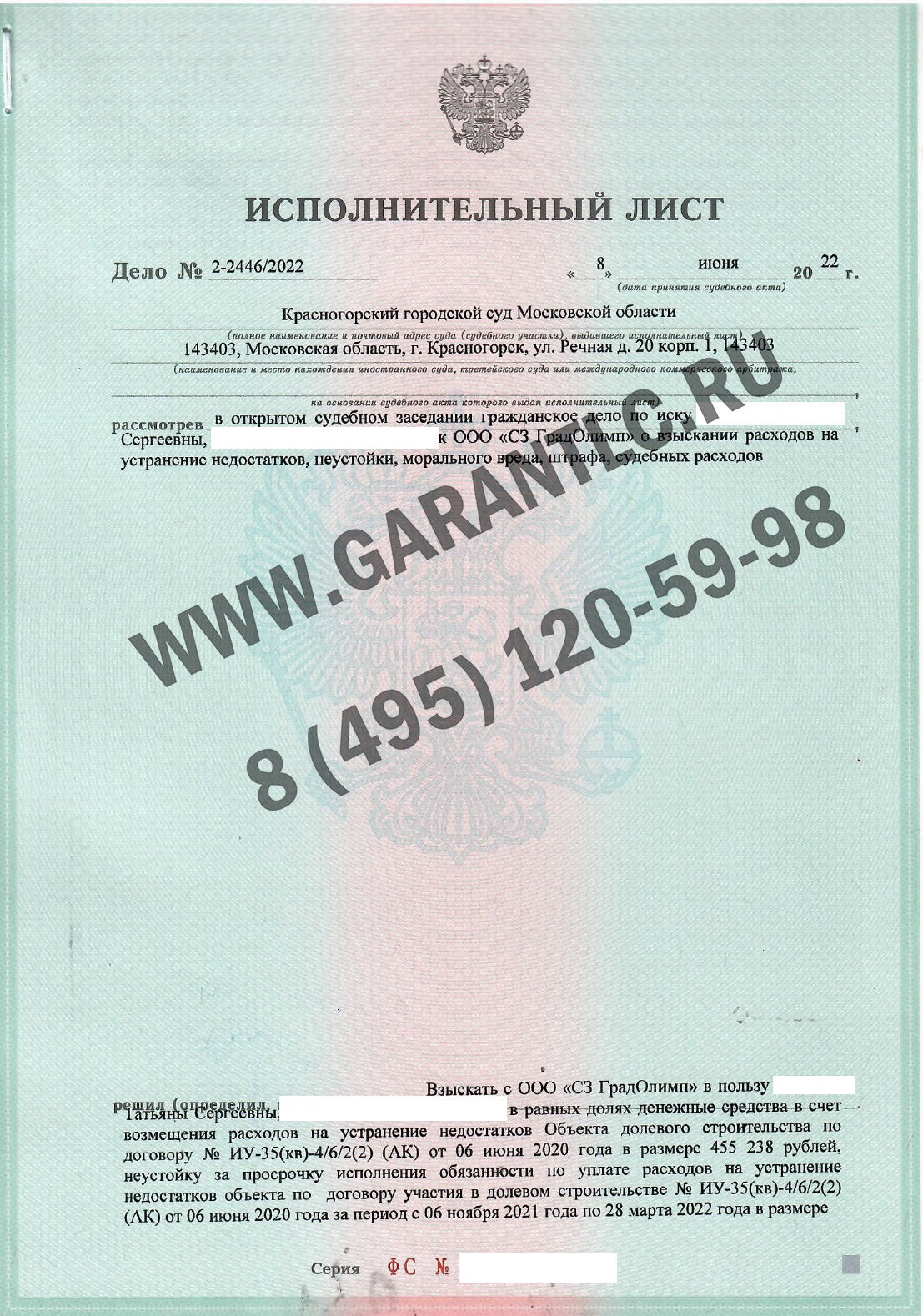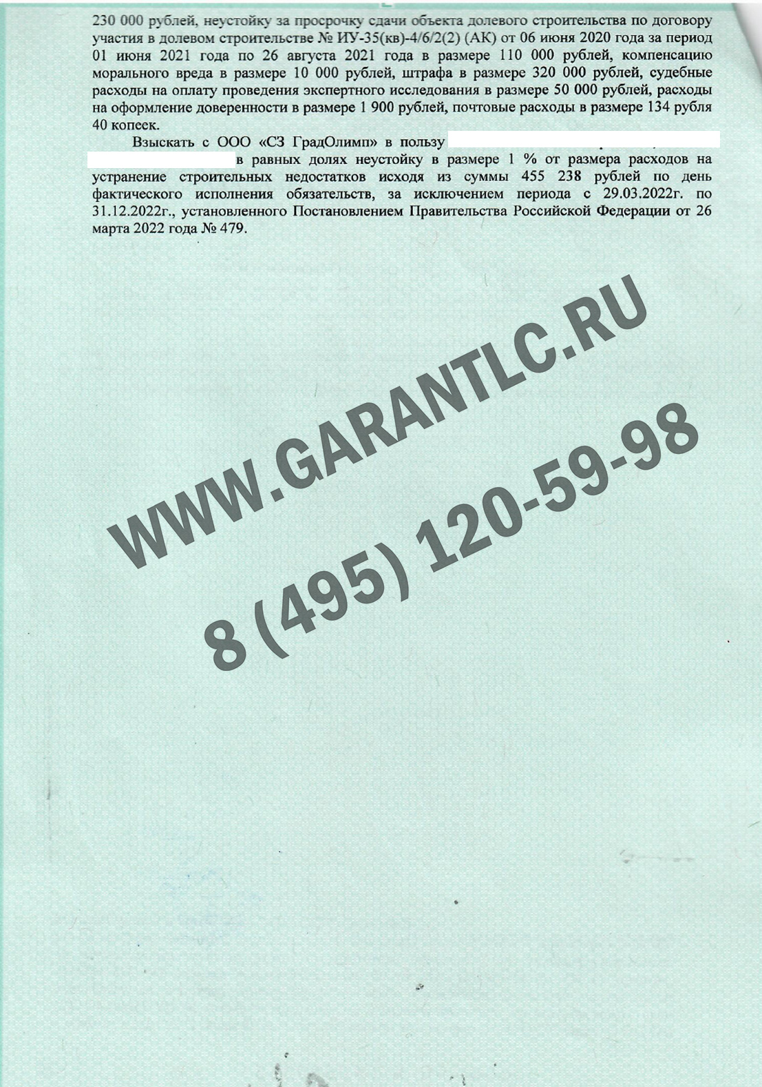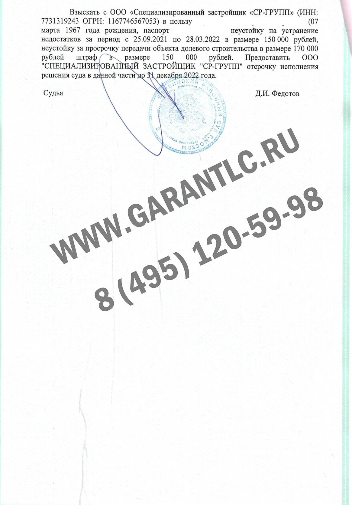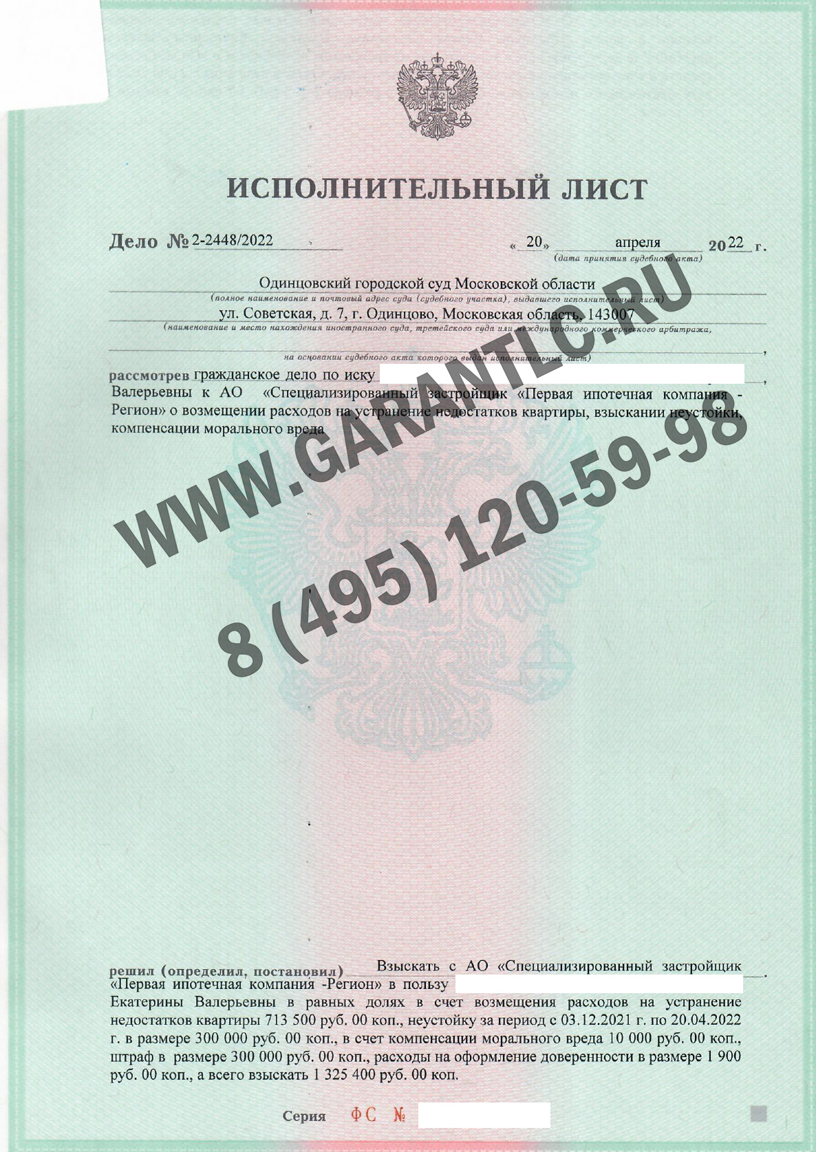 Судебная практика ЮК ГАРАНТ по взысканию компенсации за недостатки в отделке от застройщика (соразмерное уменьшение покупной цены)
