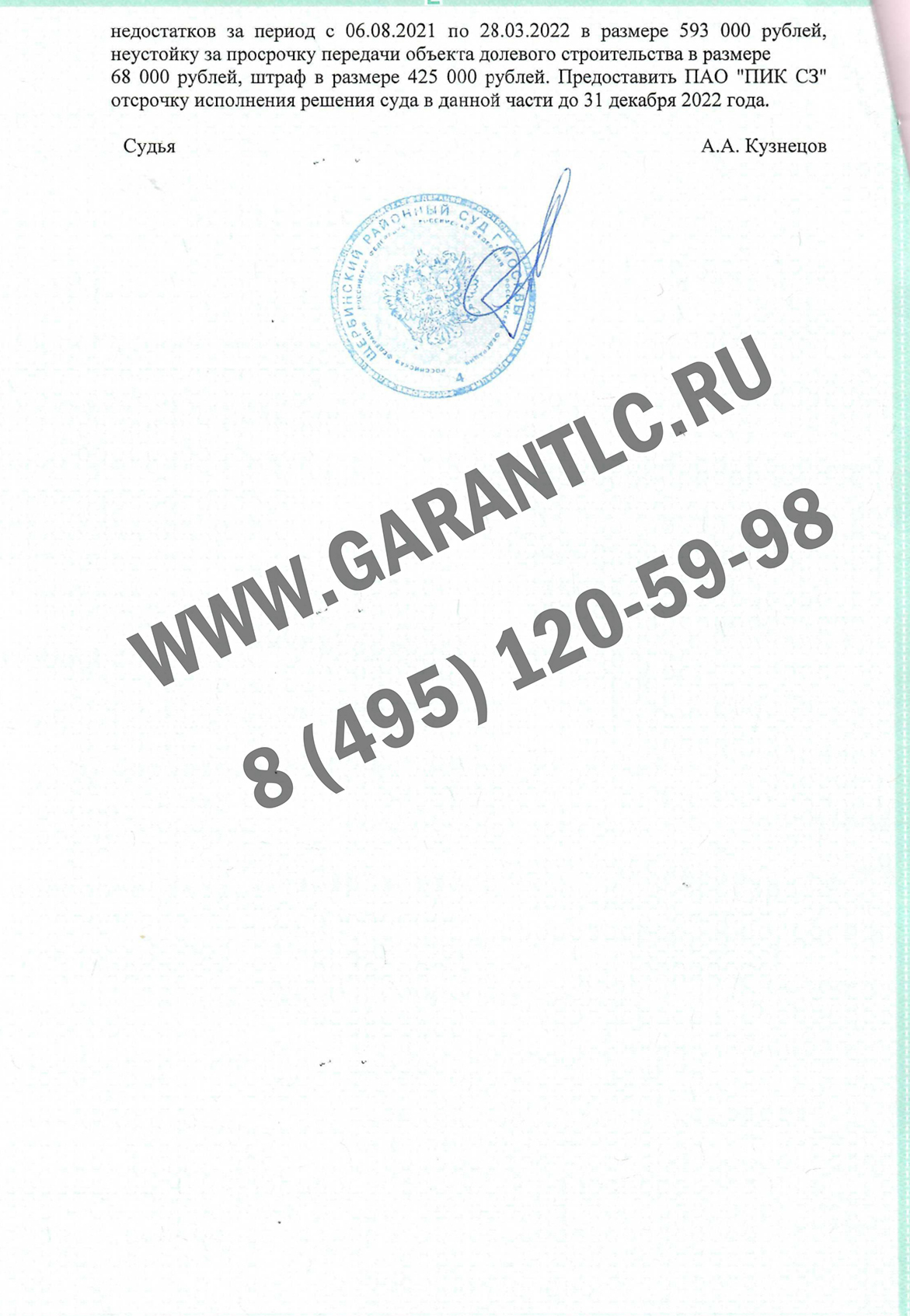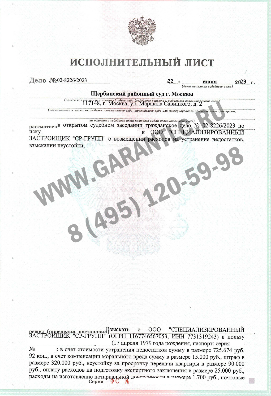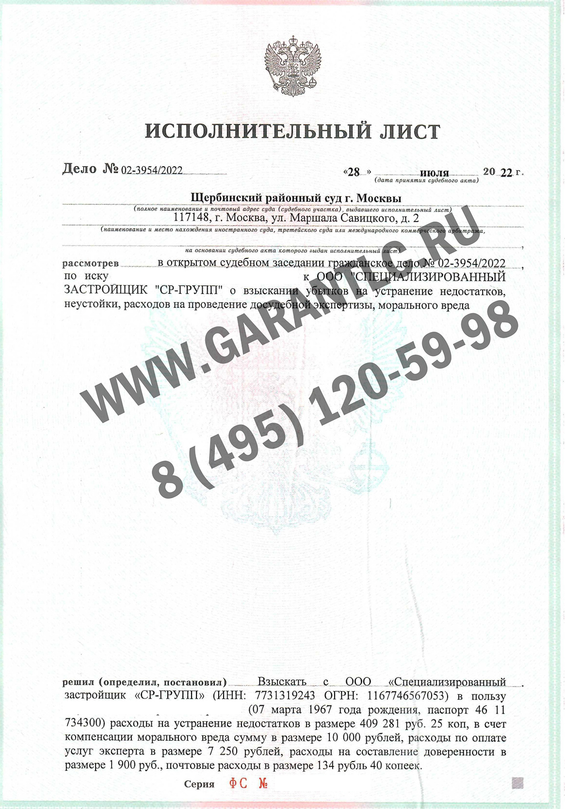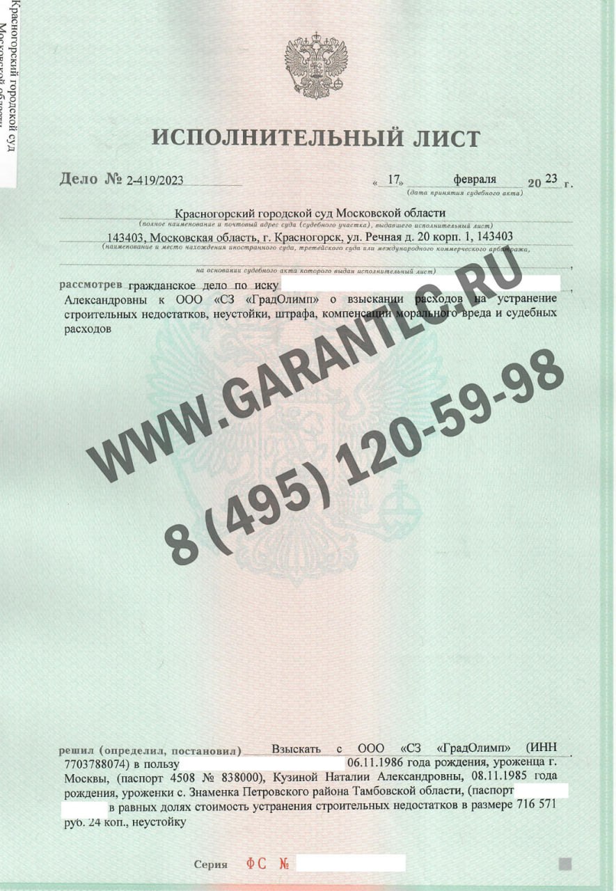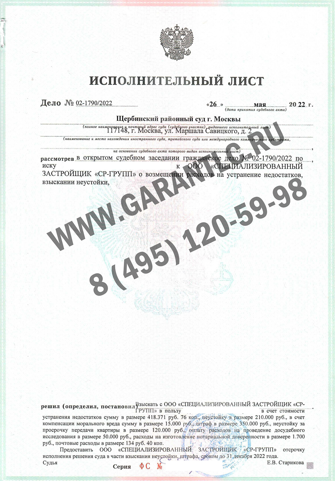 Судебная практика ЮК ГАРАНТ по взысканию компенсации за недостатки в отделке от застройщика (соразмерное уменьшение покупной цены)