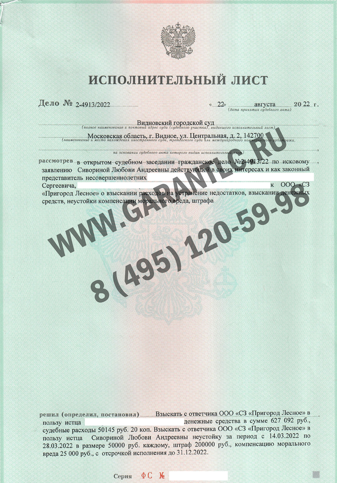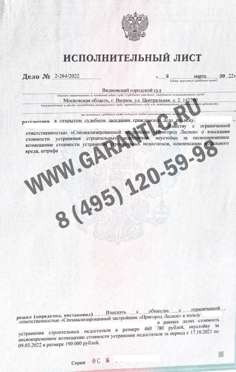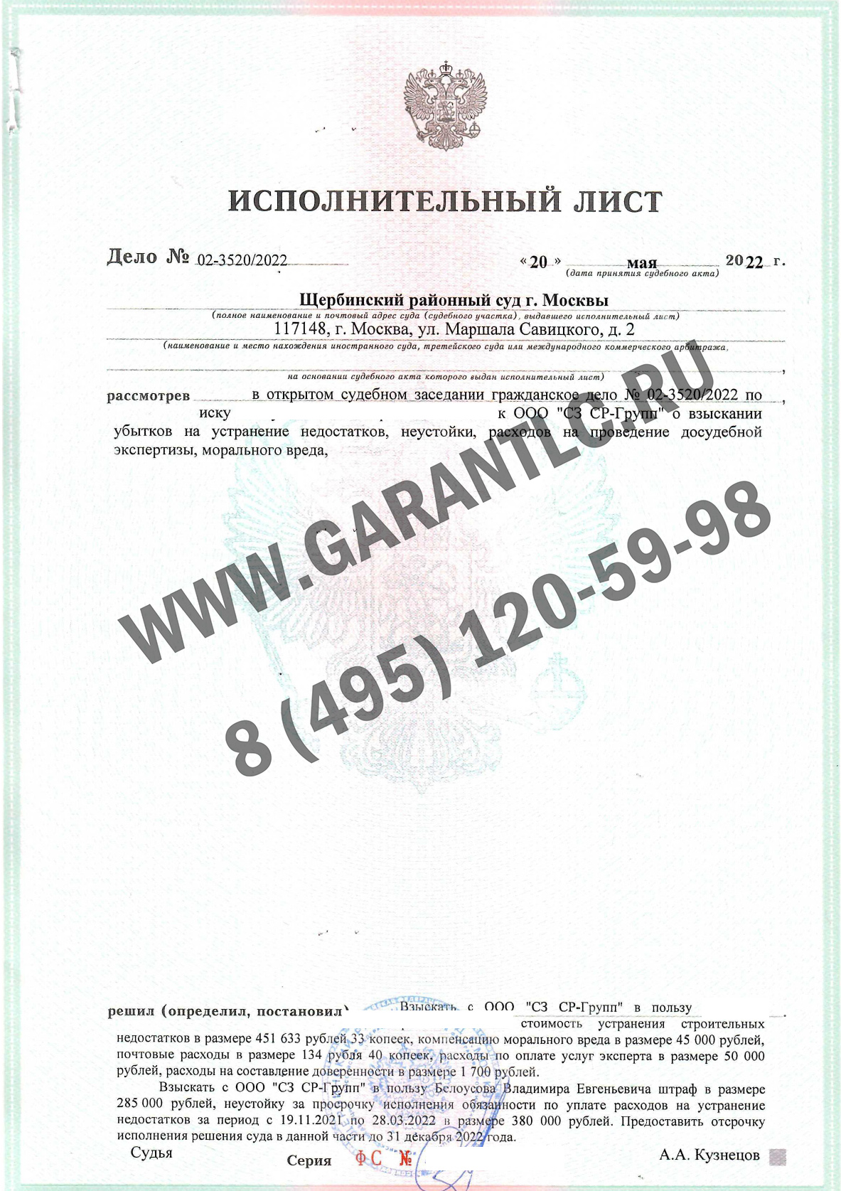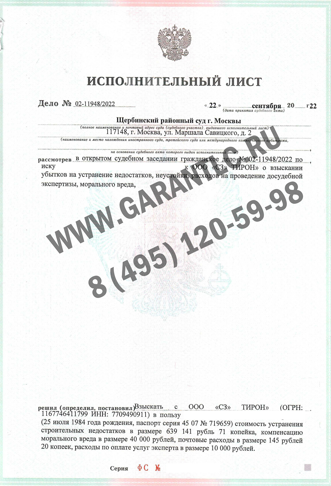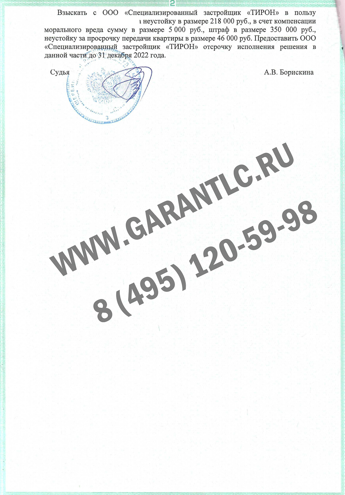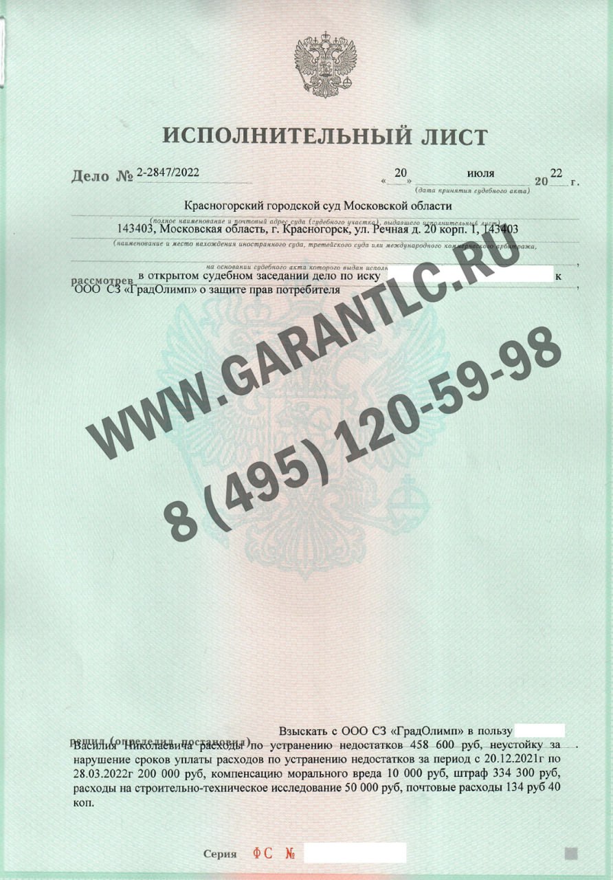 Судебная практика ЮК ГАРАНТ по взысканию компенсации за недостатки в отделке от застройщика (соразмерное уменьшение покупной цены)