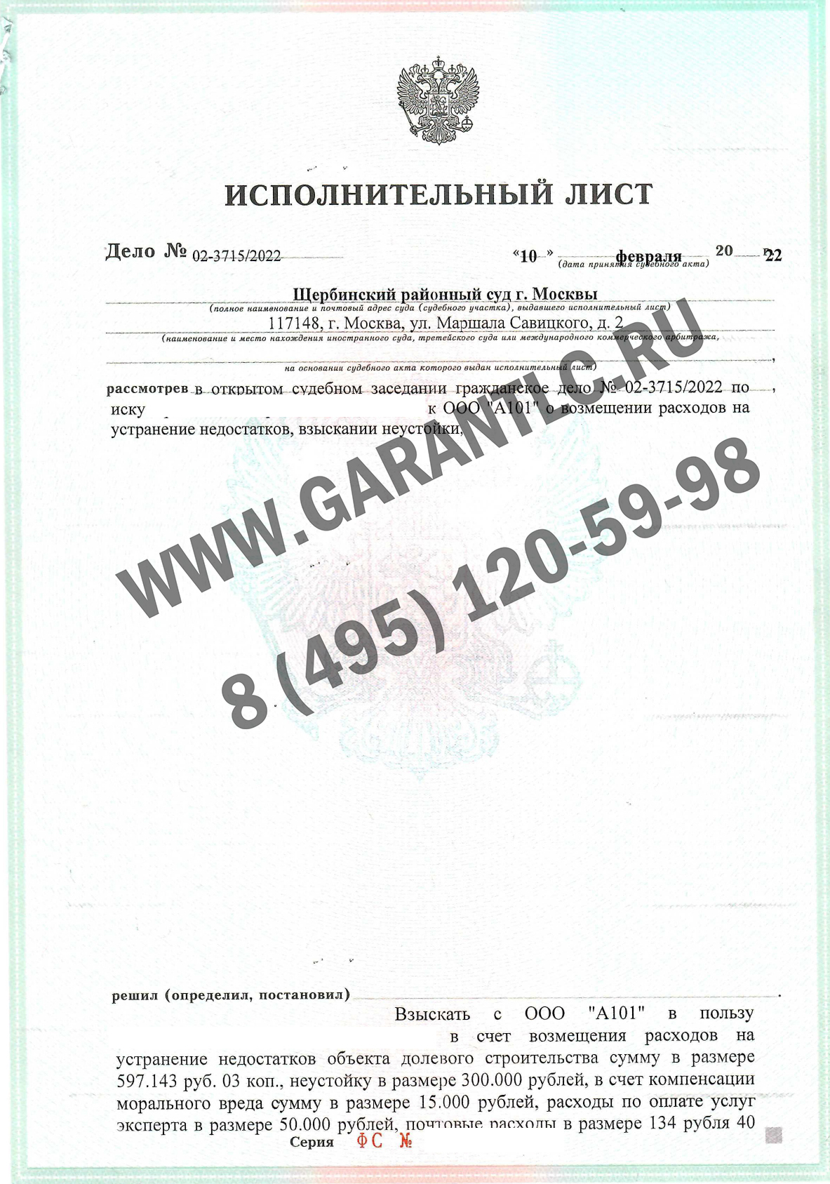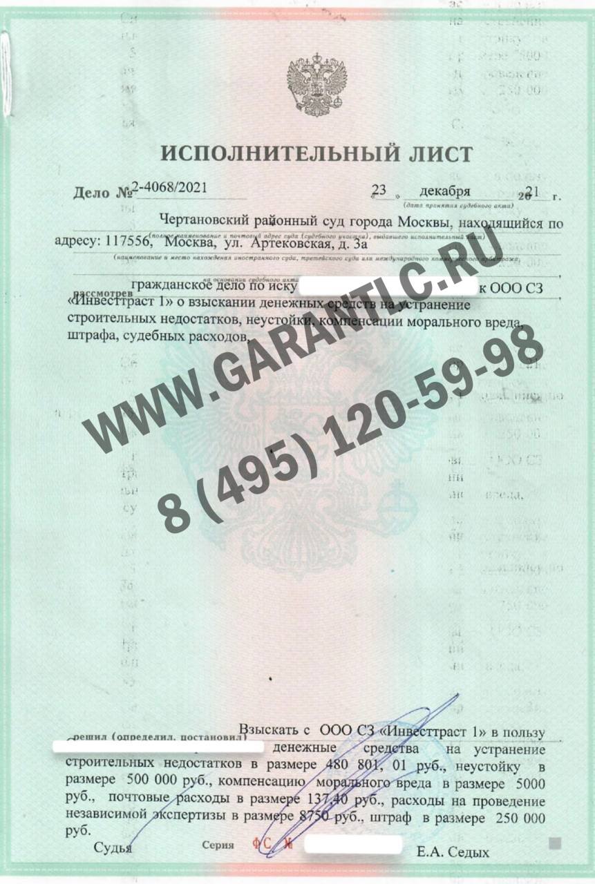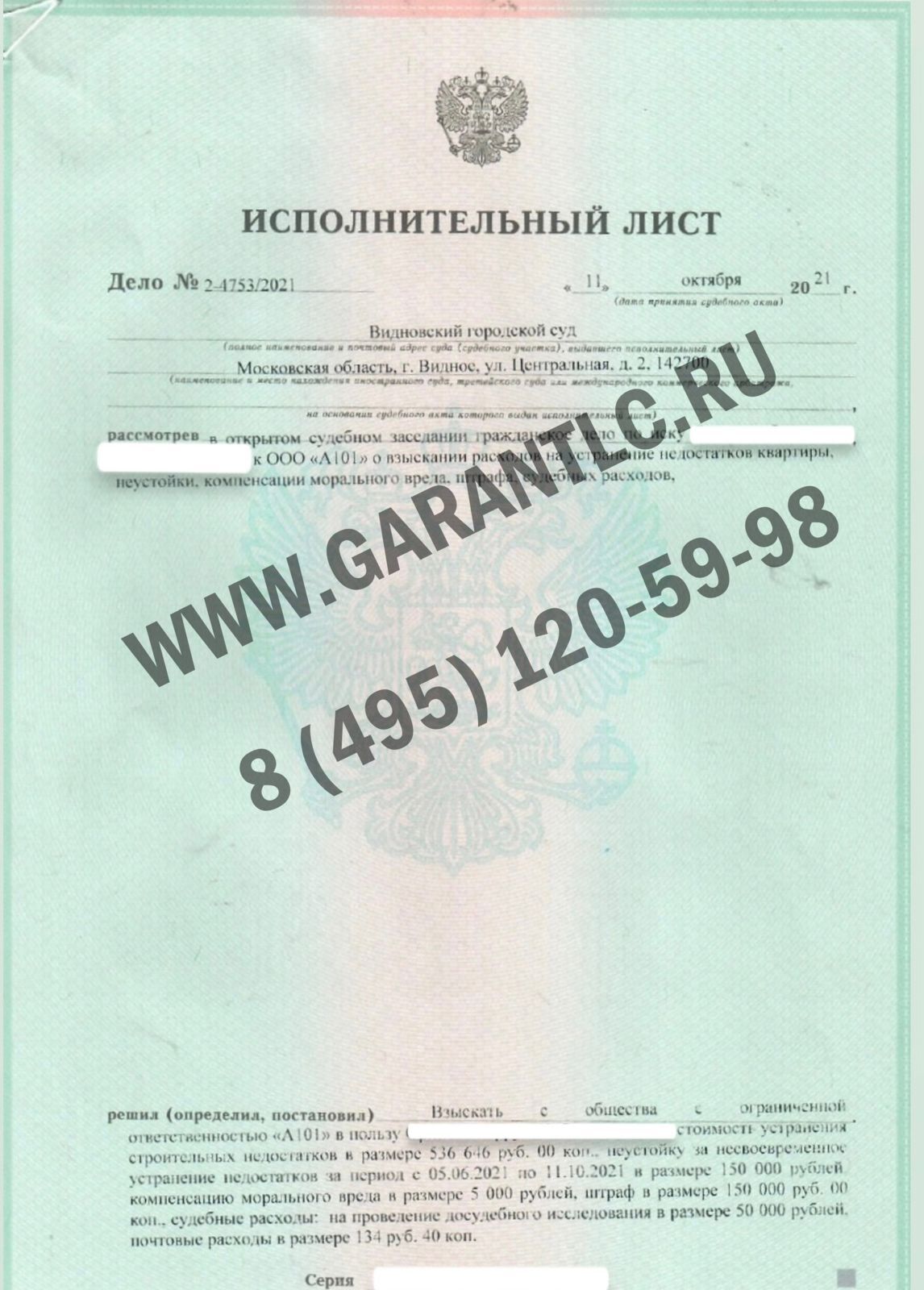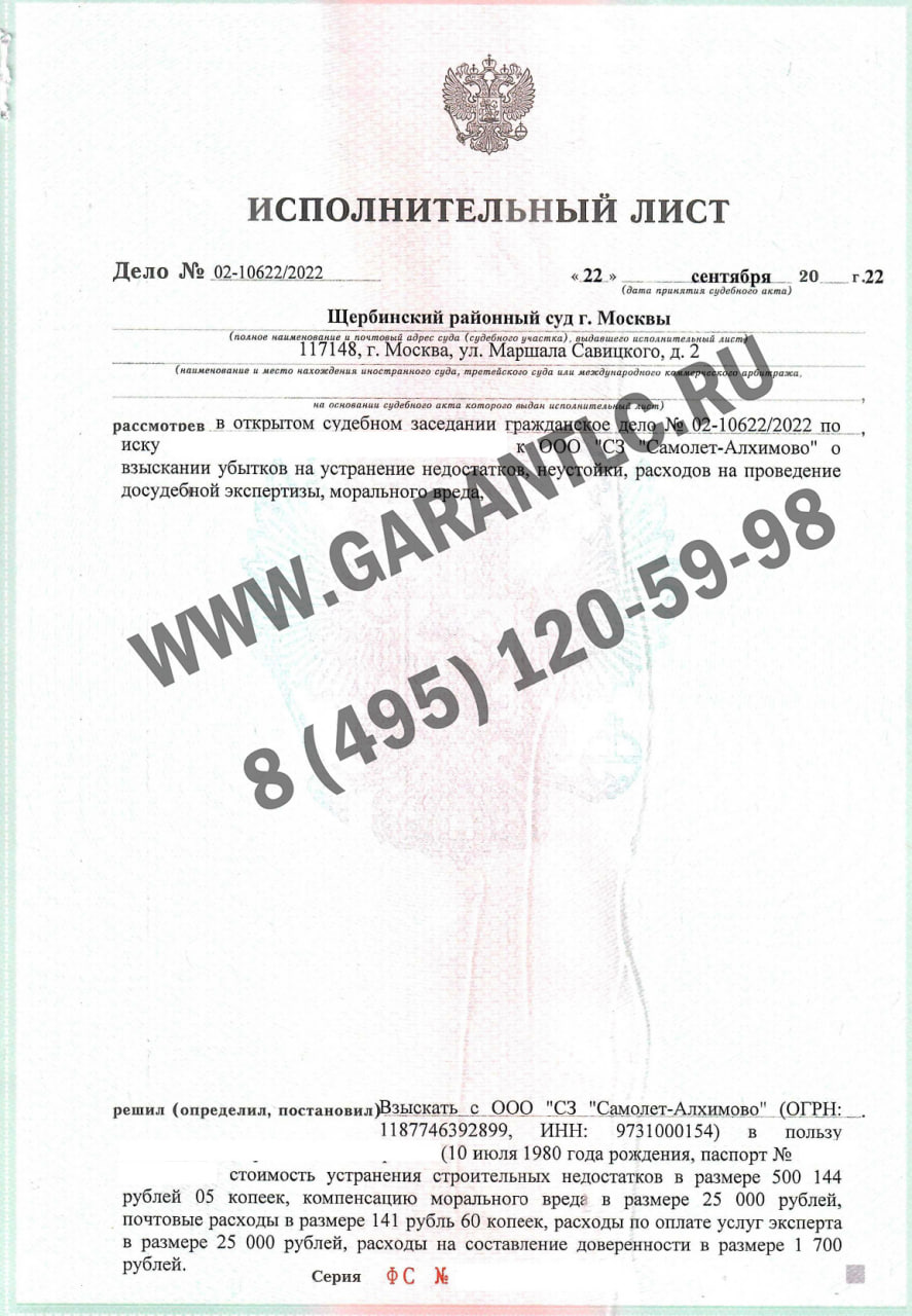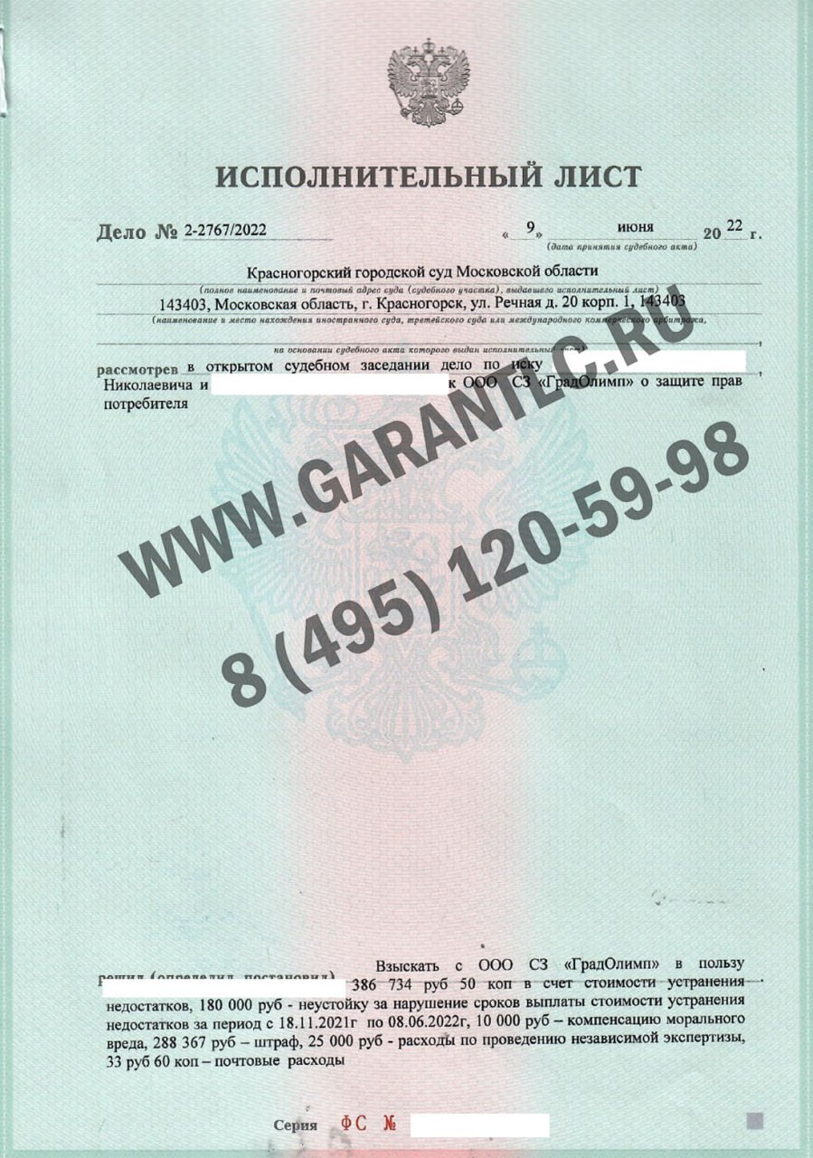 Судебная практика ЮК ГАРАНТ по взысканию компенсации за недостатки в отделке от застройщика (соразмерное уменьшение покупной цены)