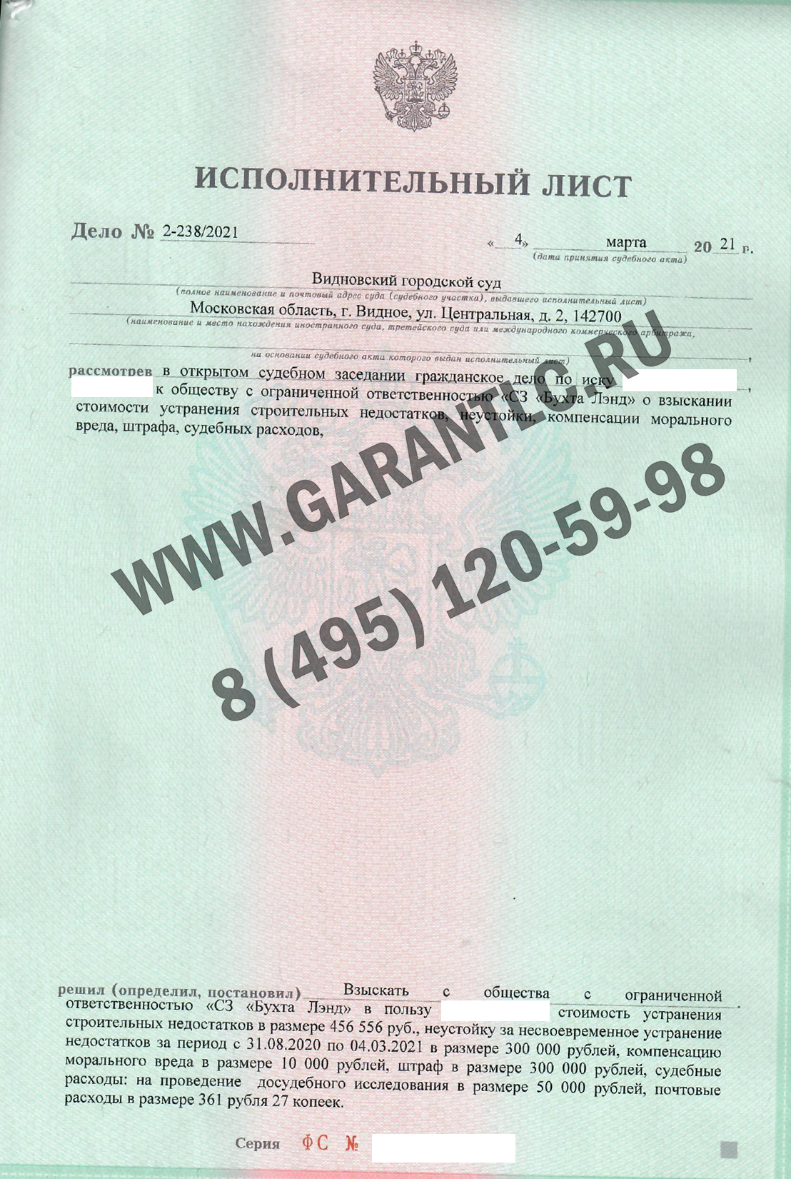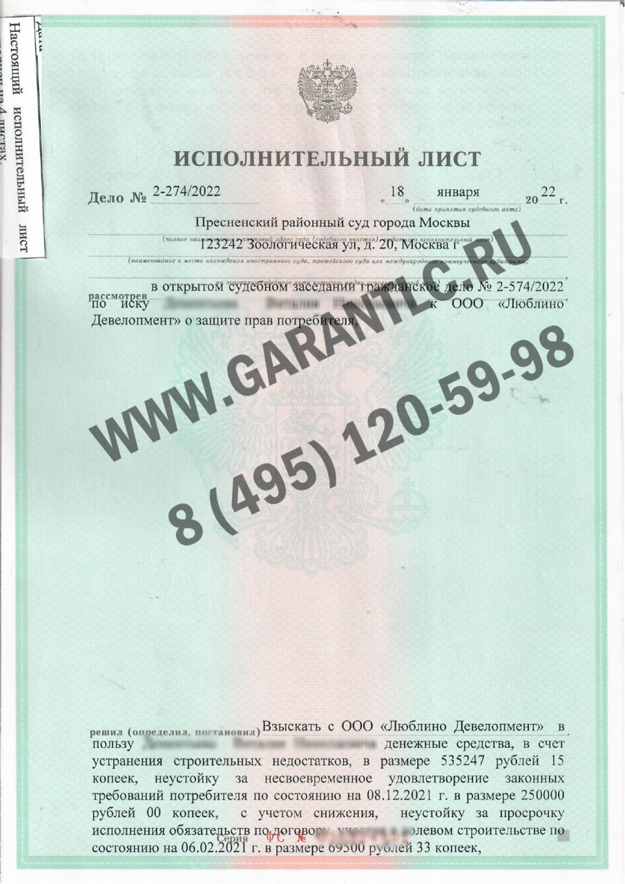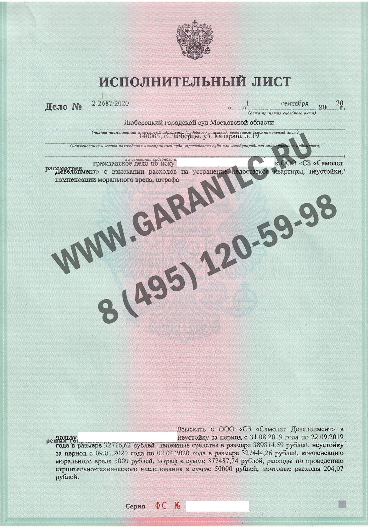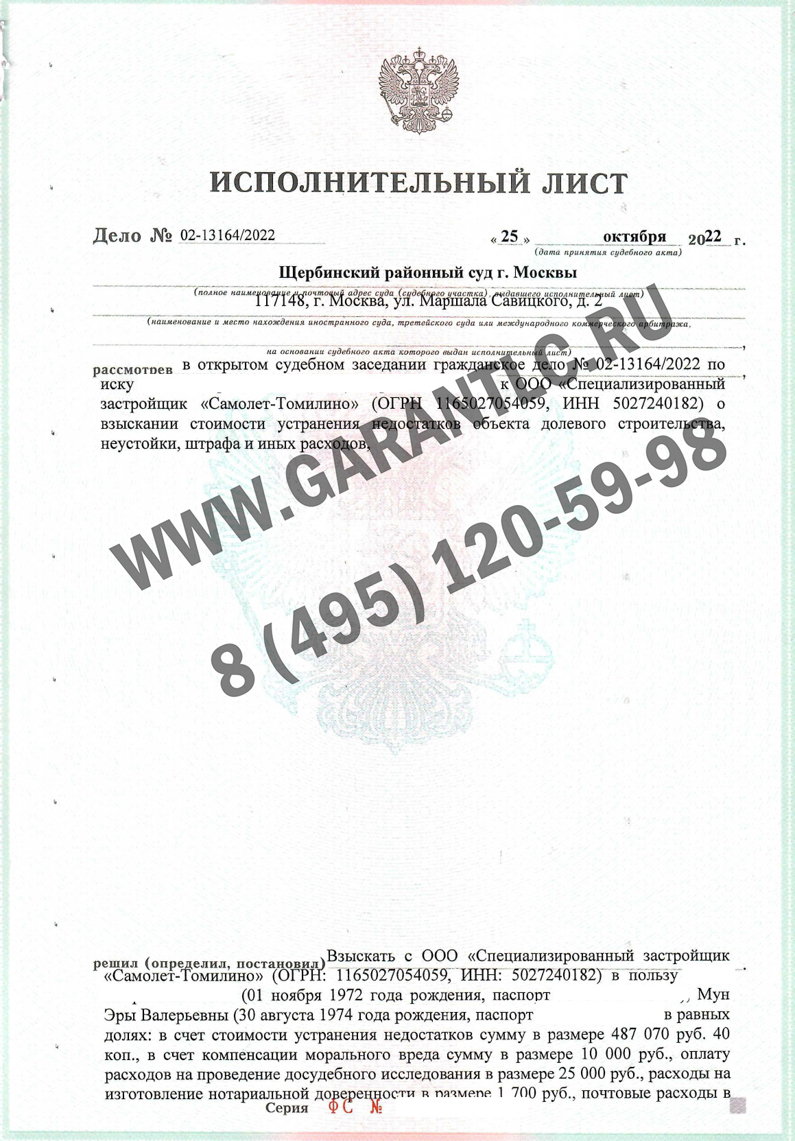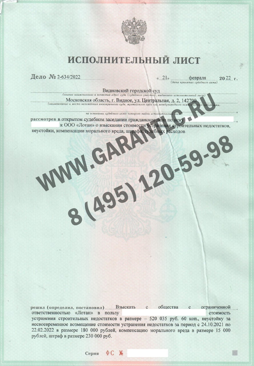Судебная практика ЮК ГАРАНТ по взысканию компенсации за недостатки в отделке от застройщика (соразмерное уменьшение покупной цены)
