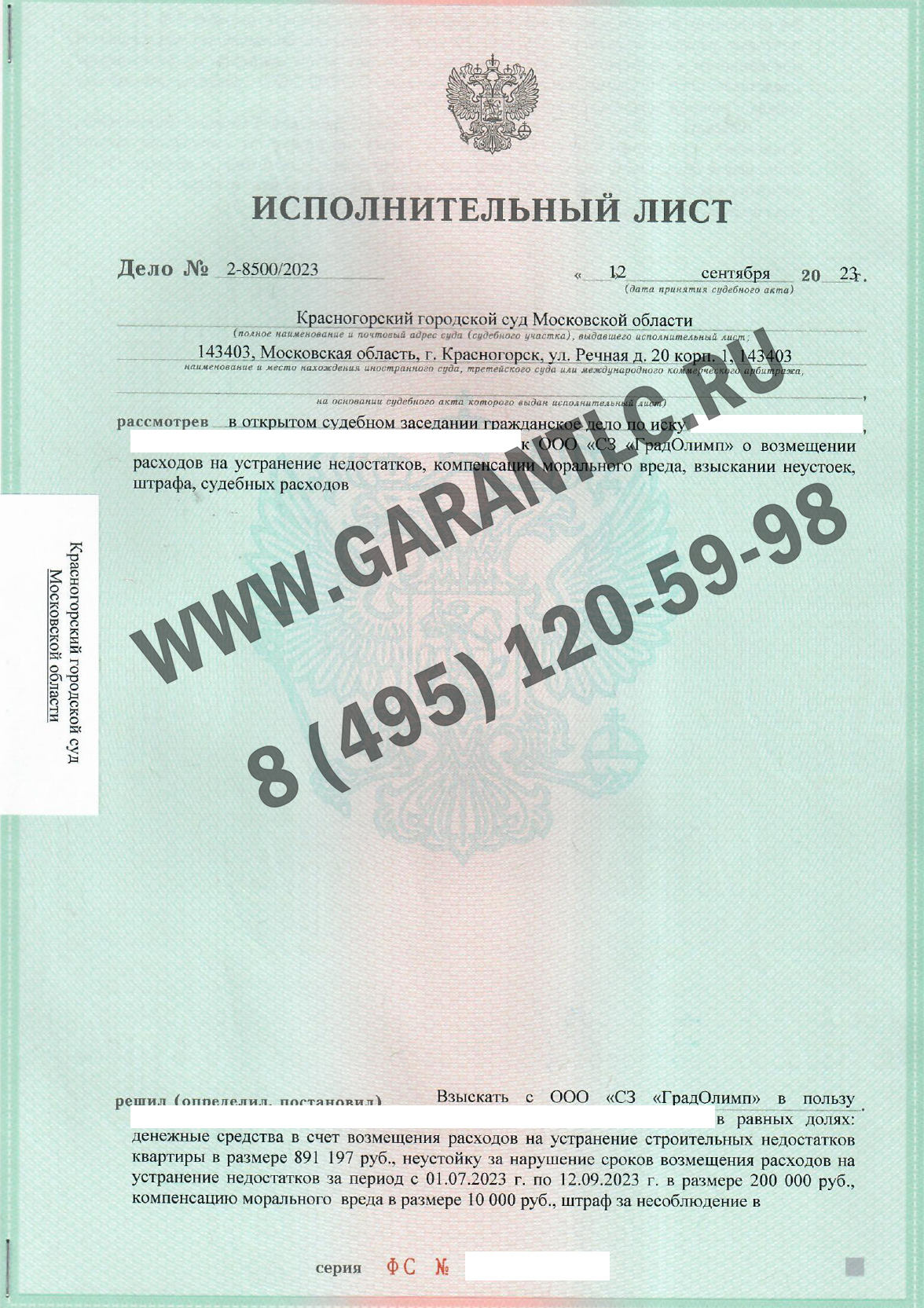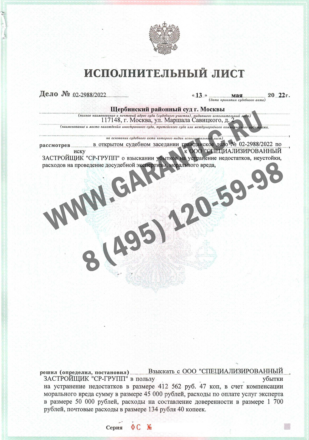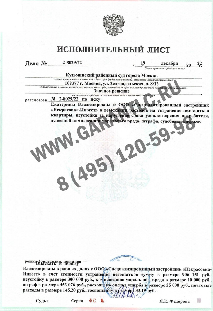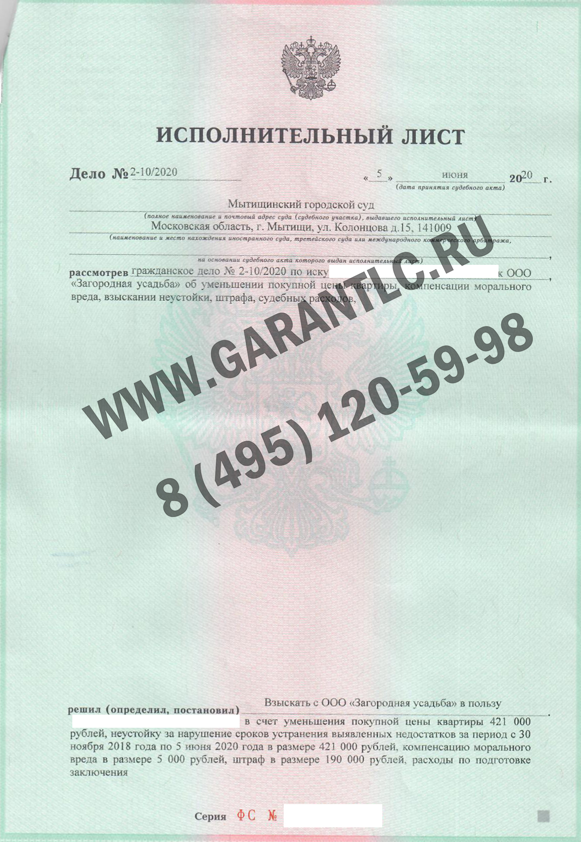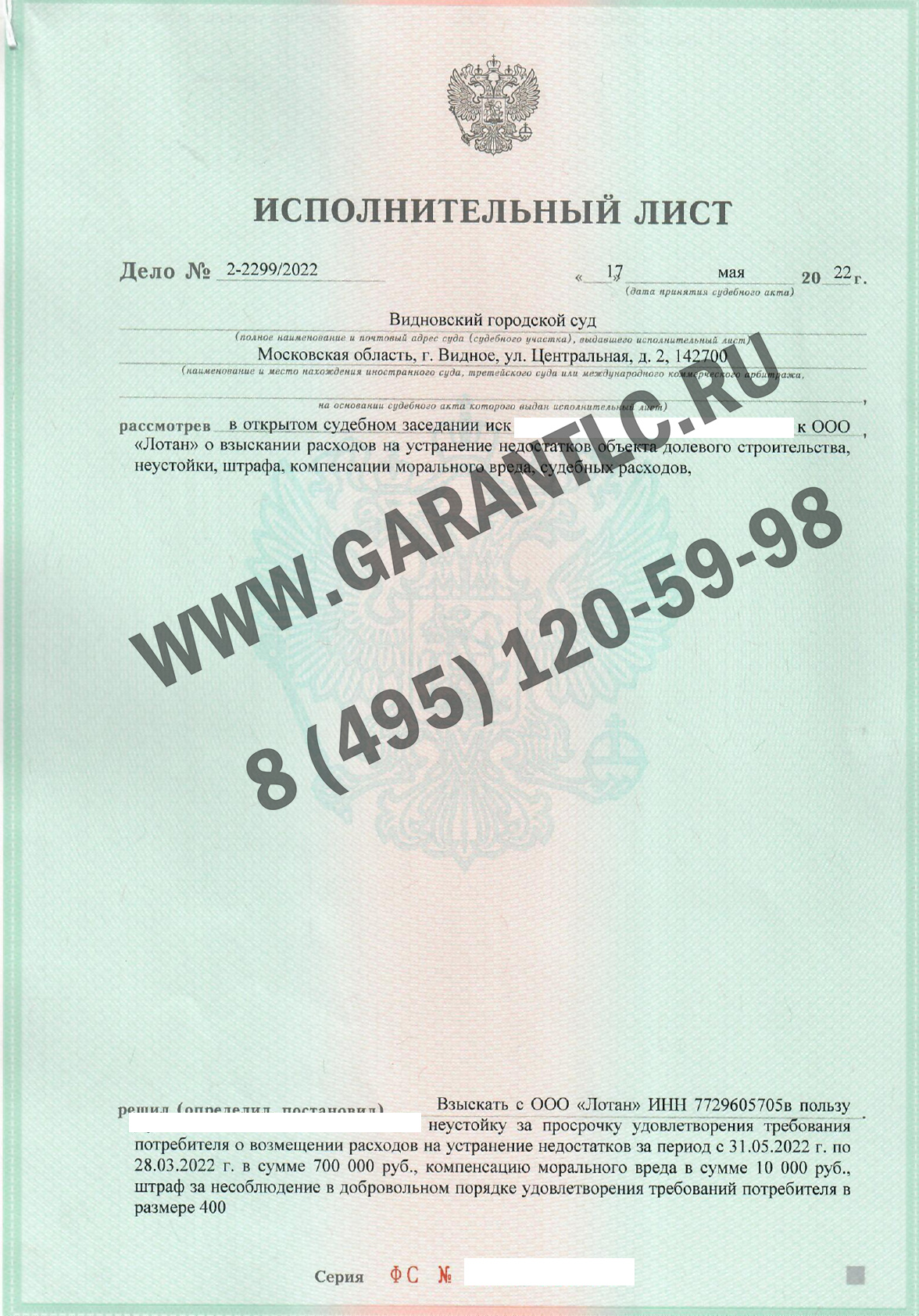 Судебная практика ЮК ГАРАНТ по взысканию компенсации за недостатки в отделке от застройщика (соразмерное уменьшение покупной цены)
