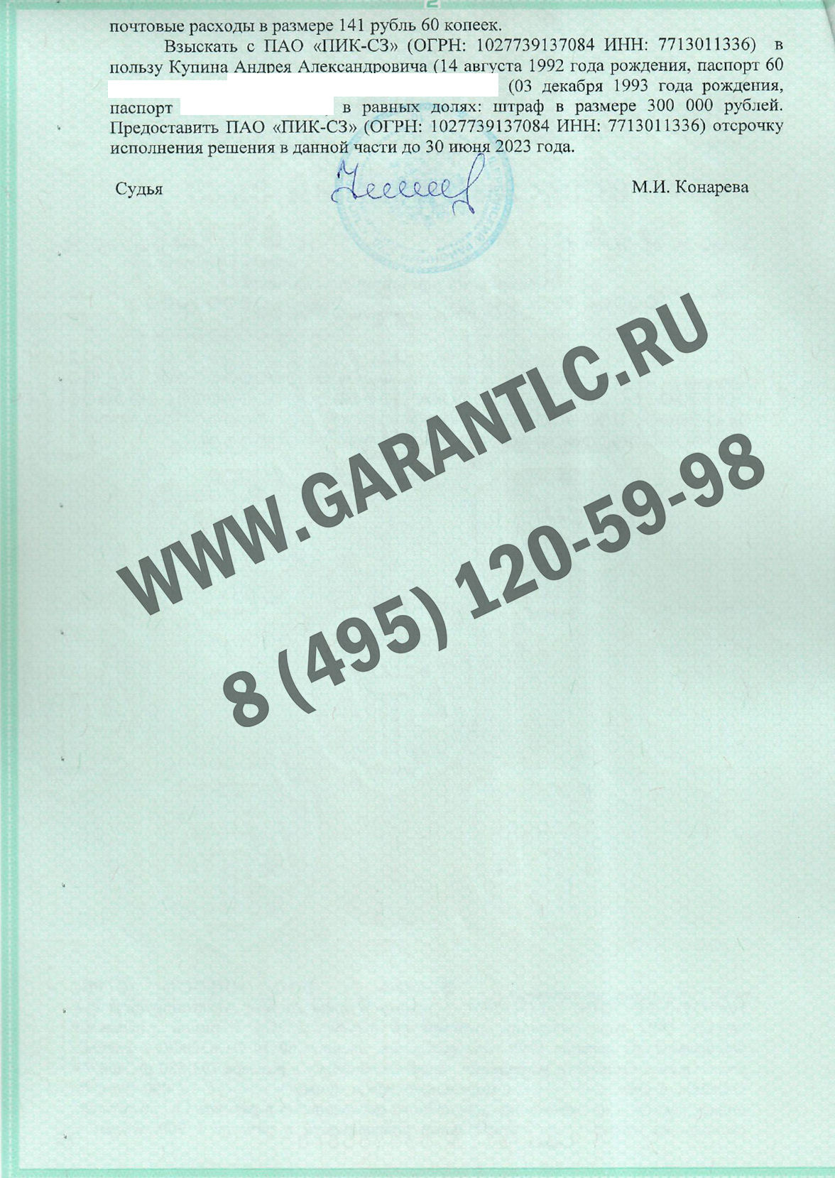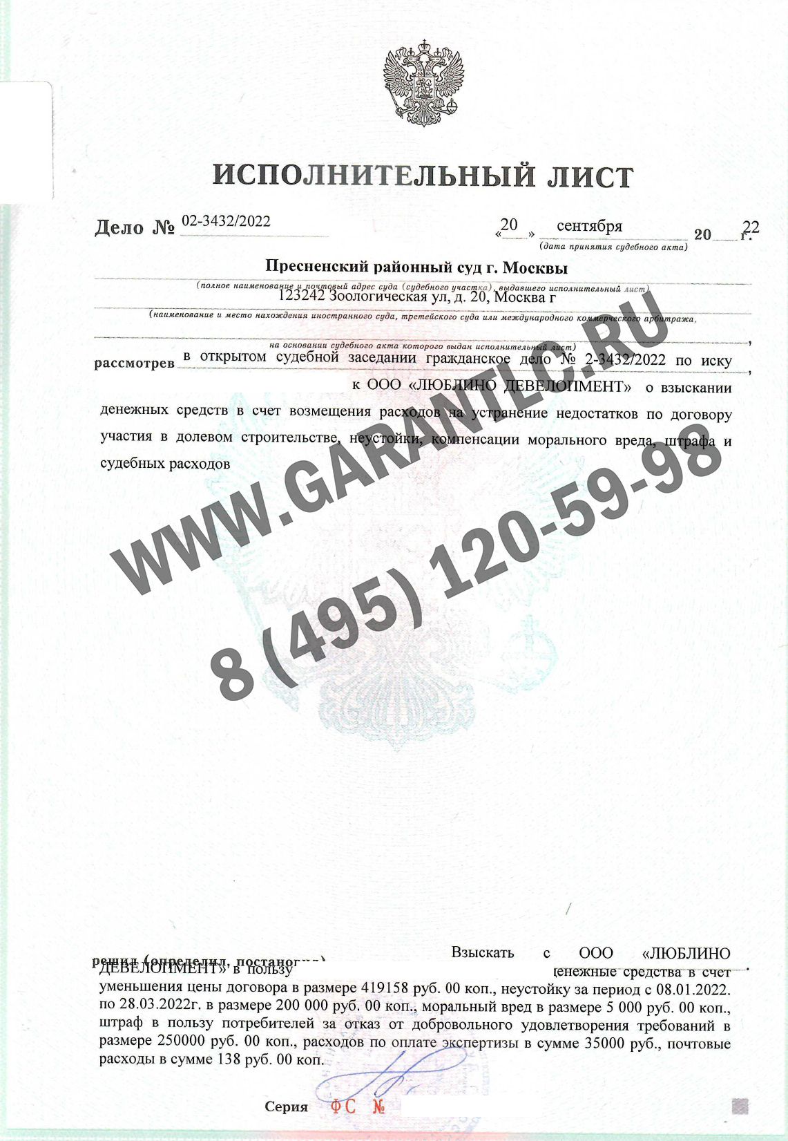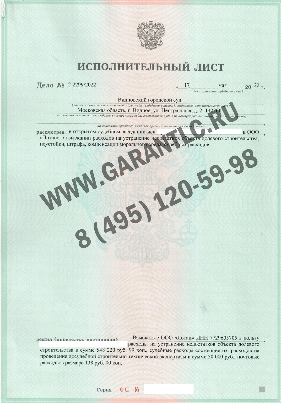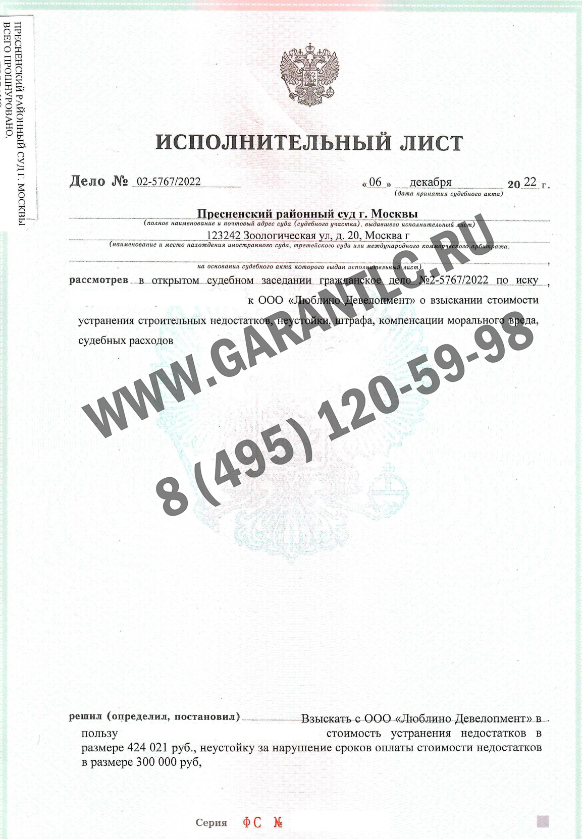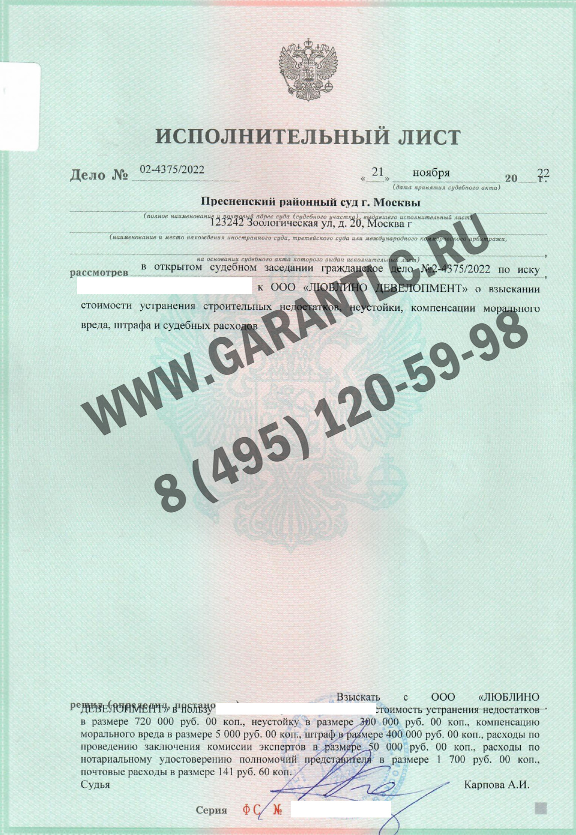 Судебная практика ЮК ГАРАНТ по взысканию компенсации за недостатки в отделке от застройщика (соразмерное уменьшение покупной цены)