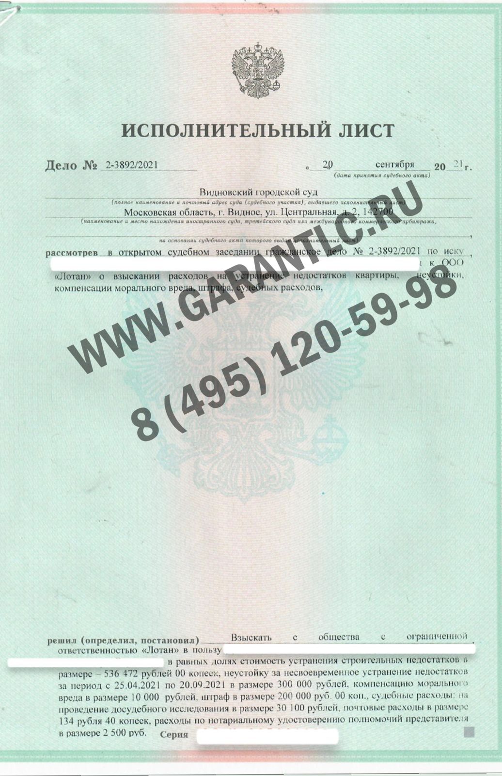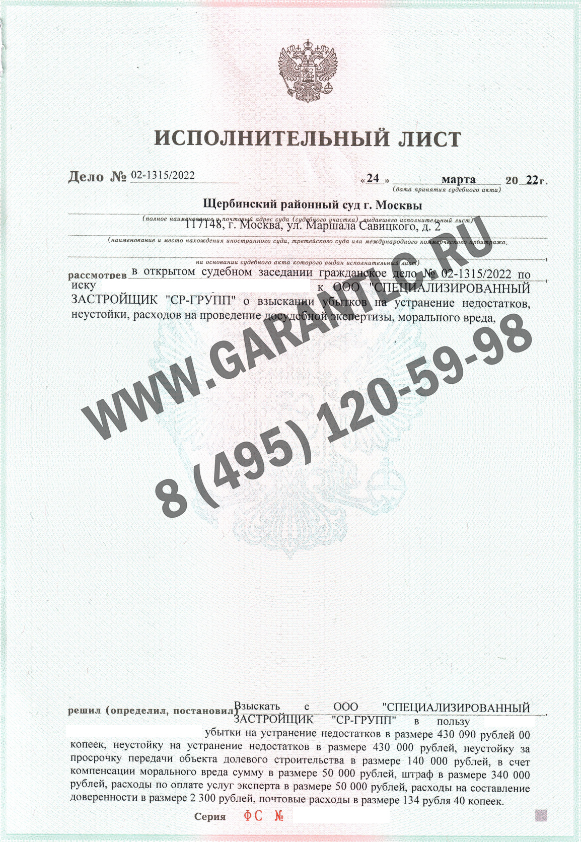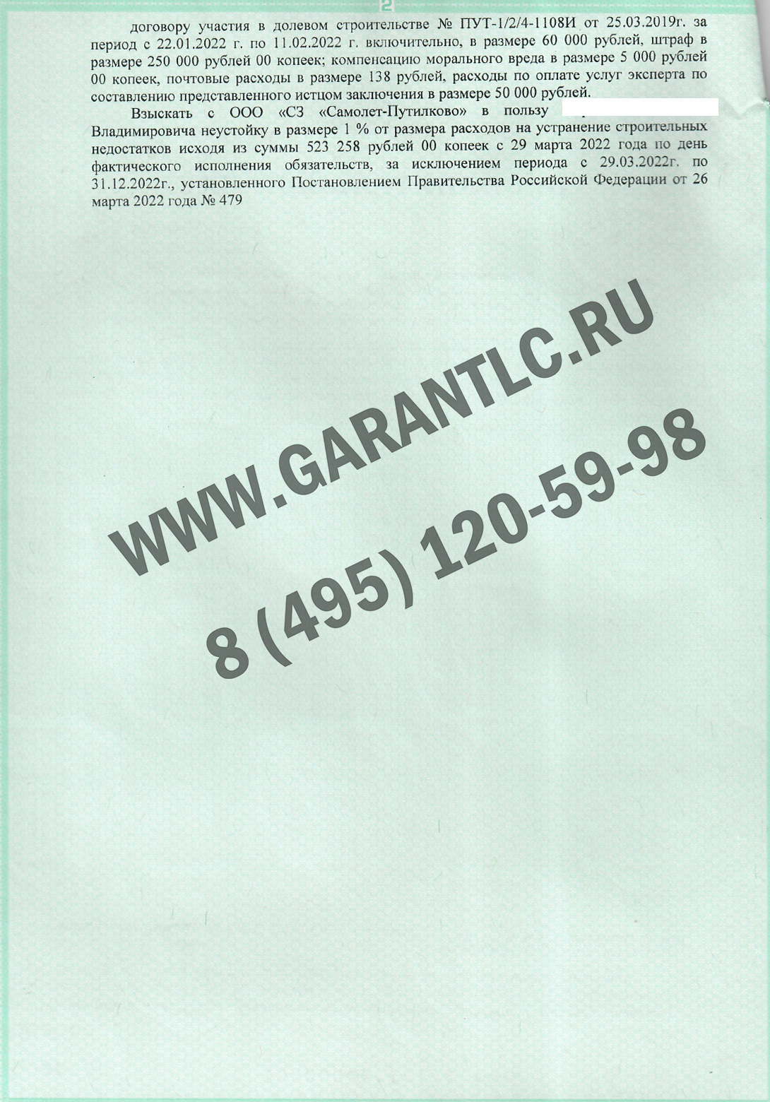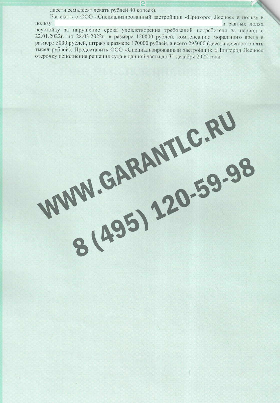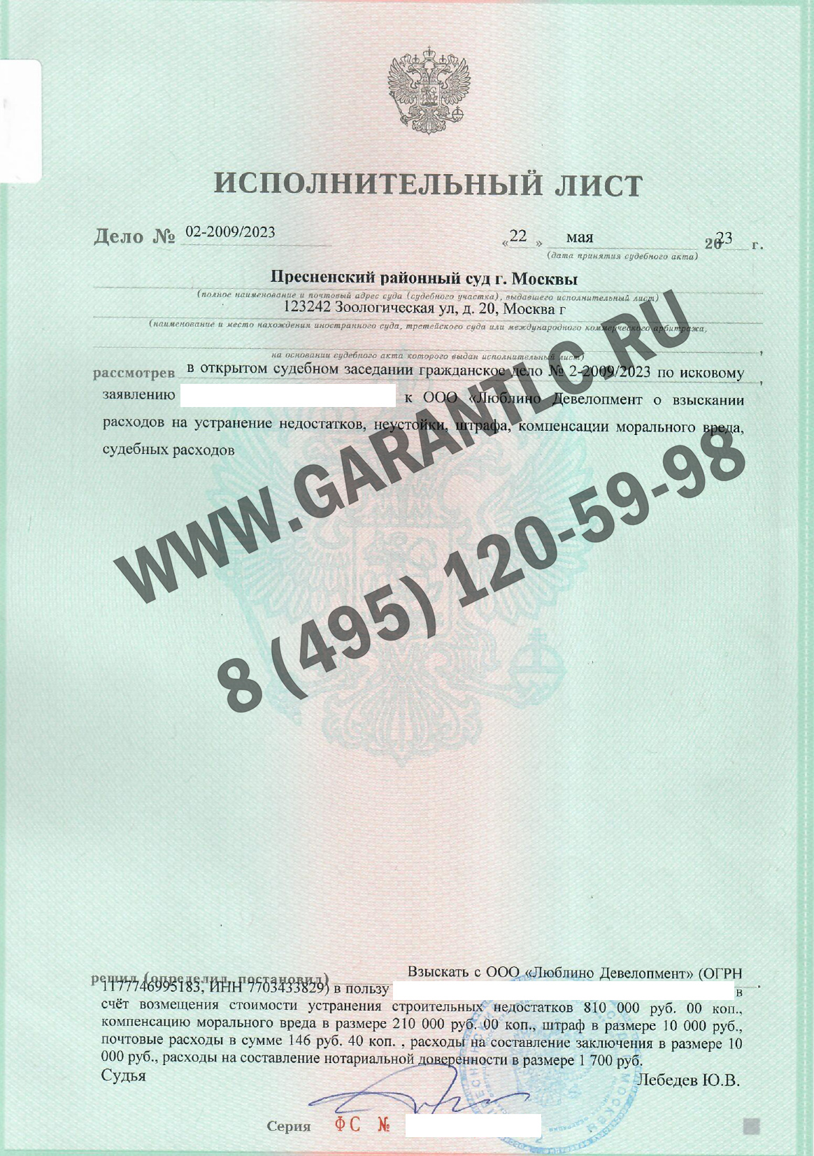 Судебная практика ЮК ГАРАНТ по взысканию компенсации за недостатки в отделке от застройщика (соразмерное уменьшение покупной цены)