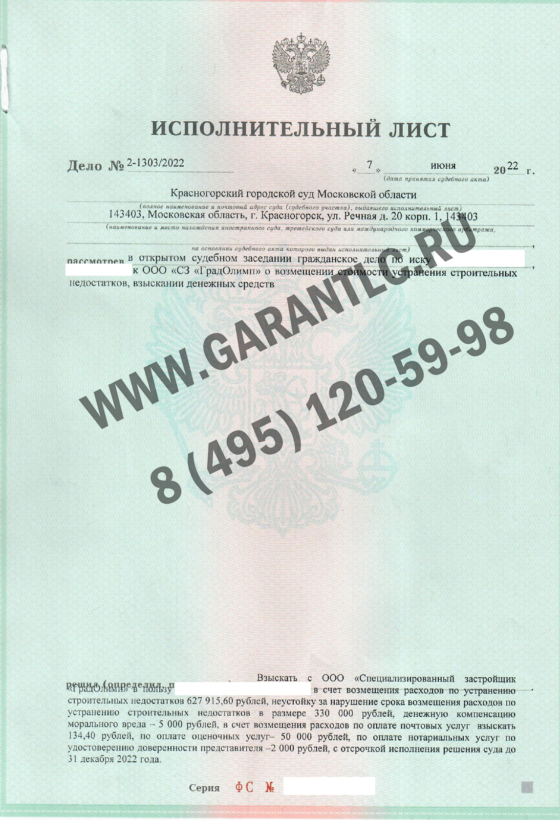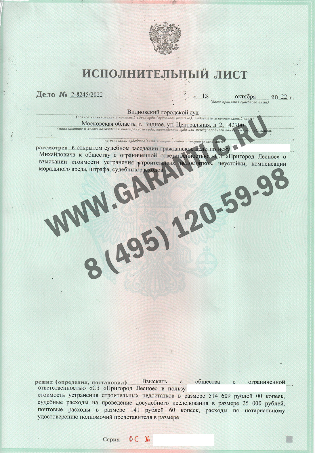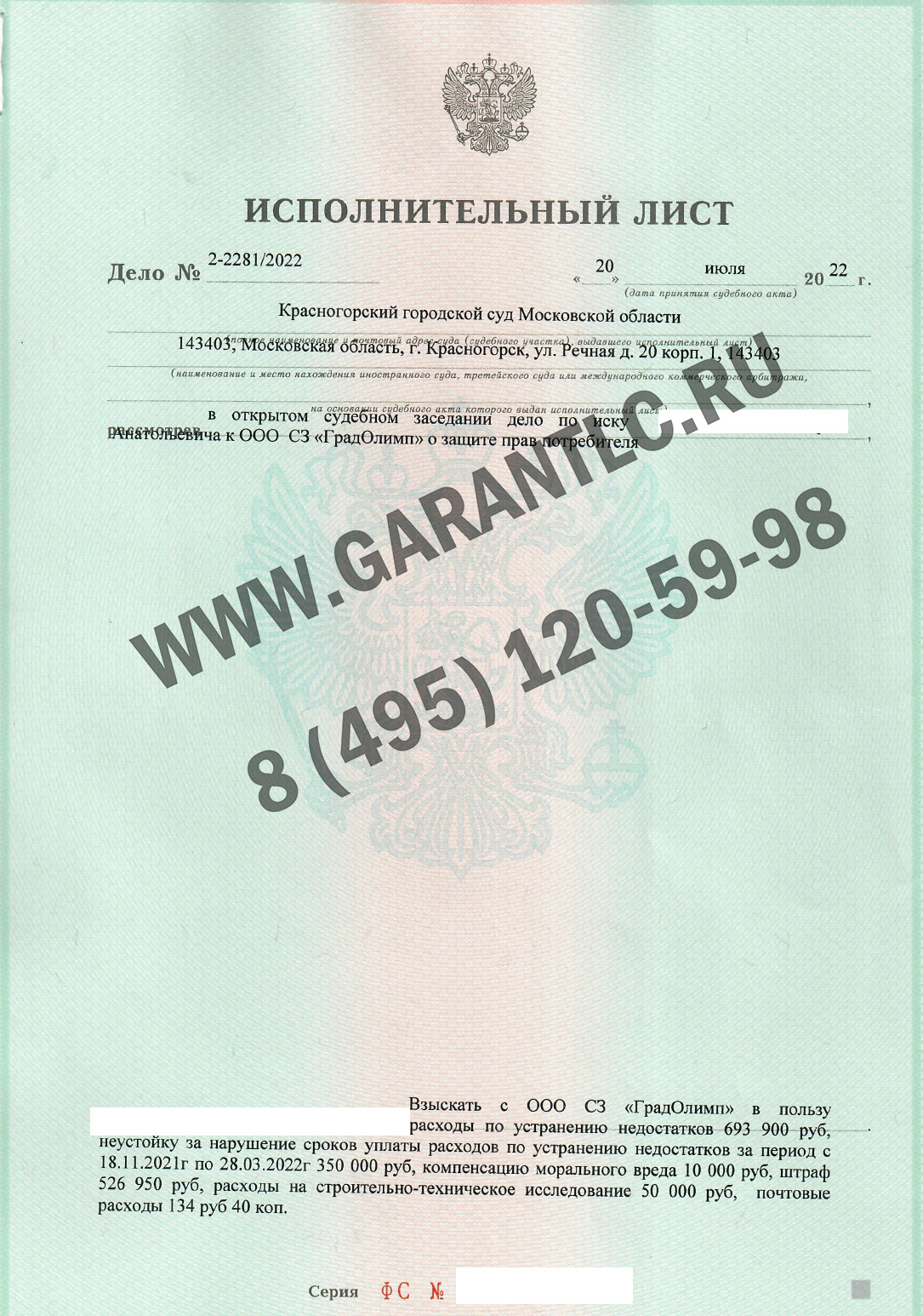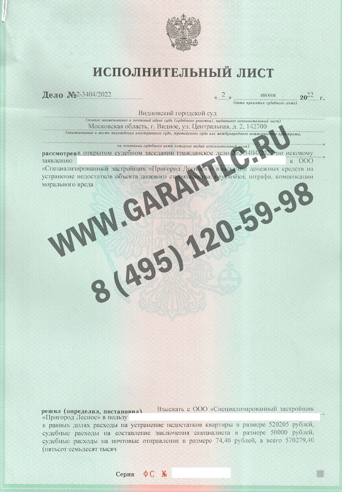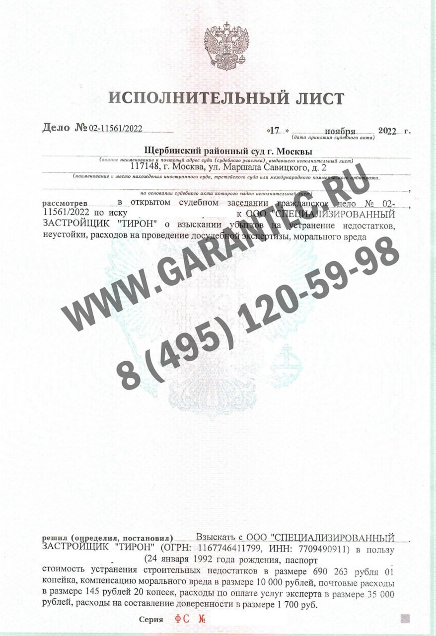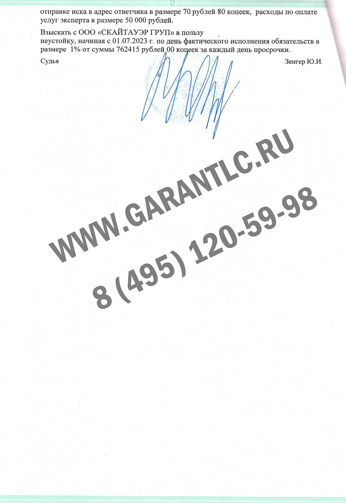 Судебная практика ЮК ГАРАНТ по взысканию компенсации за недостатки в отделке от застройщика (соразмерное уменьшение покупной цены)
