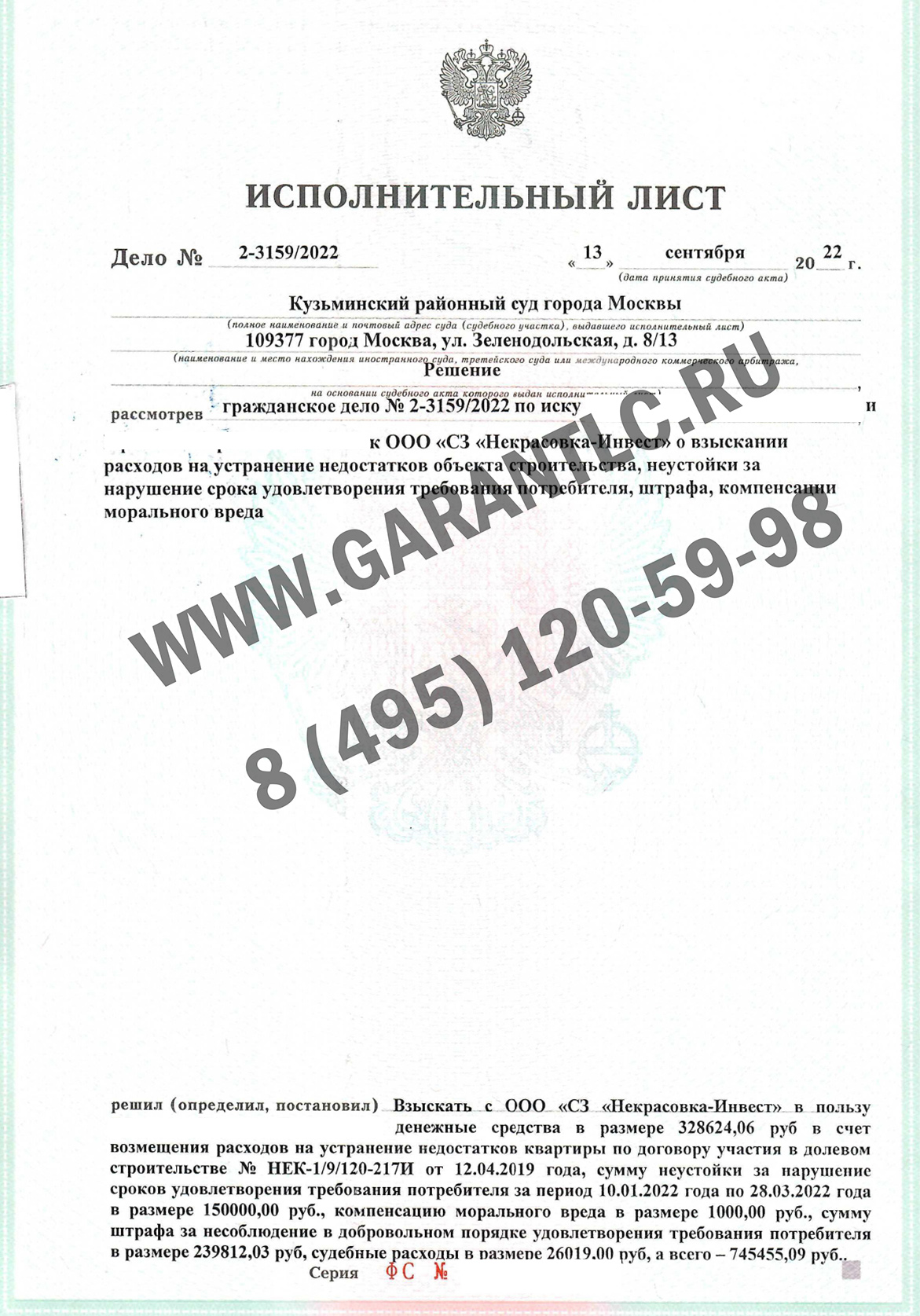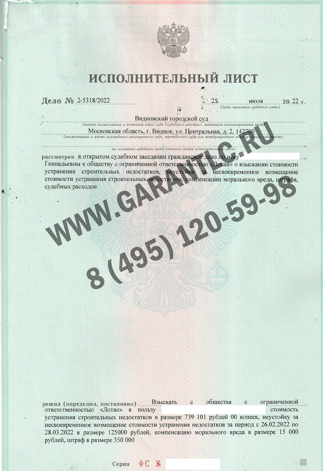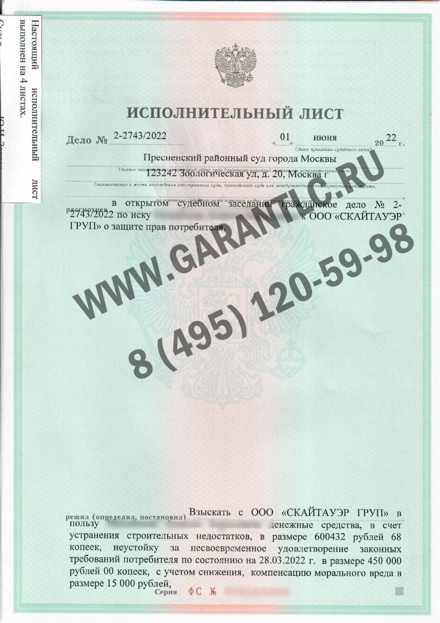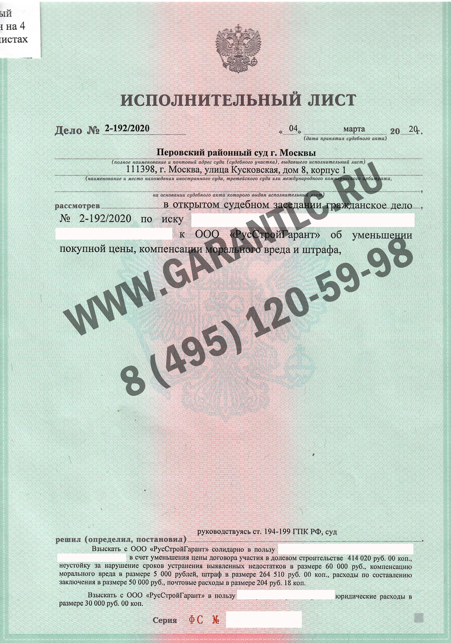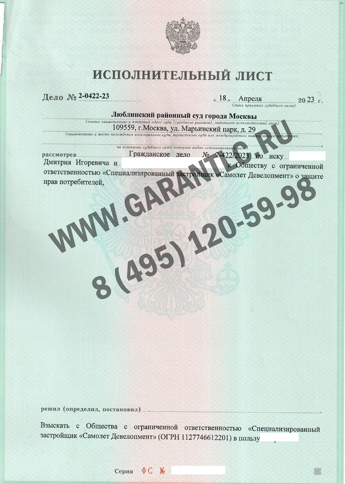 Судебная практика ЮК ГАРАНТ по взысканию компенсации за недостатки в отделке от застройщика (соразмерное уменьшение покупной цены)