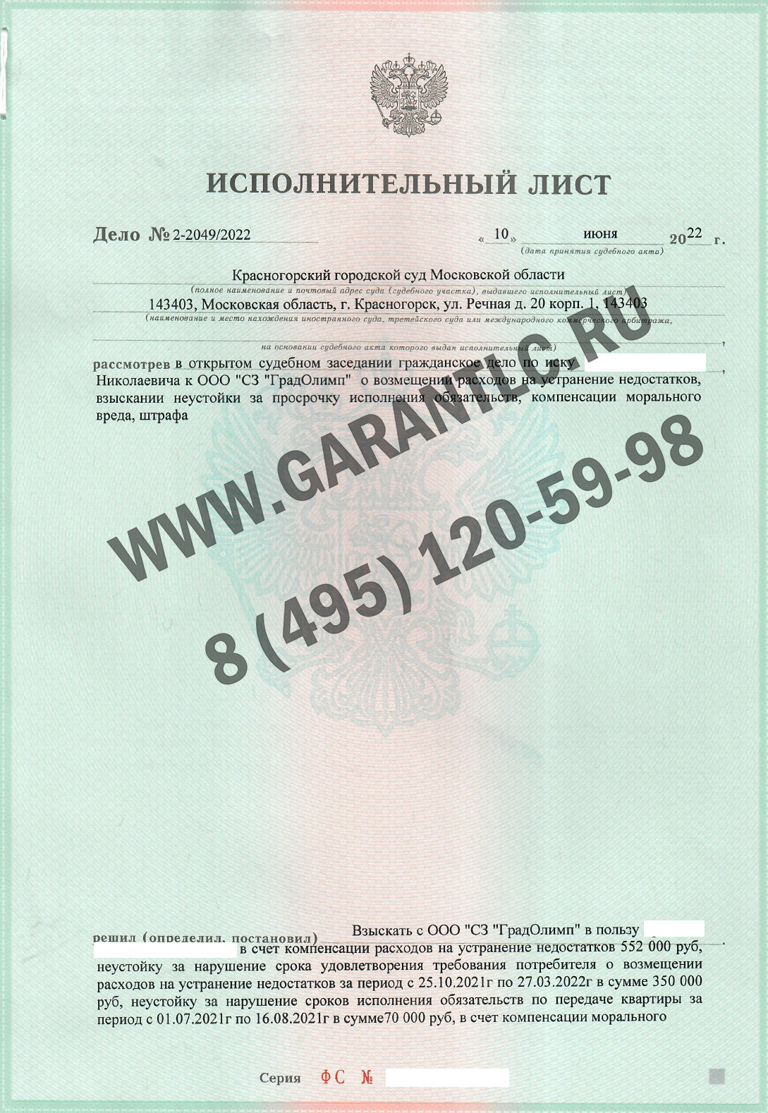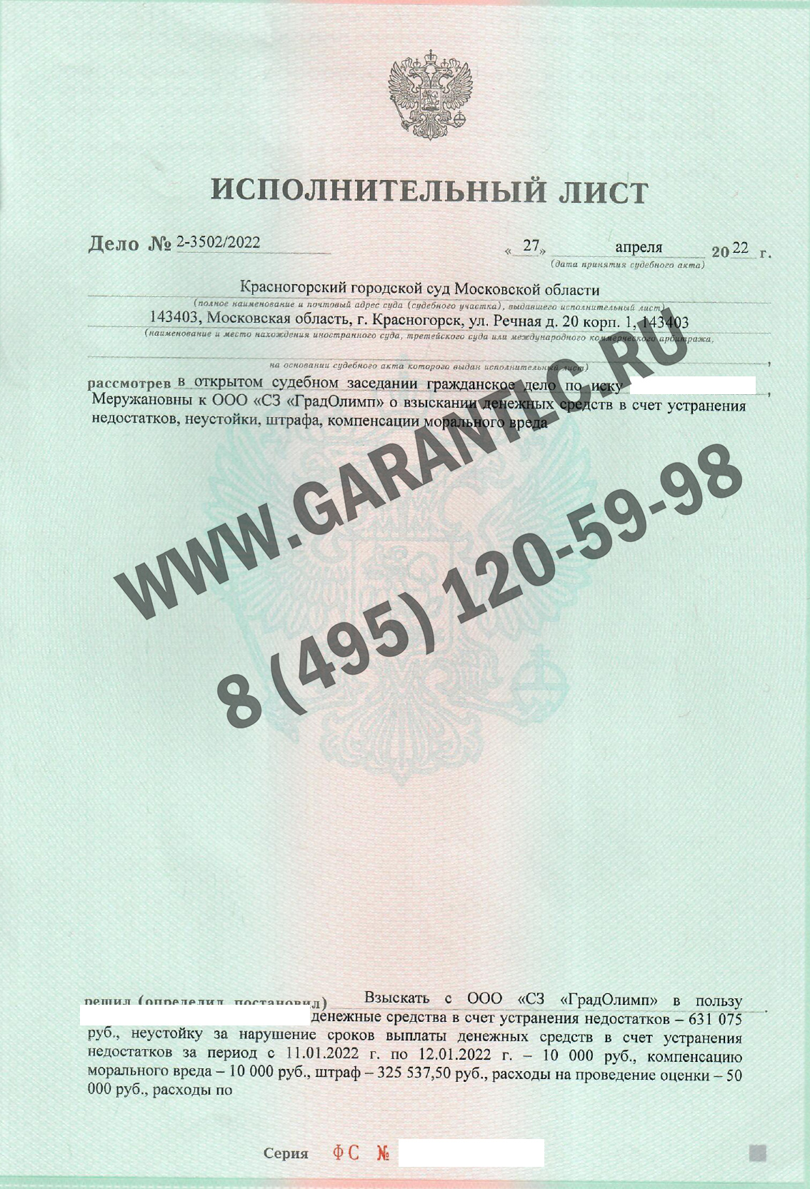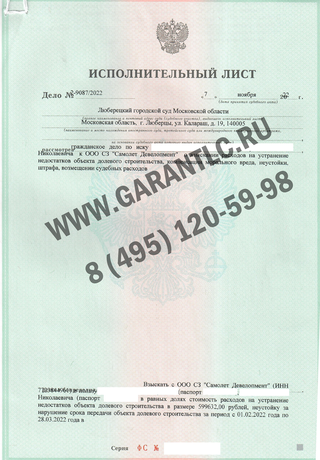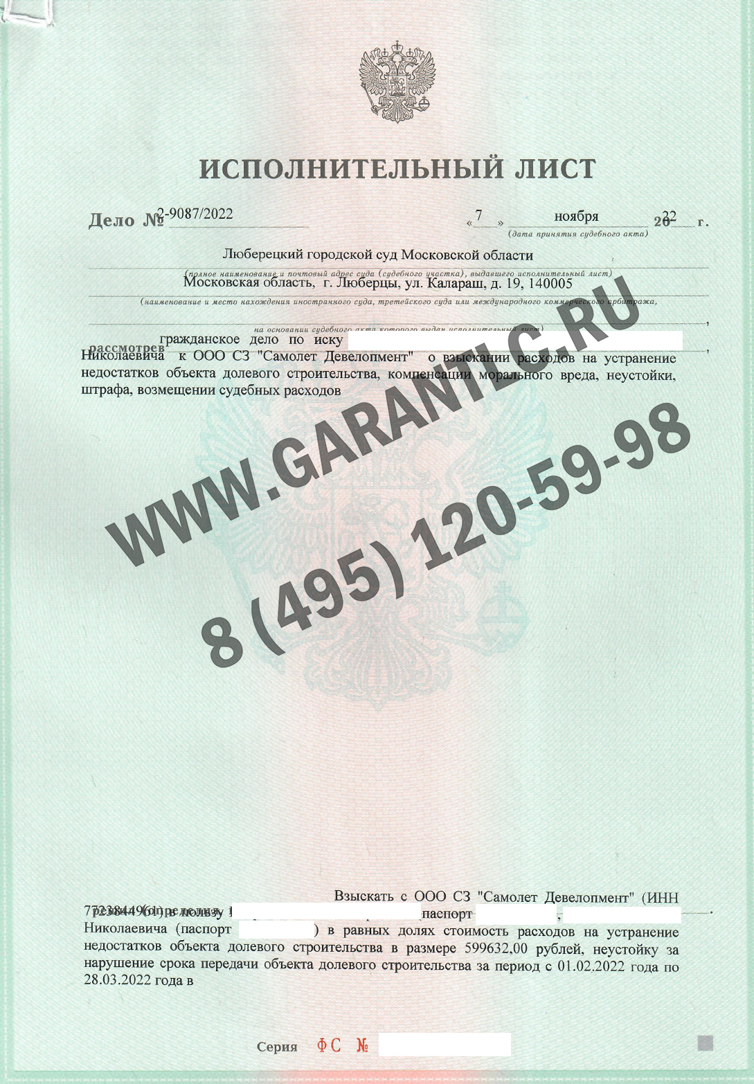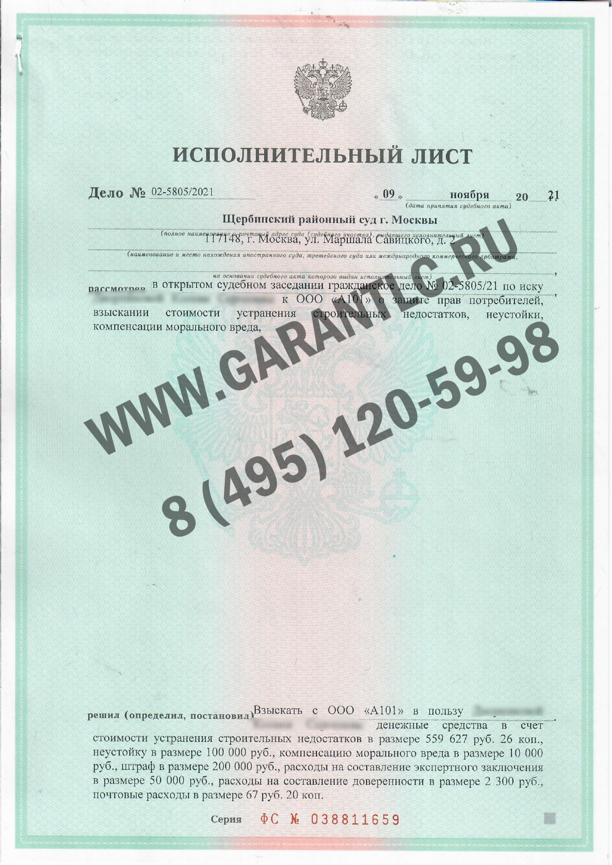 Судебная практика ЮК ГАРАНТ по взысканию компенсации за недостатки в отделке от застройщика (соразмерное уменьшение покупной цены)