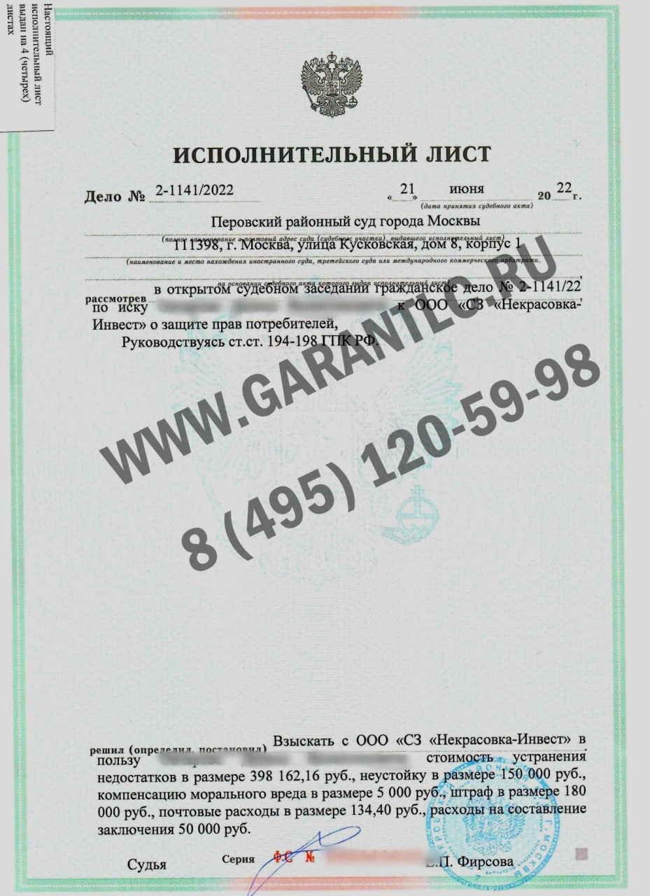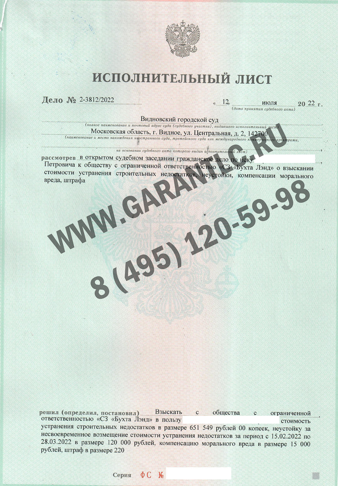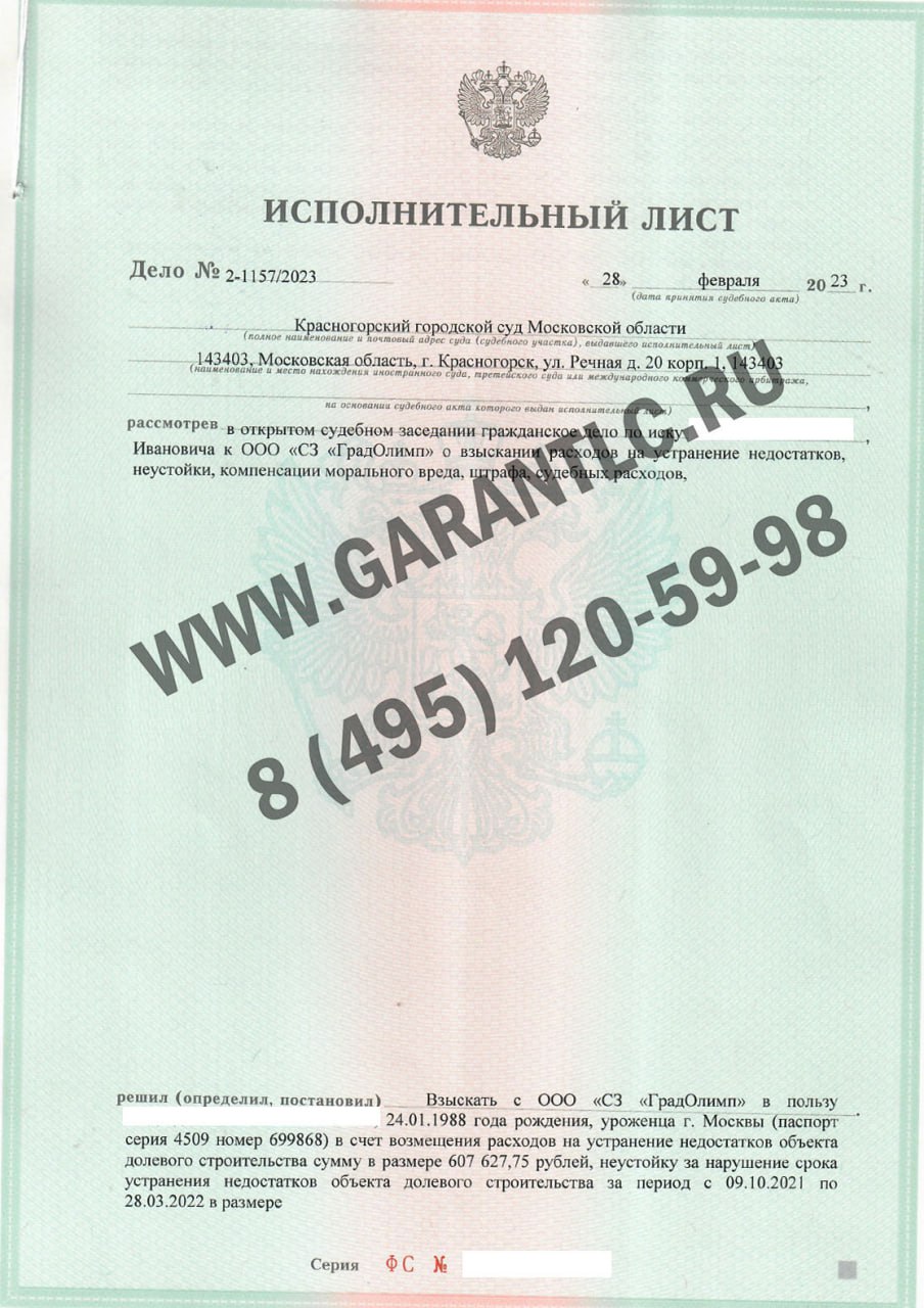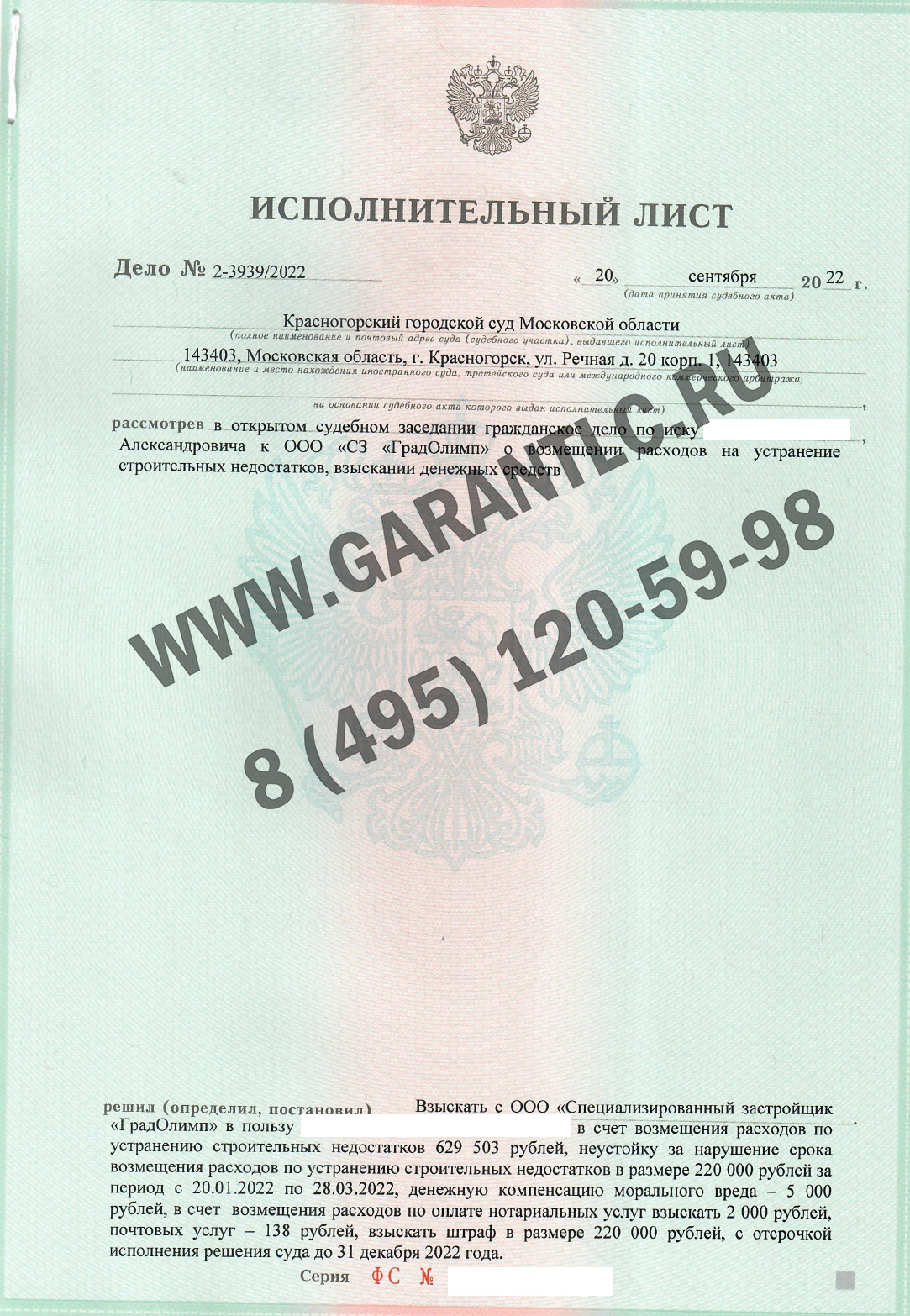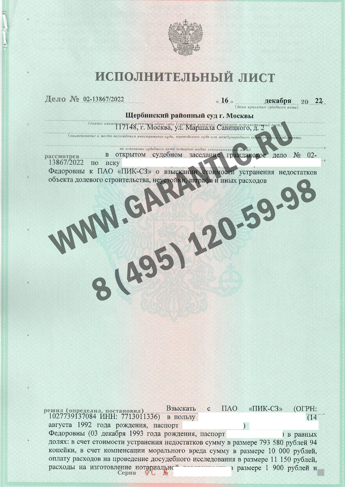 Судебная практика ЮК ГАРАНТ по взысканию компенсации за недостатки в отделке от застройщика (соразмерное уменьшение покупной цены)