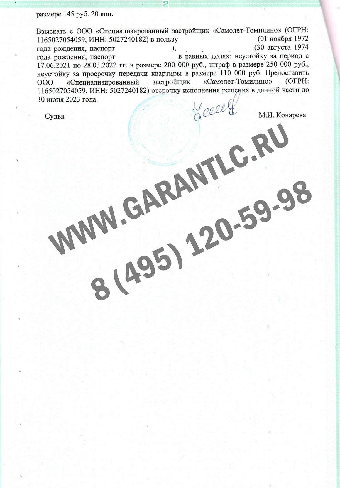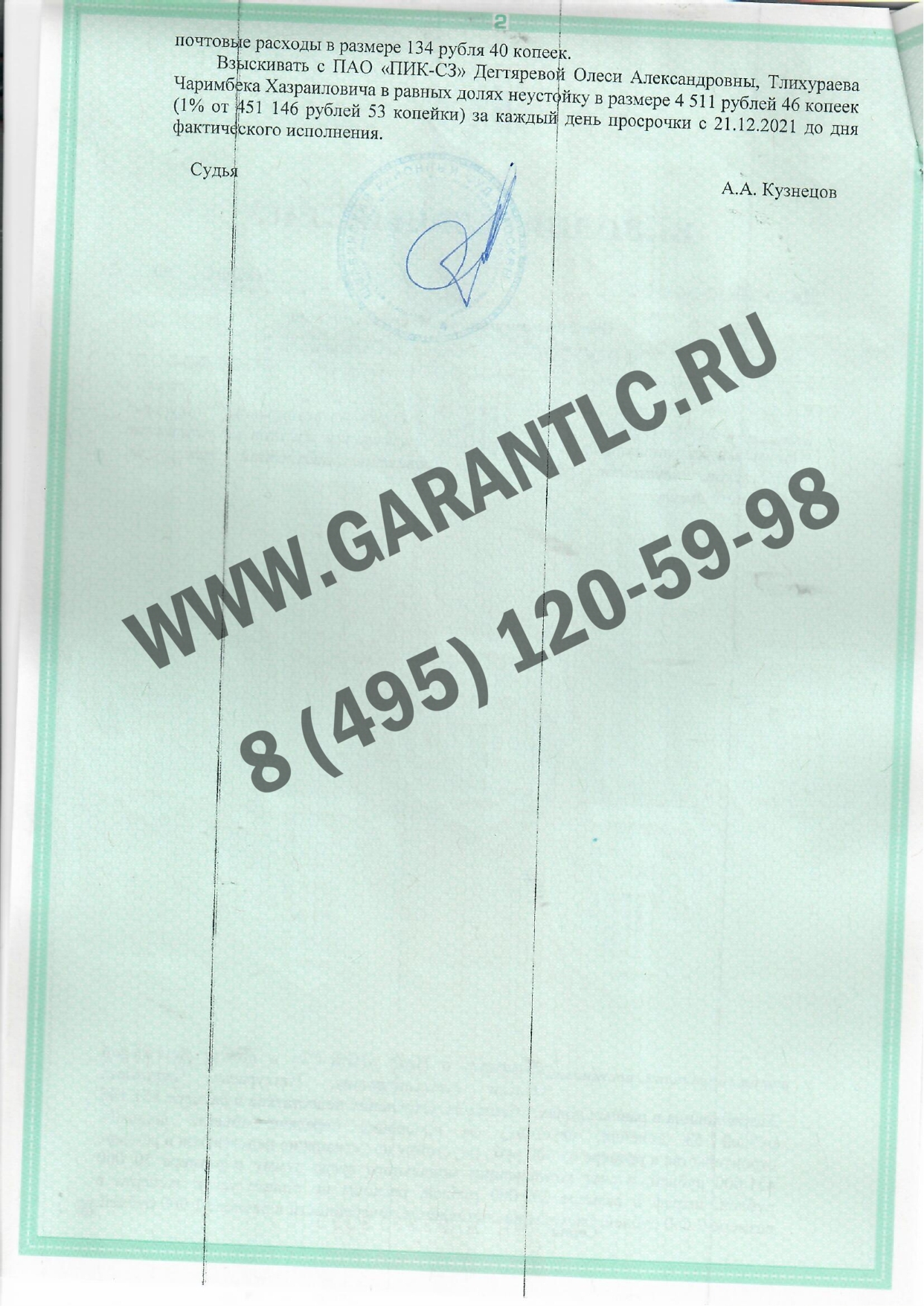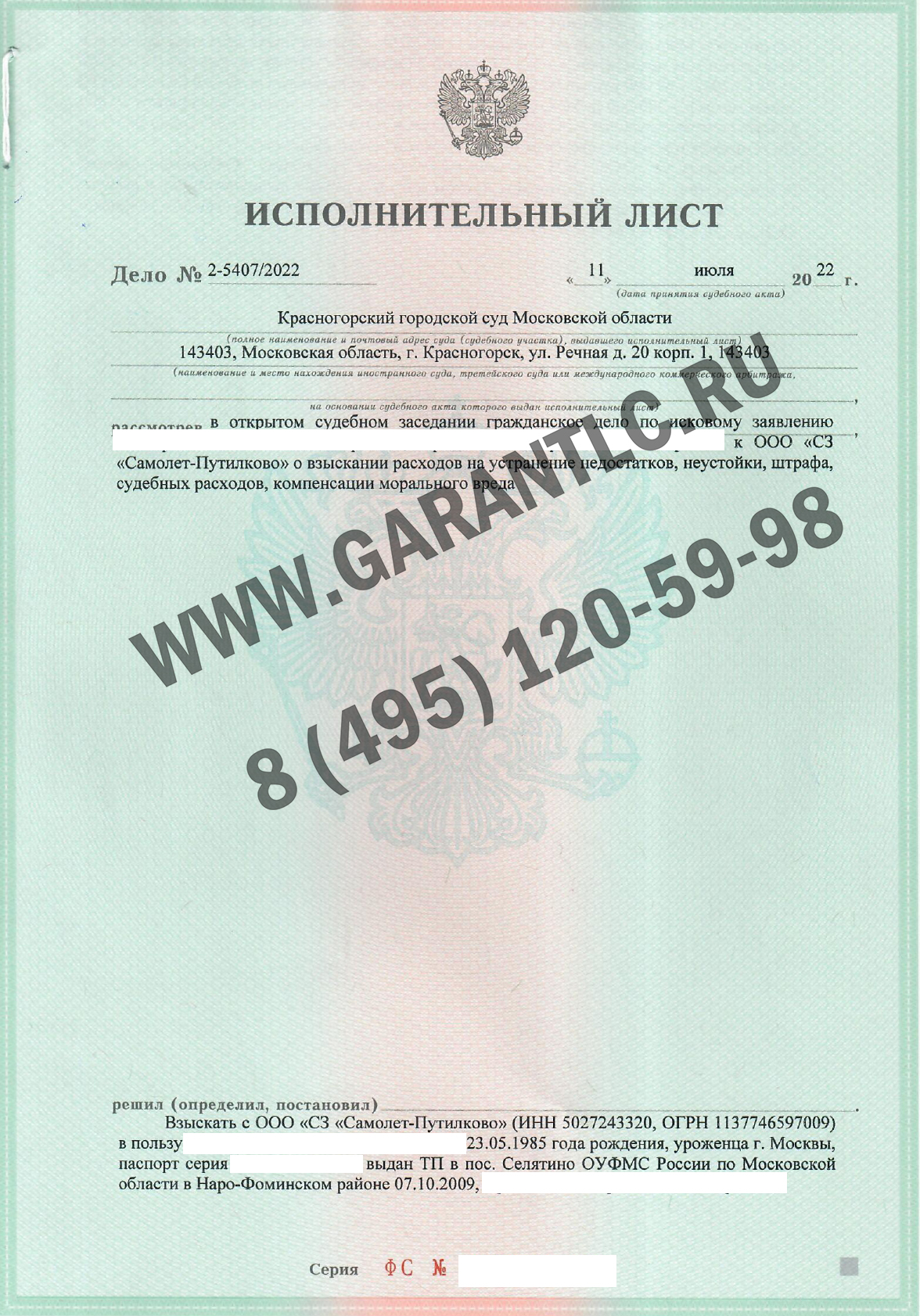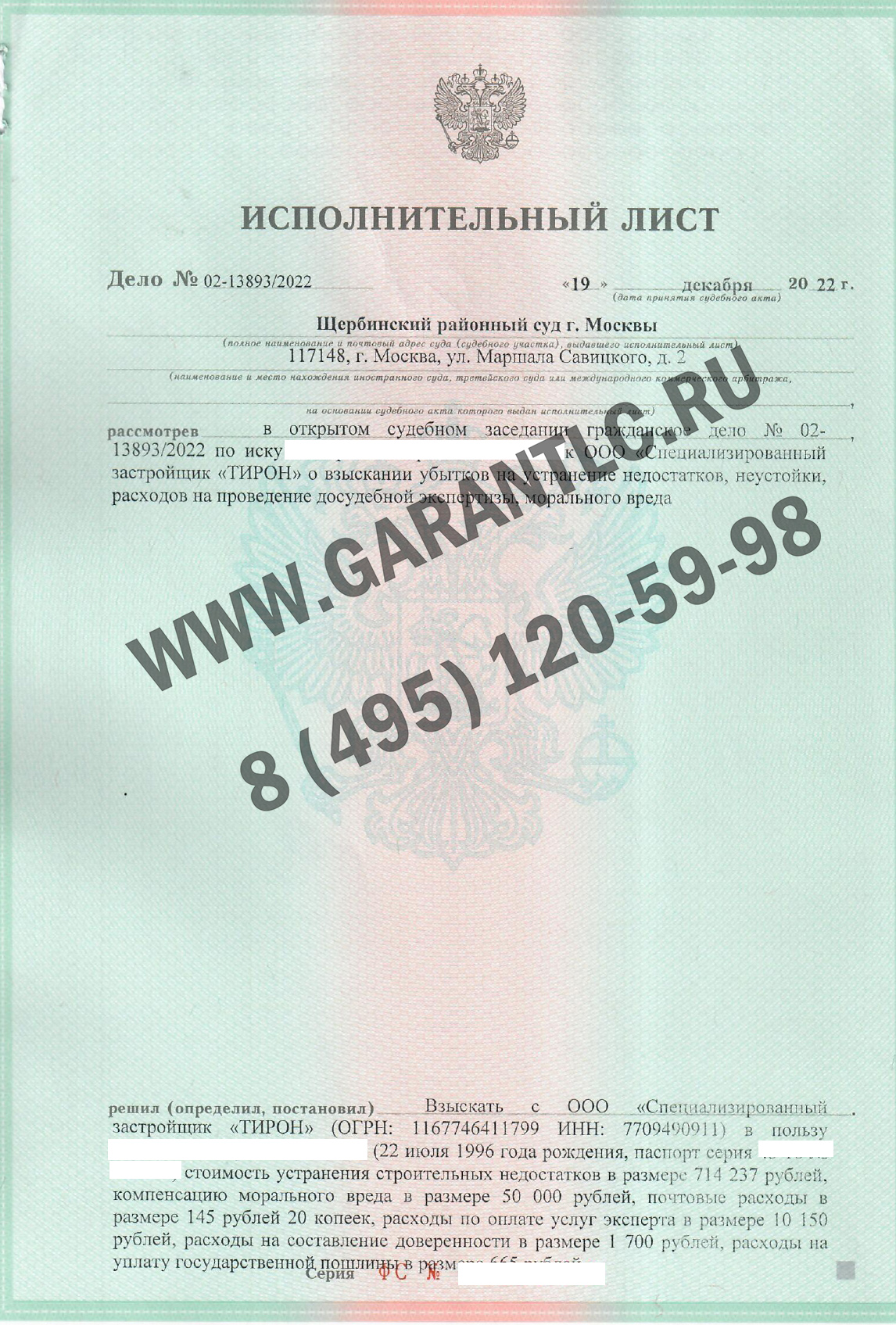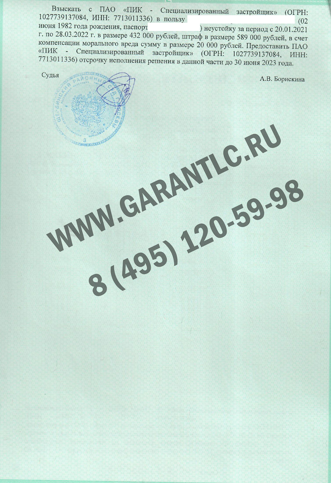 Судебная практика ЮК ГАРАНТ по взысканию компенсации за недостатки в отделке от застройщика (соразмерное уменьшение покупной цены)
