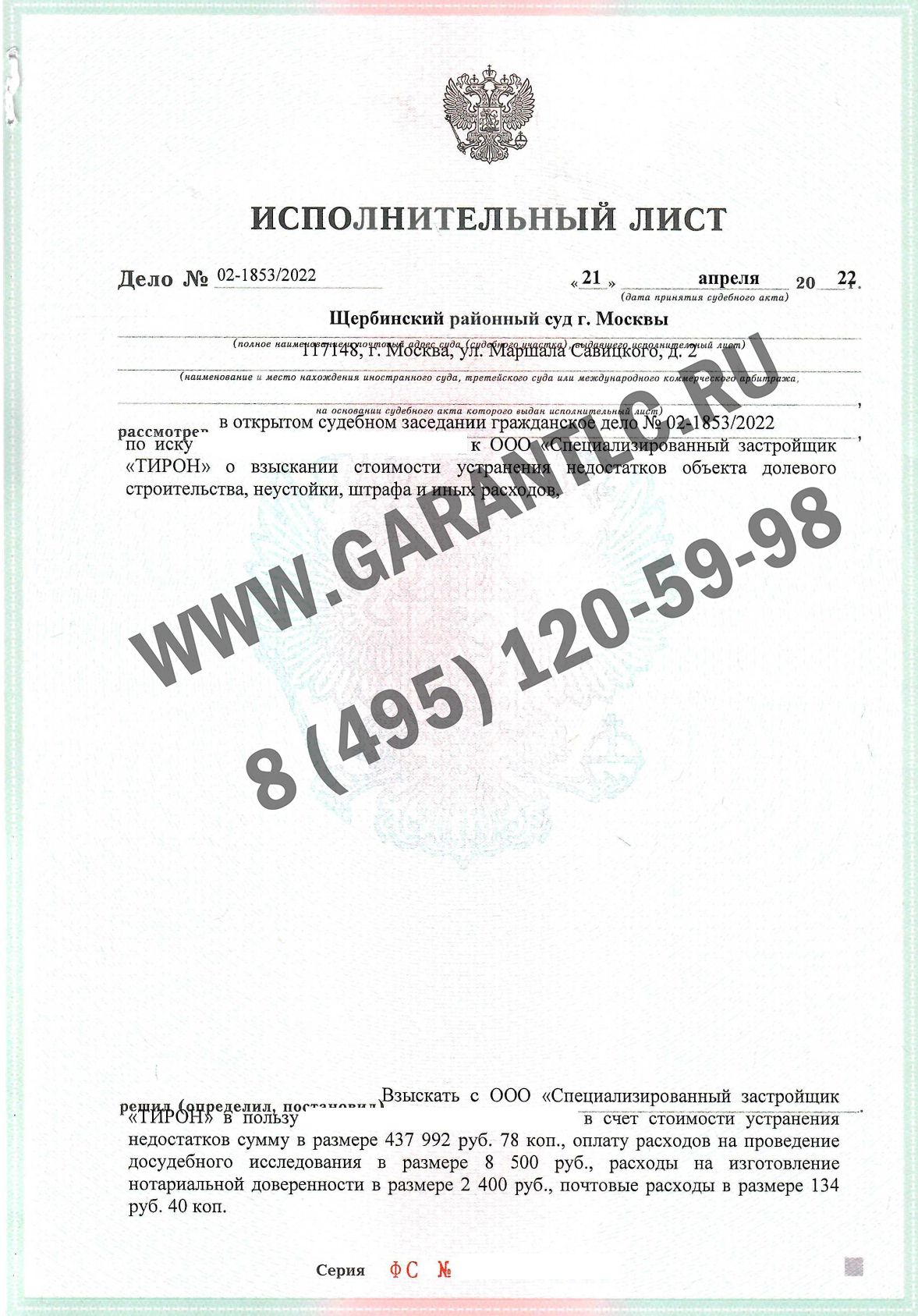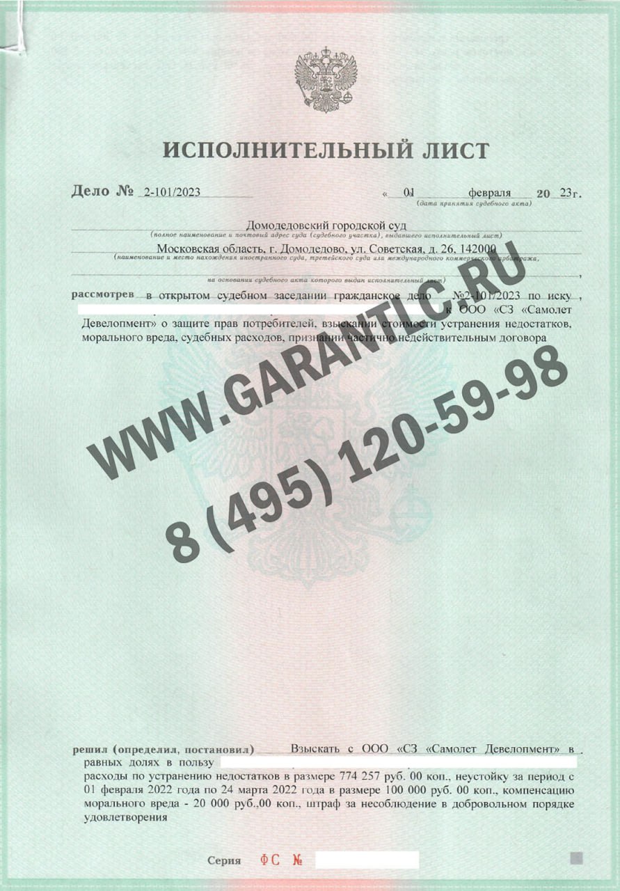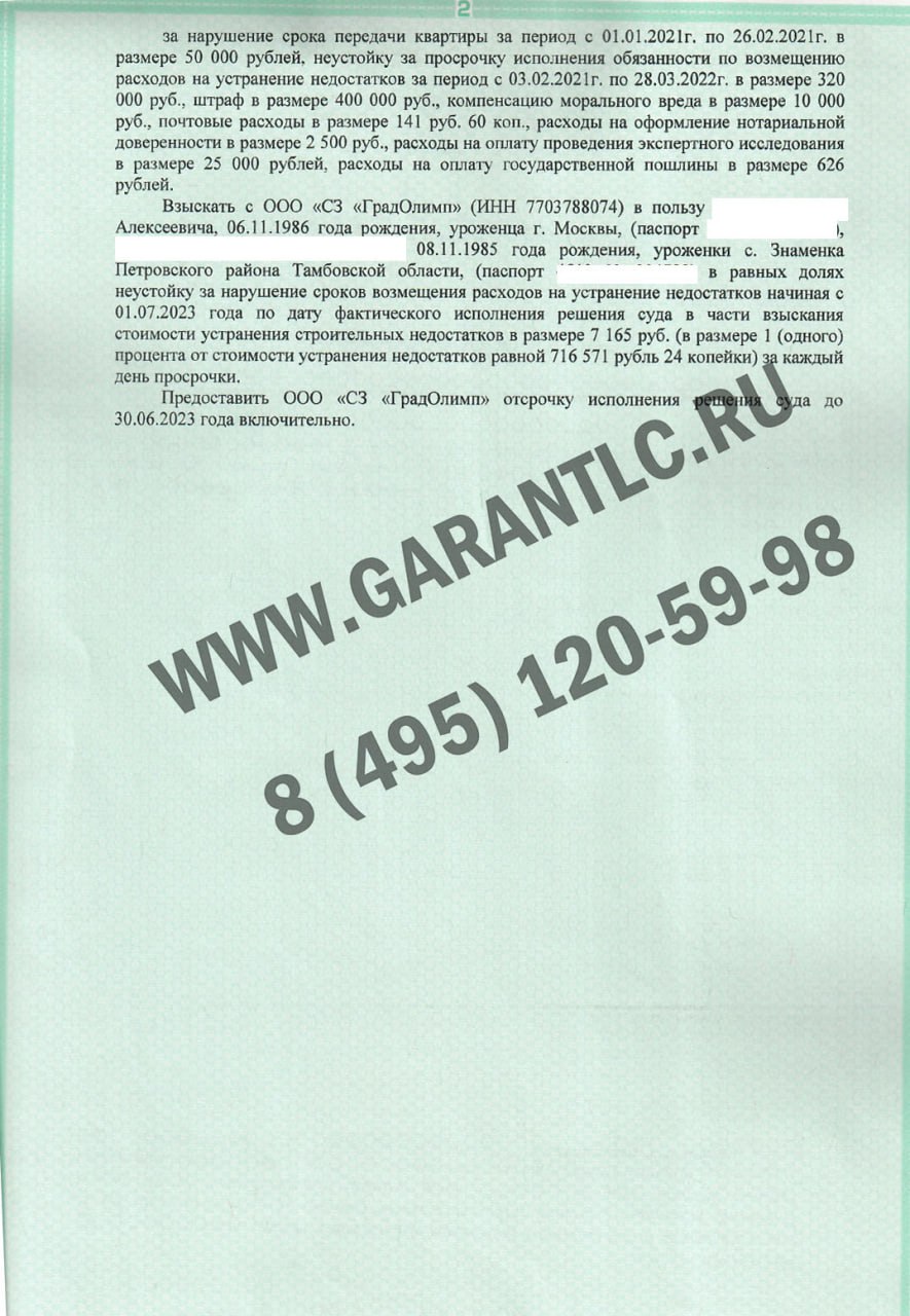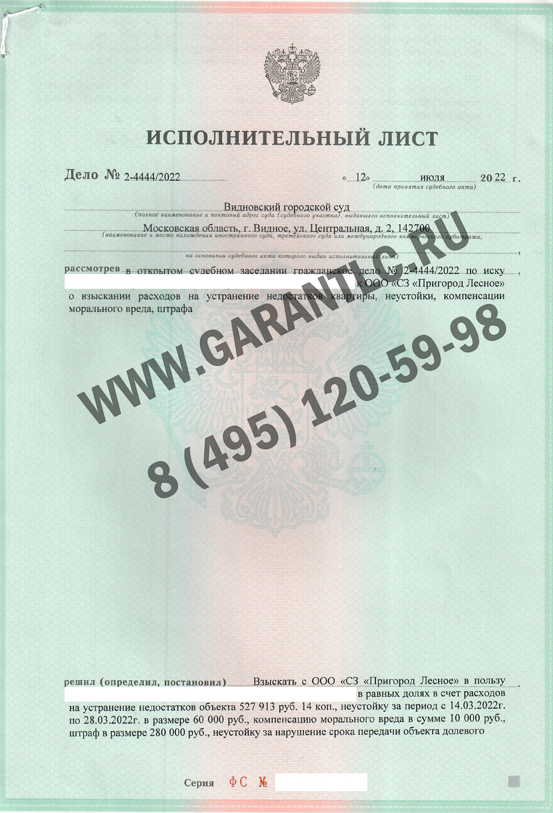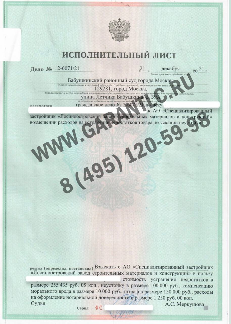 Судебная практика ЮК ГАРАНТ по взысканию компенсации за недостатки в отделке от застройщика (соразмерное уменьшение покупной цены)