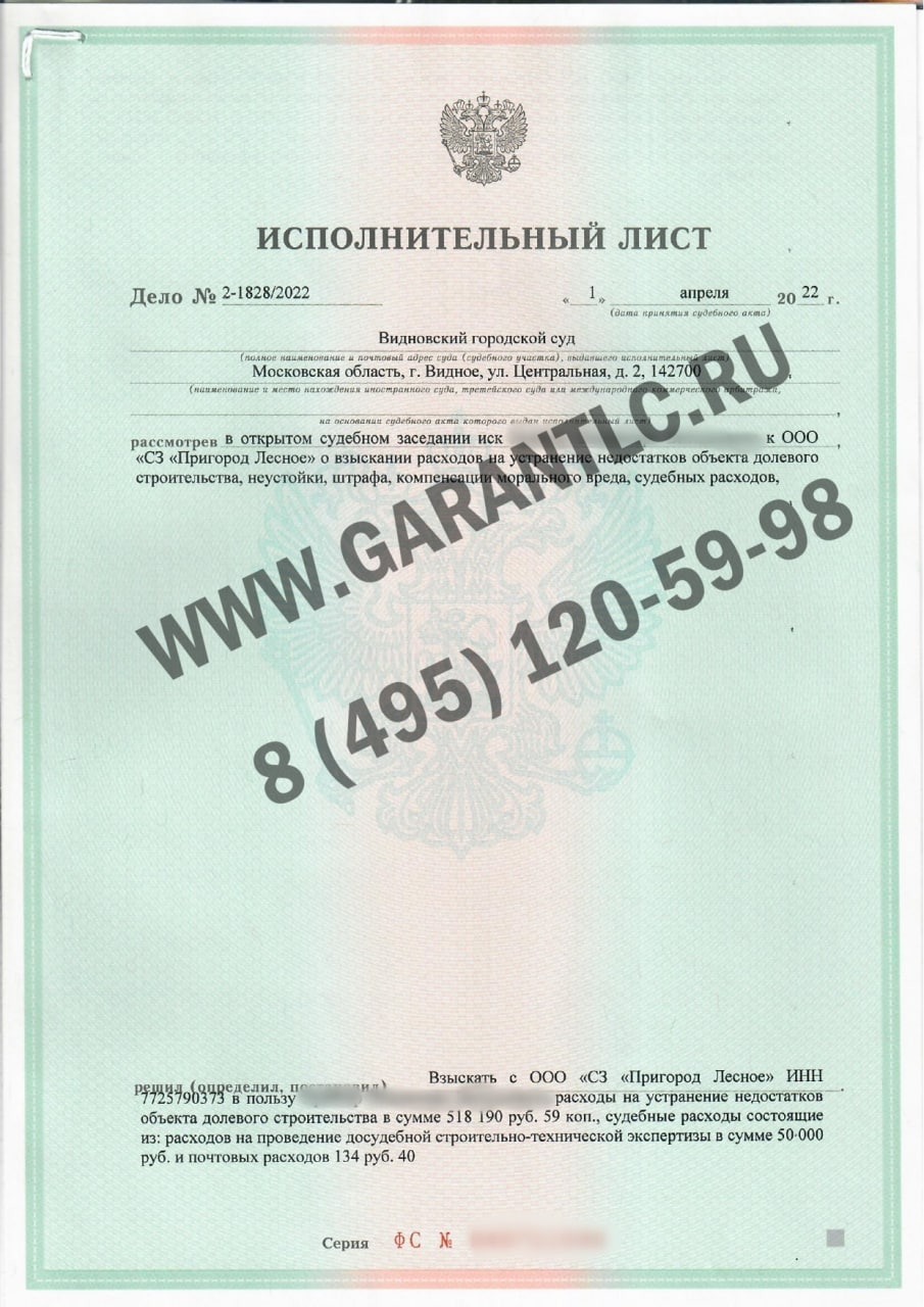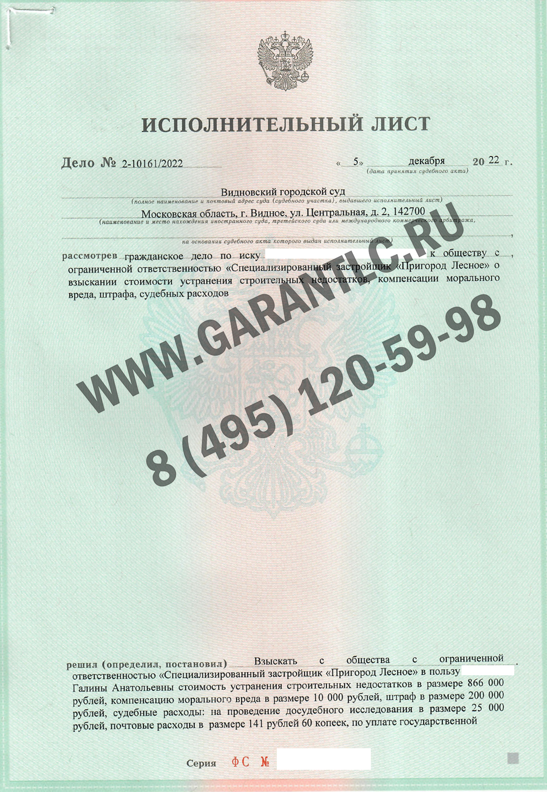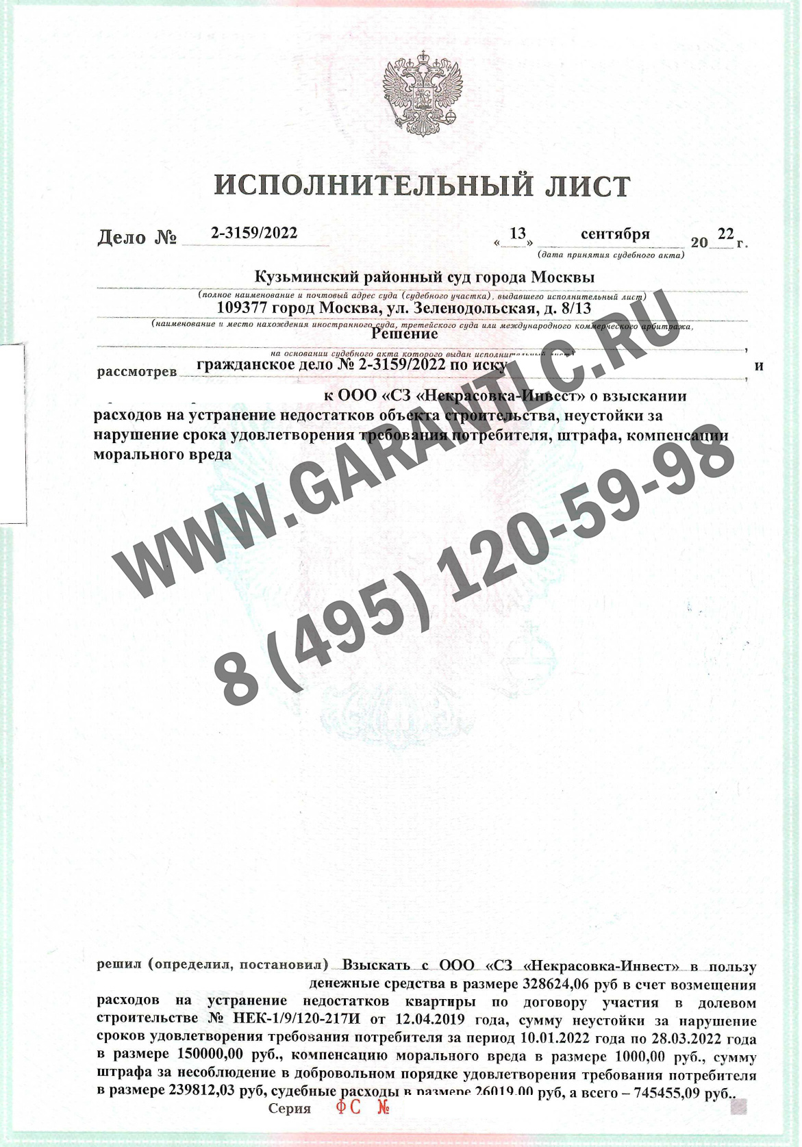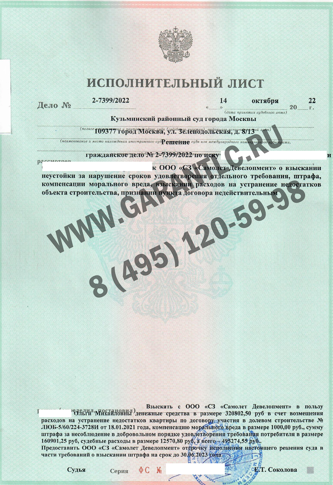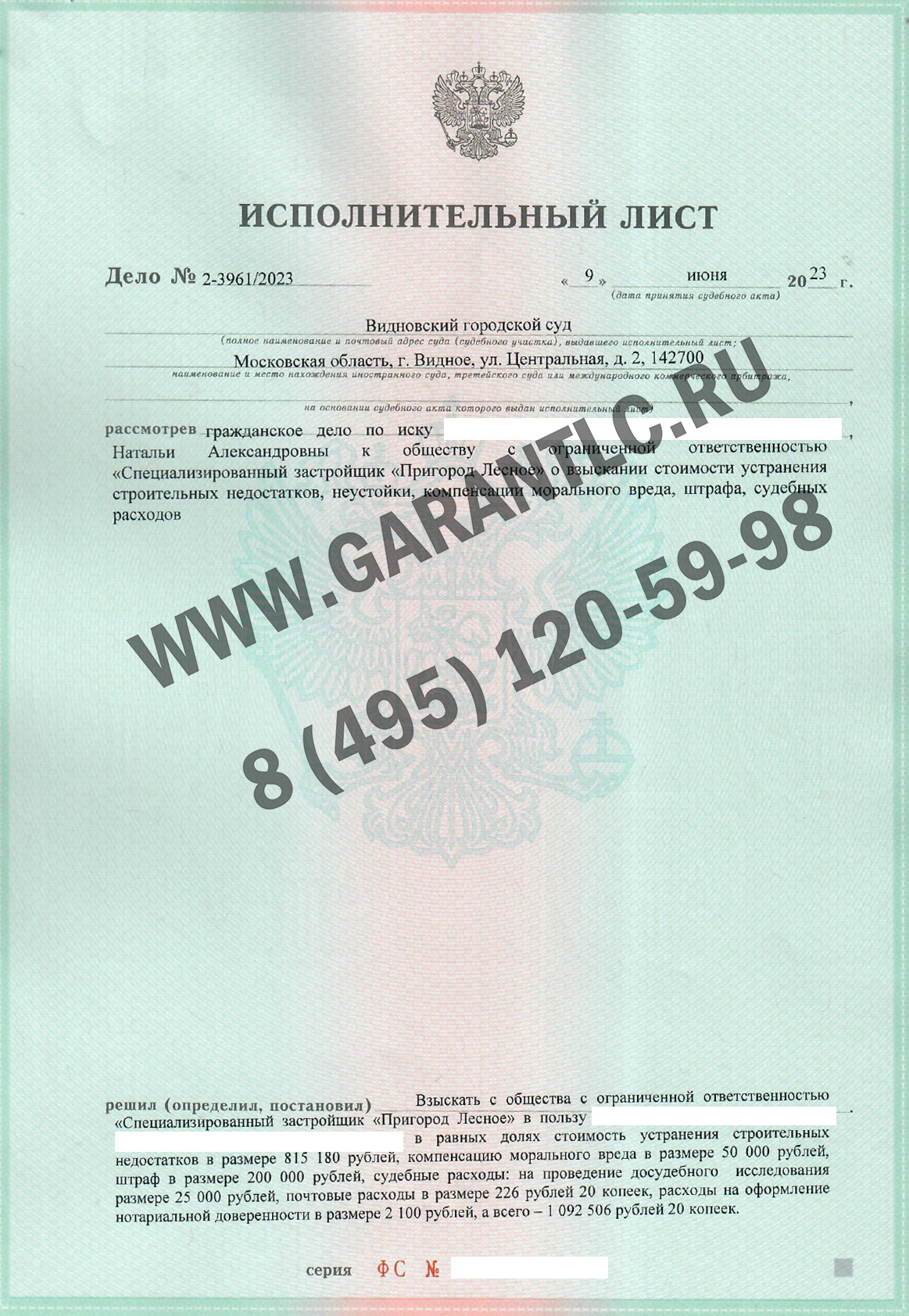 Судебная практика ЮК ГАРАНТ по взысканию компенсации за недостатки в отделке от застройщика (соразмерное уменьшение покупной цены)