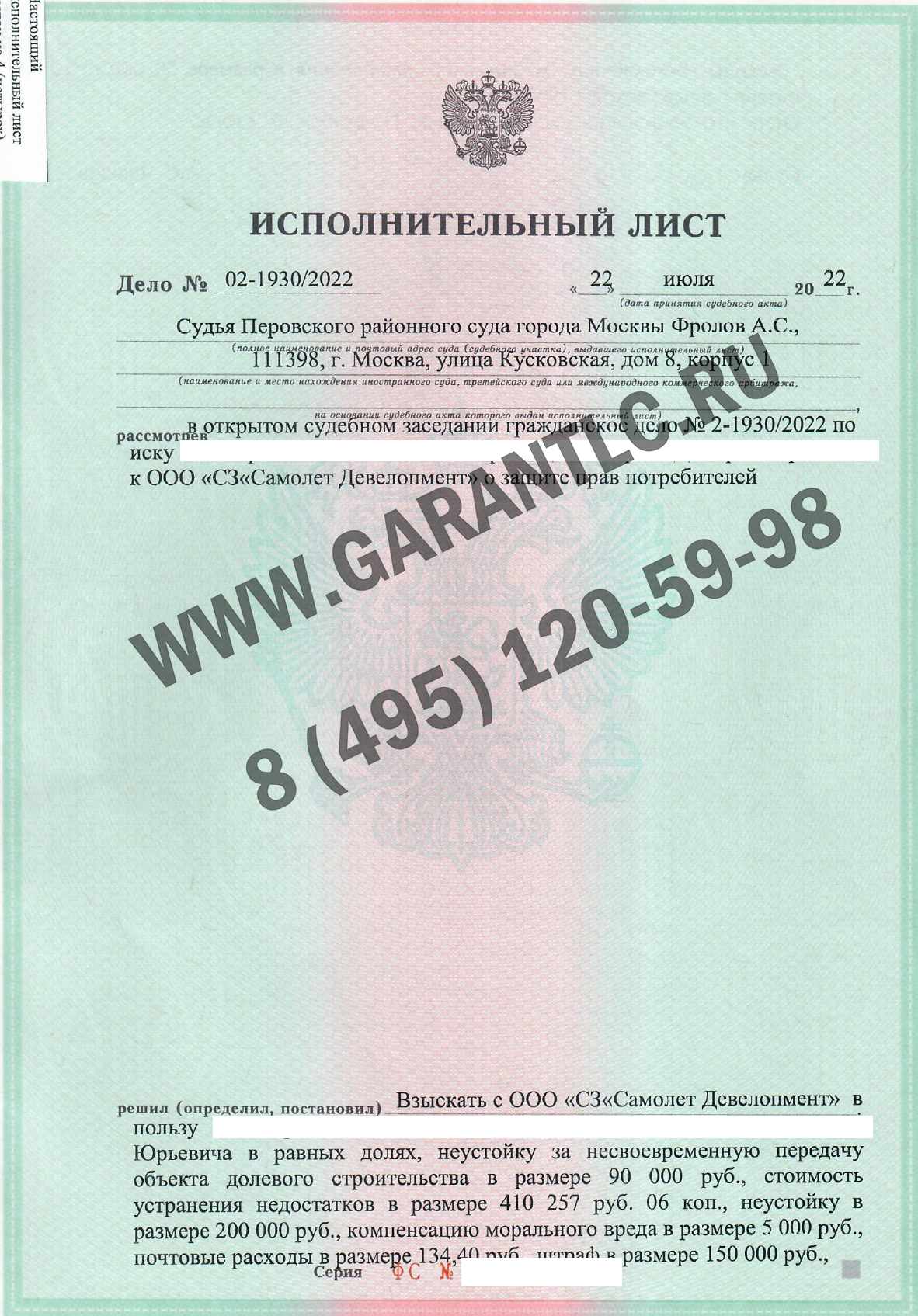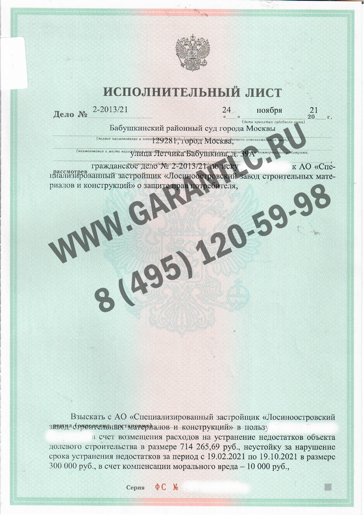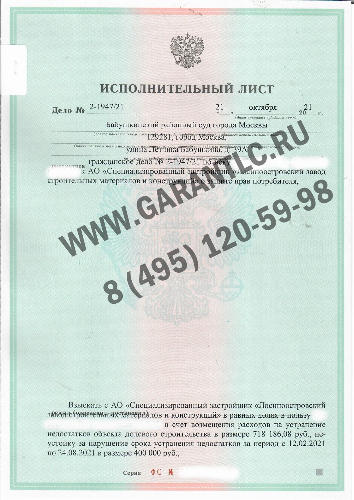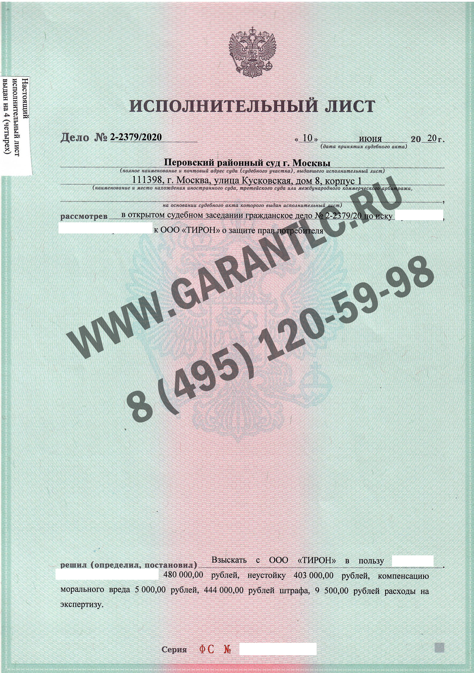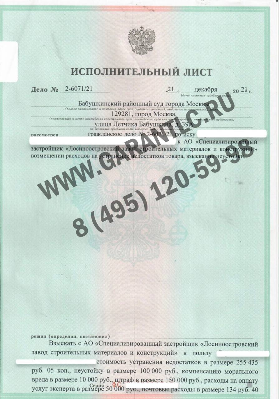 Судебная практика ЮК ГАРАНТ по взысканию компенсации за недостатки в отделке от застройщика (соразмерное уменьшение покупной цены)