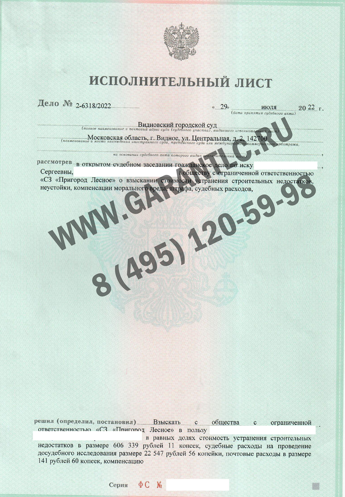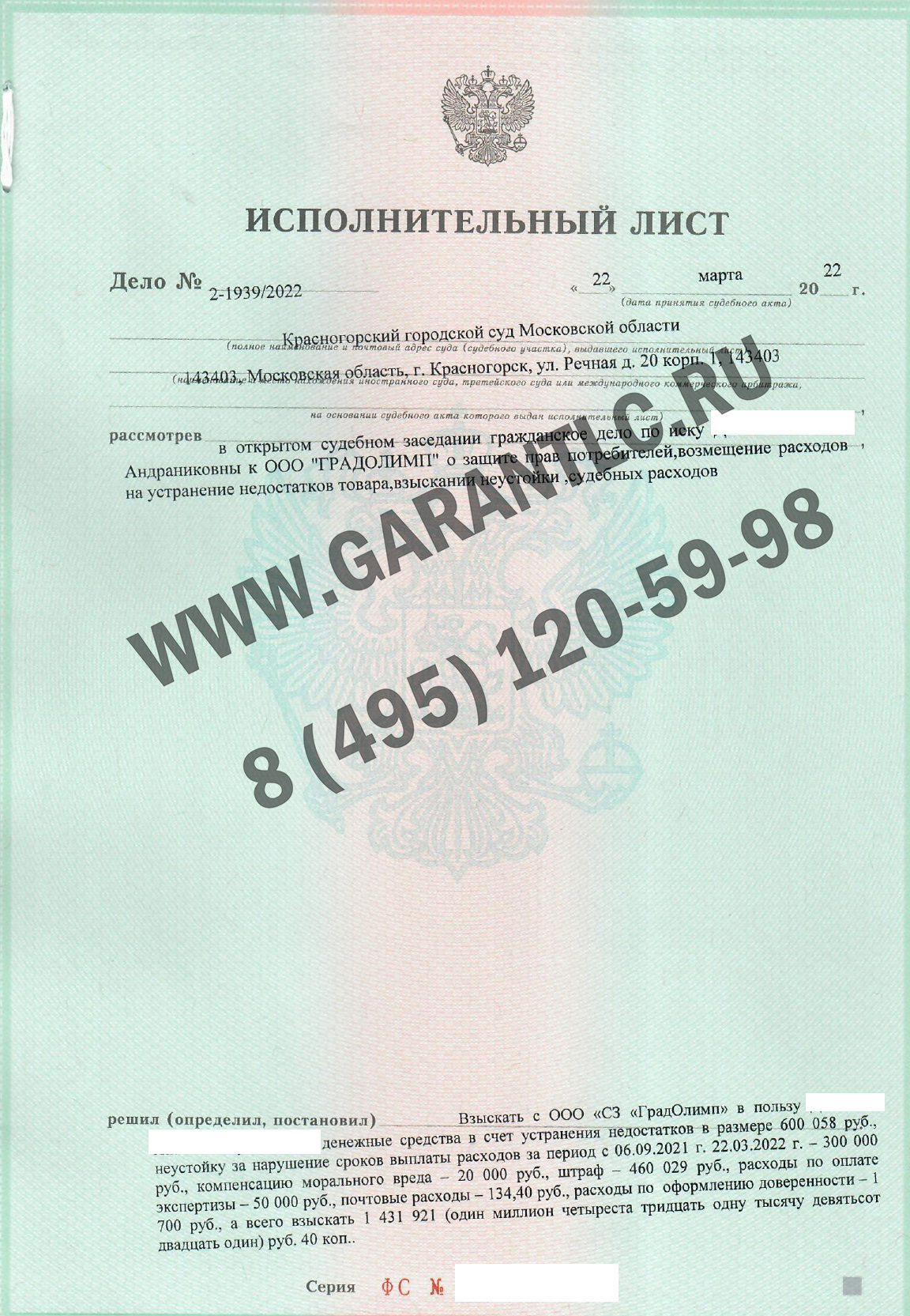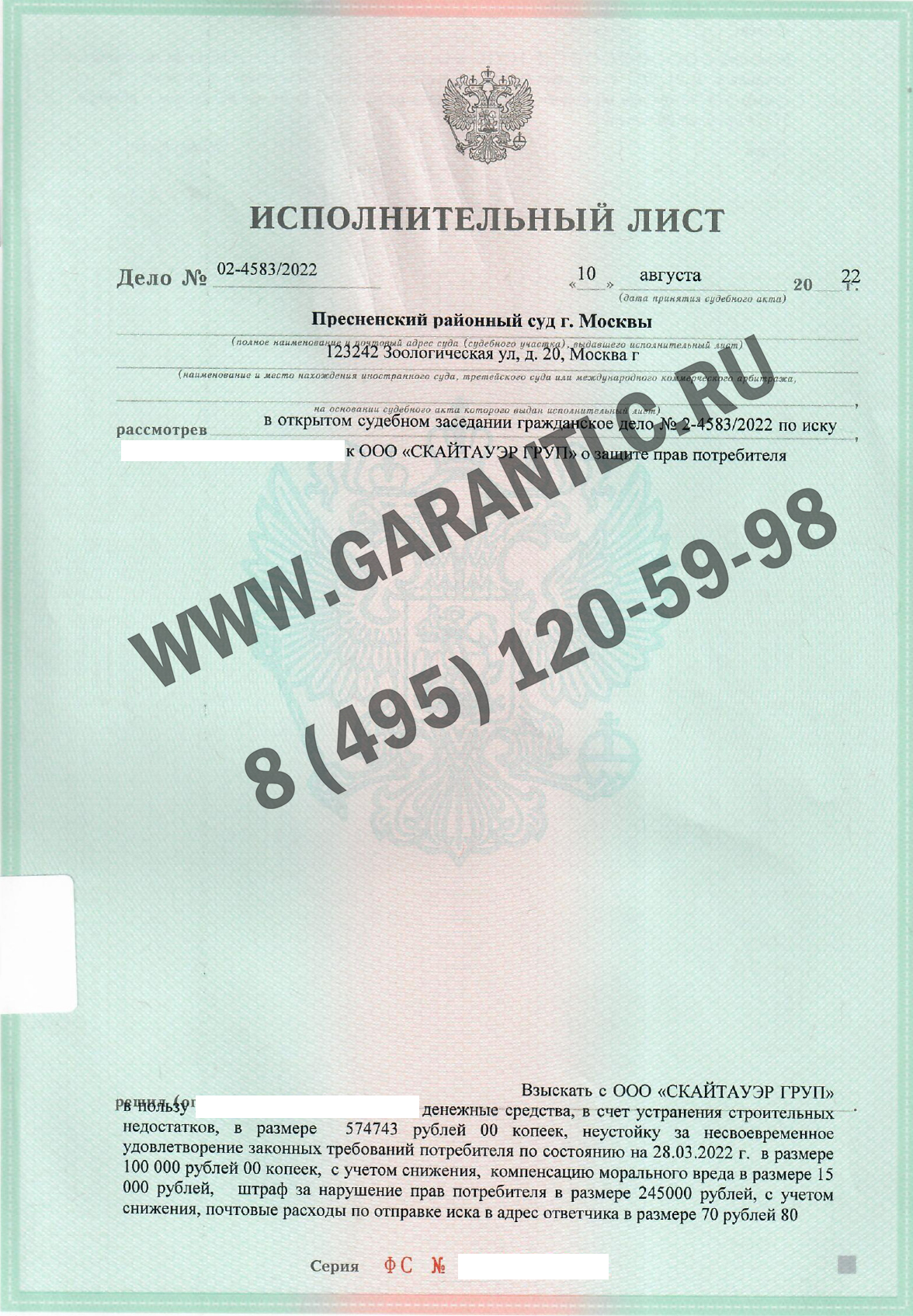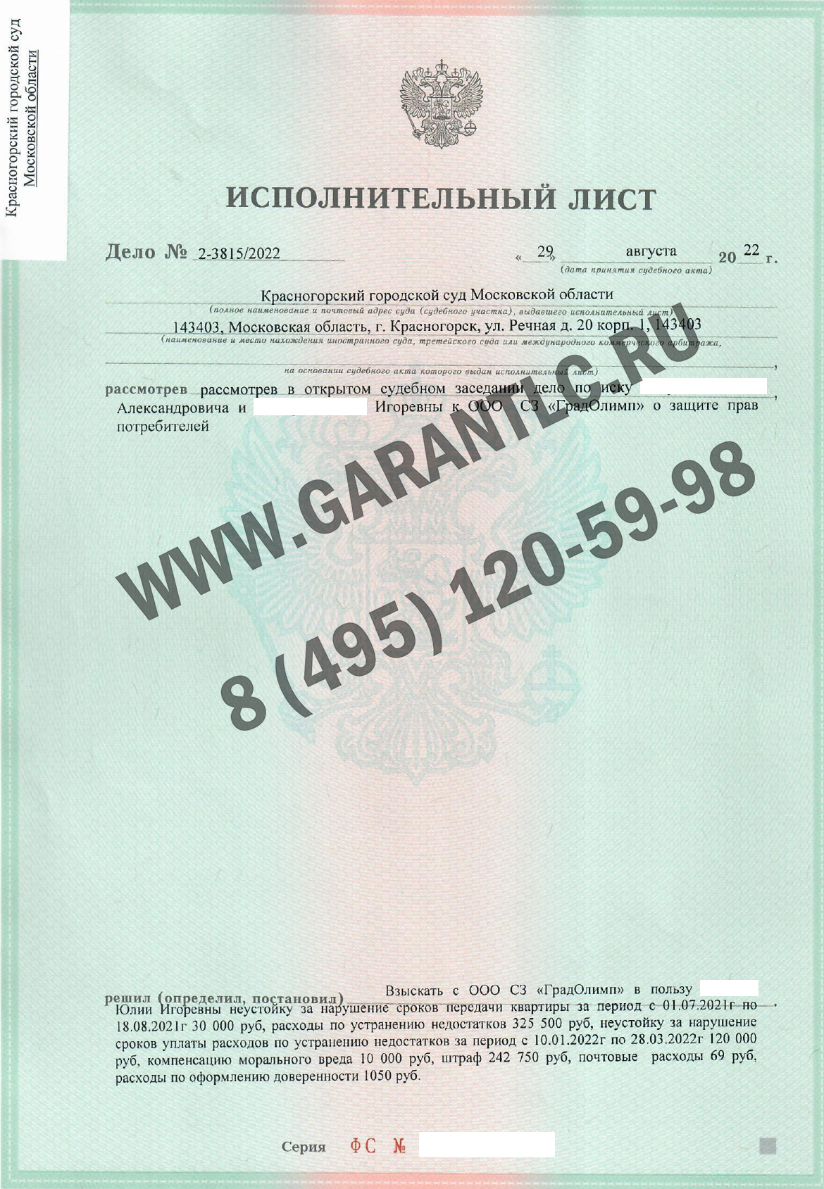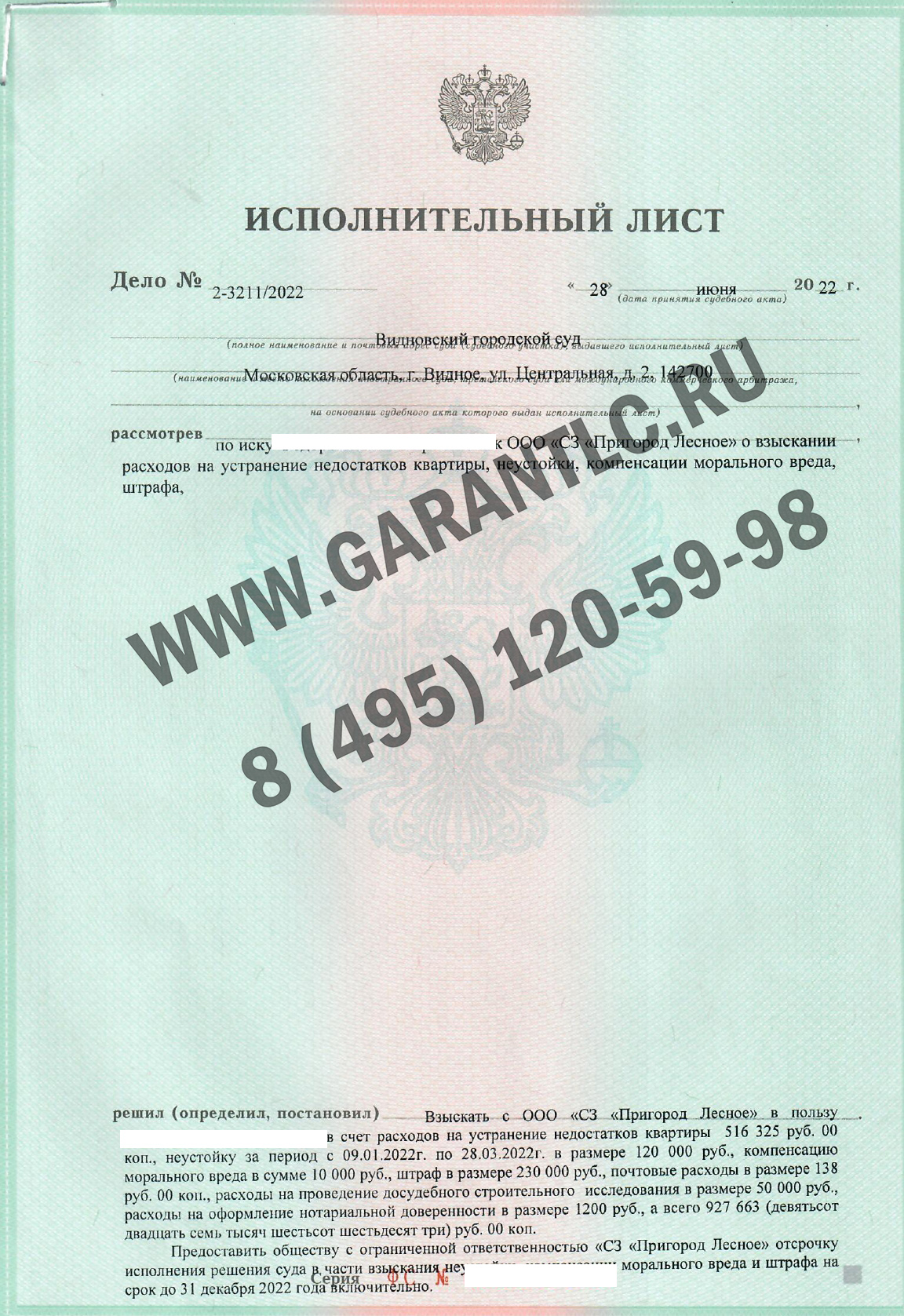 Судебная практика ЮК ГАРАНТ по взысканию компенсации за недостатки в отделке от застройщика (соразмерное уменьшение покупной цены)