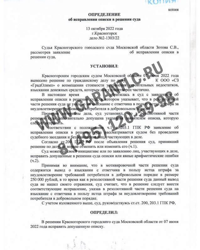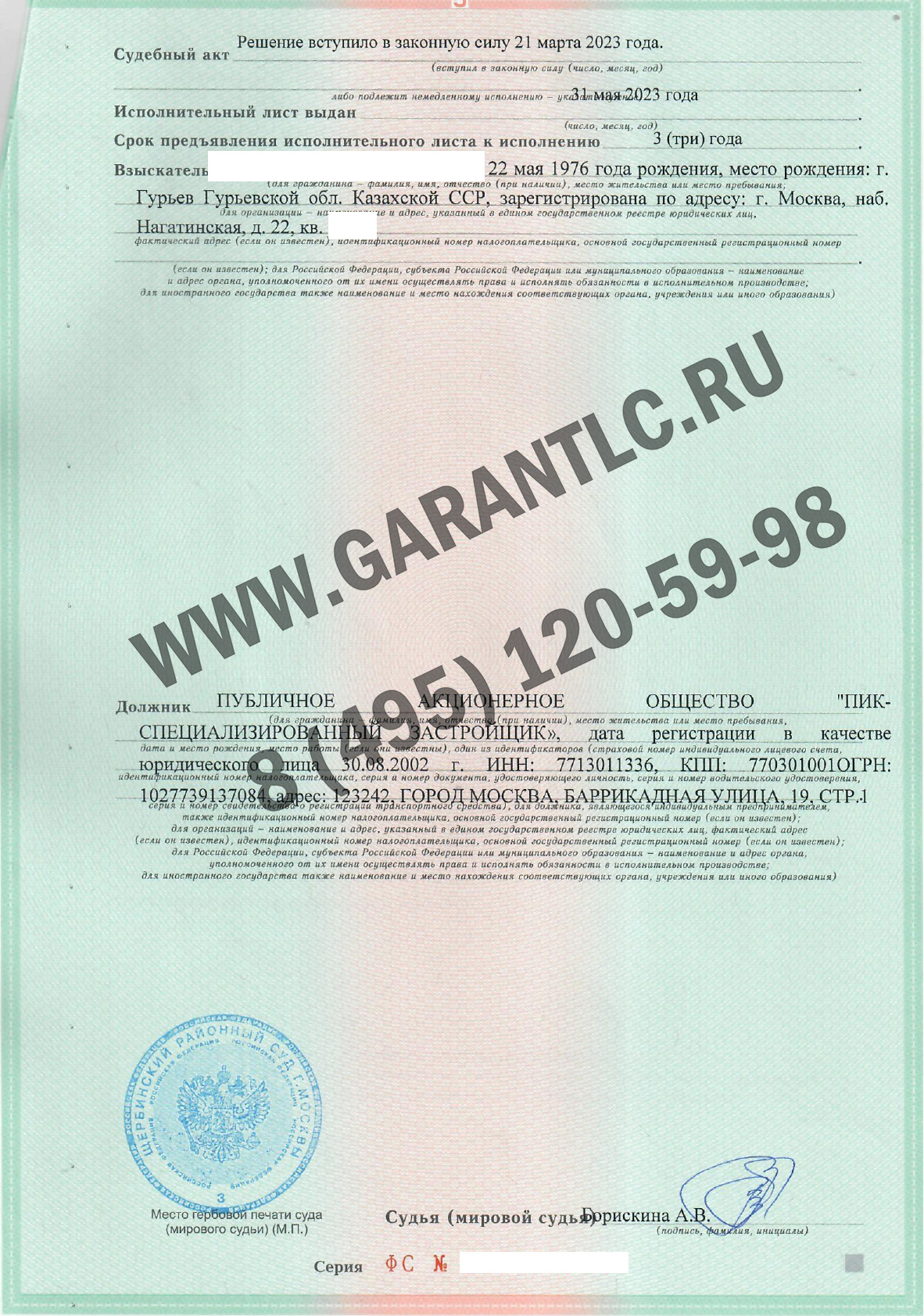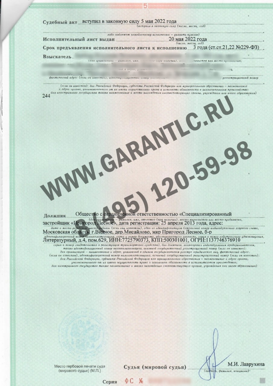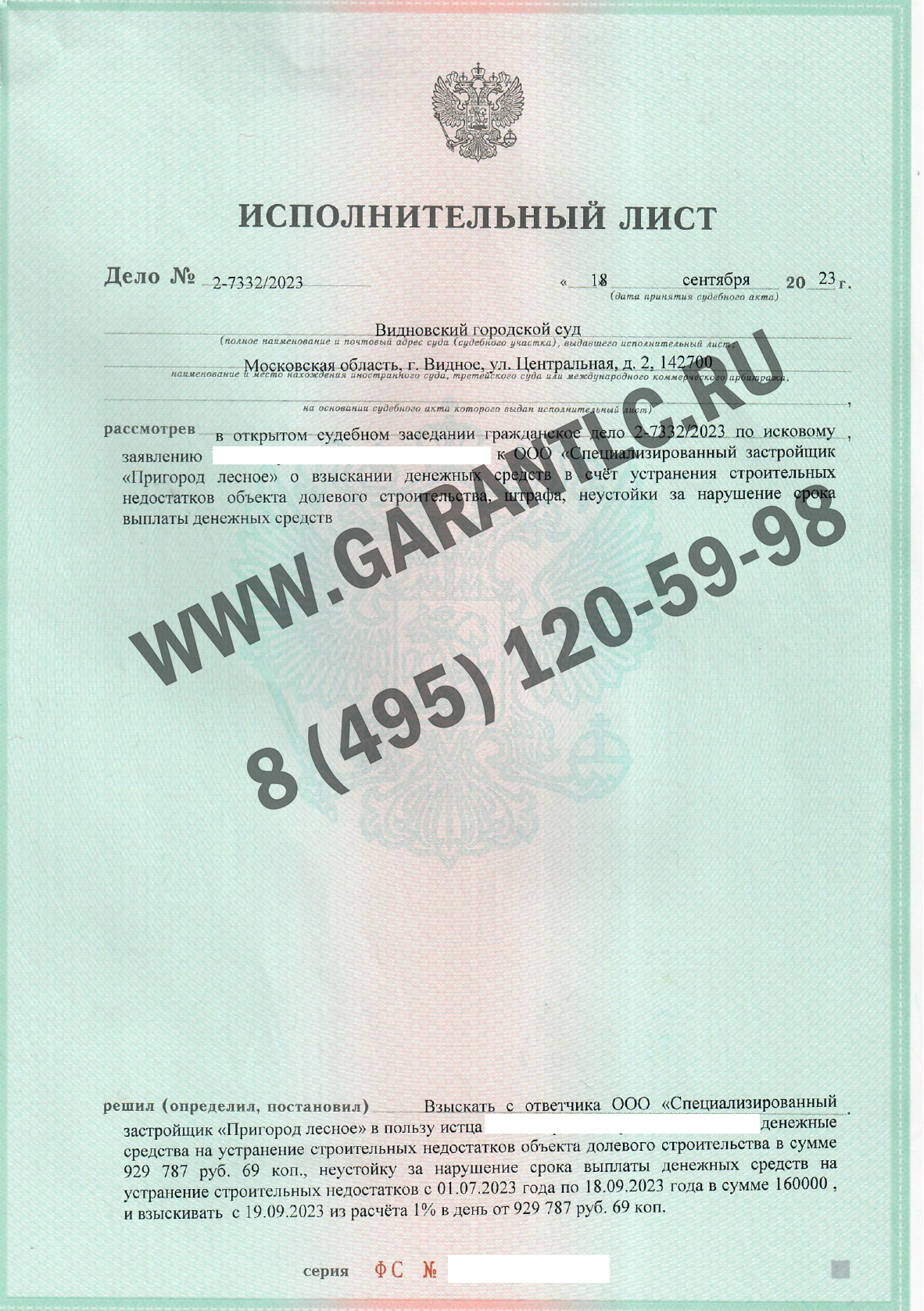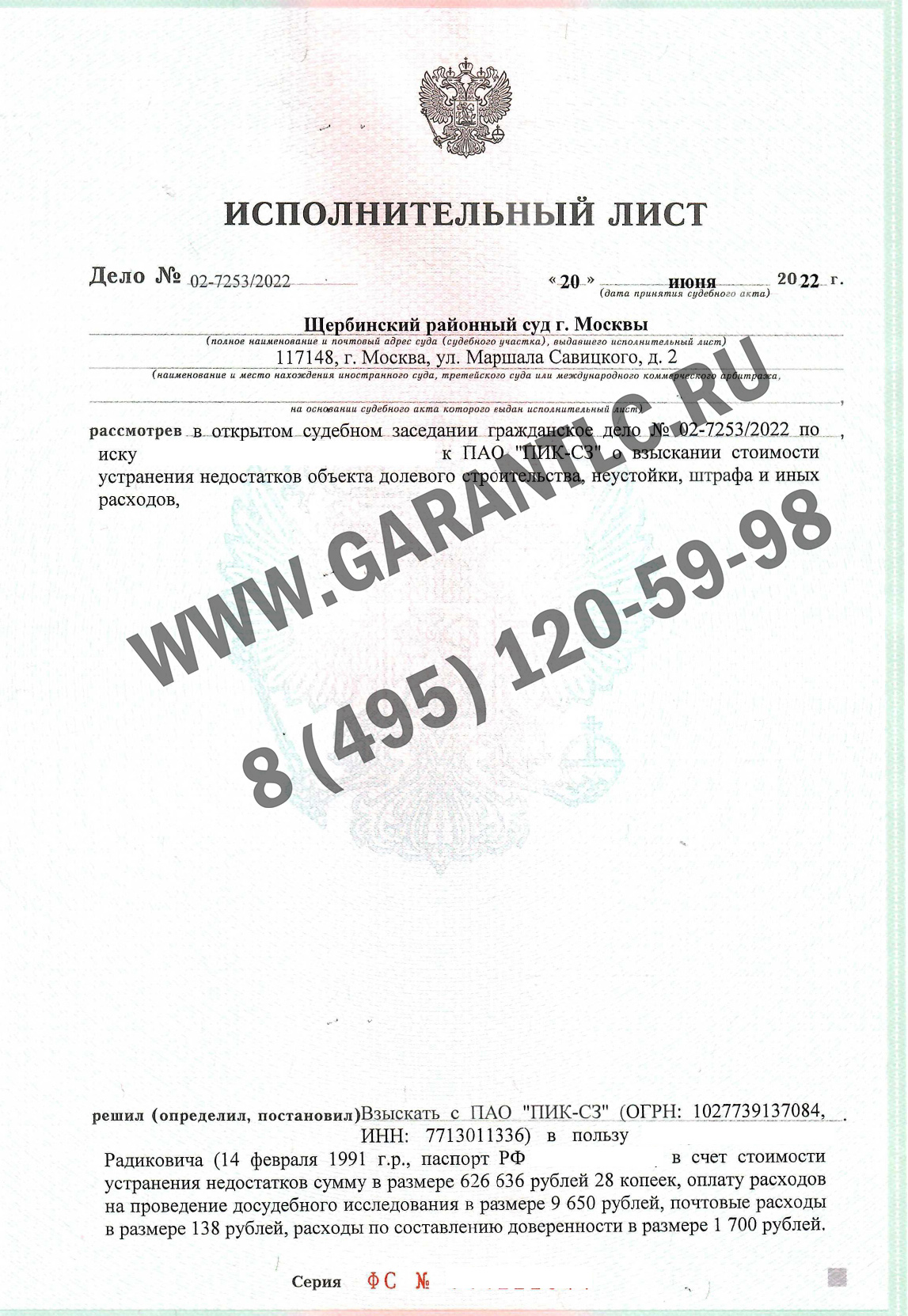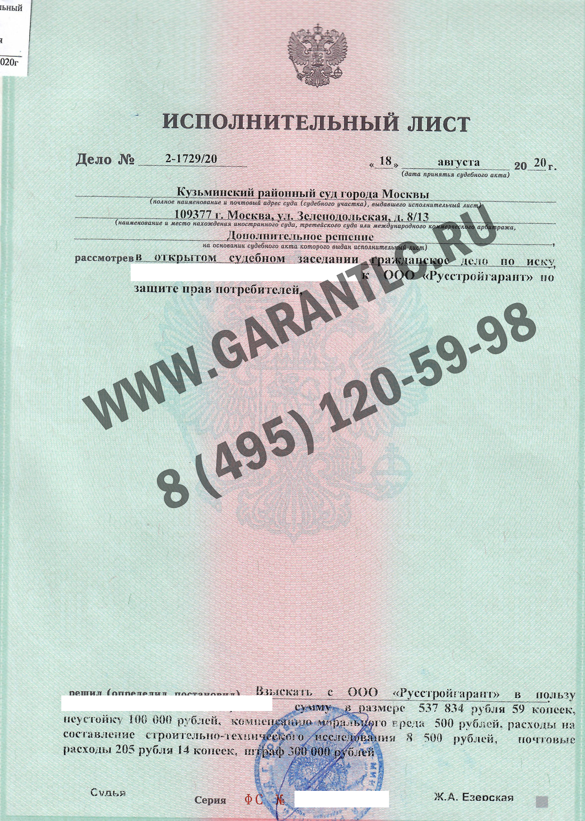 Судебная практика ЮК ГАРАНТ по взысканию компенсации за недостатки в отделке от застройщика (соразмерное уменьшение покупной цены)