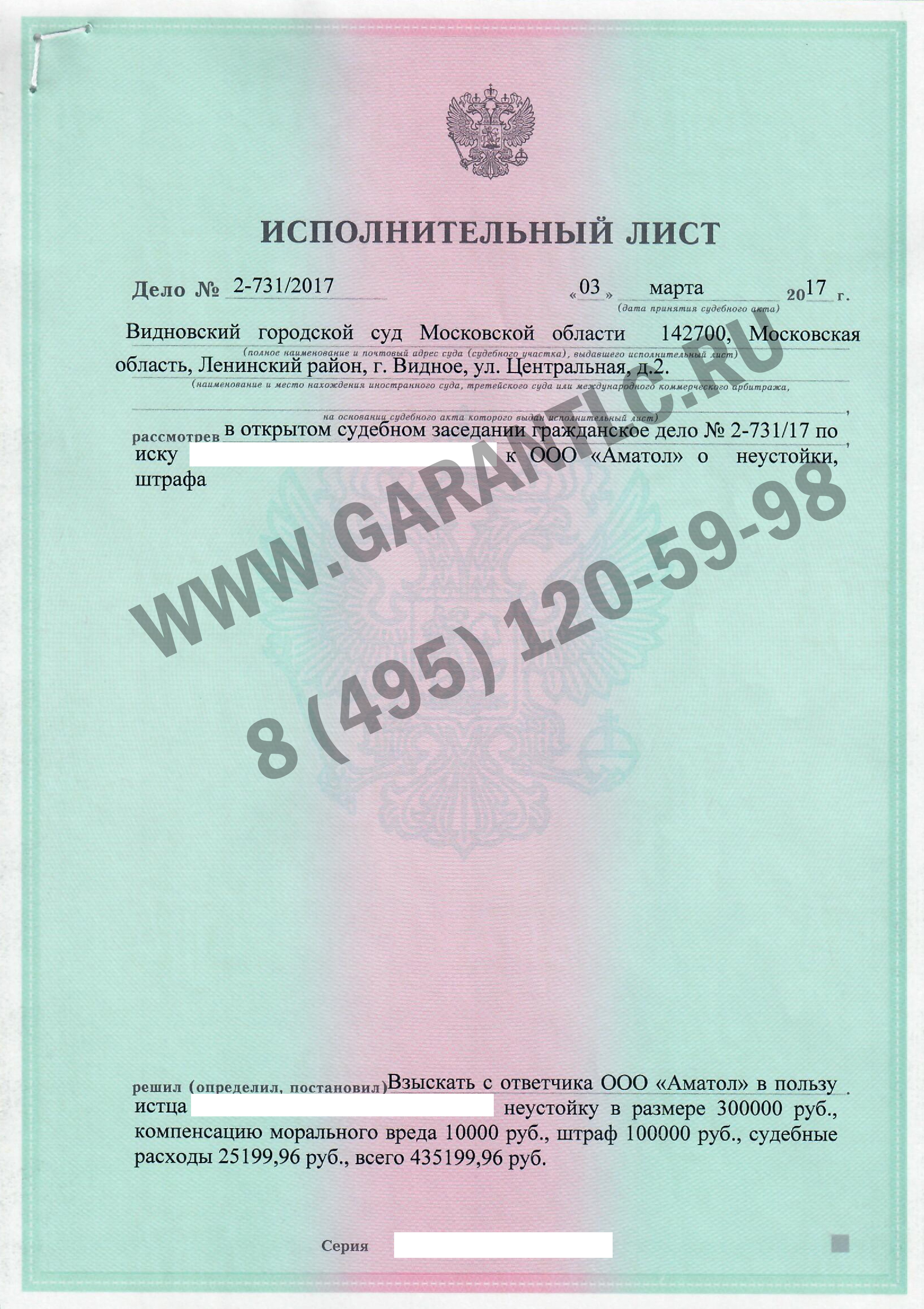 вариантов работы по взысканию неустойки по ДДУ с ООО Аматол