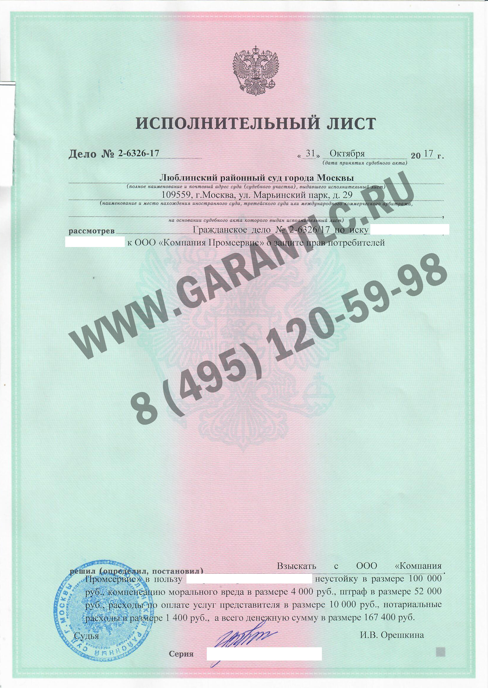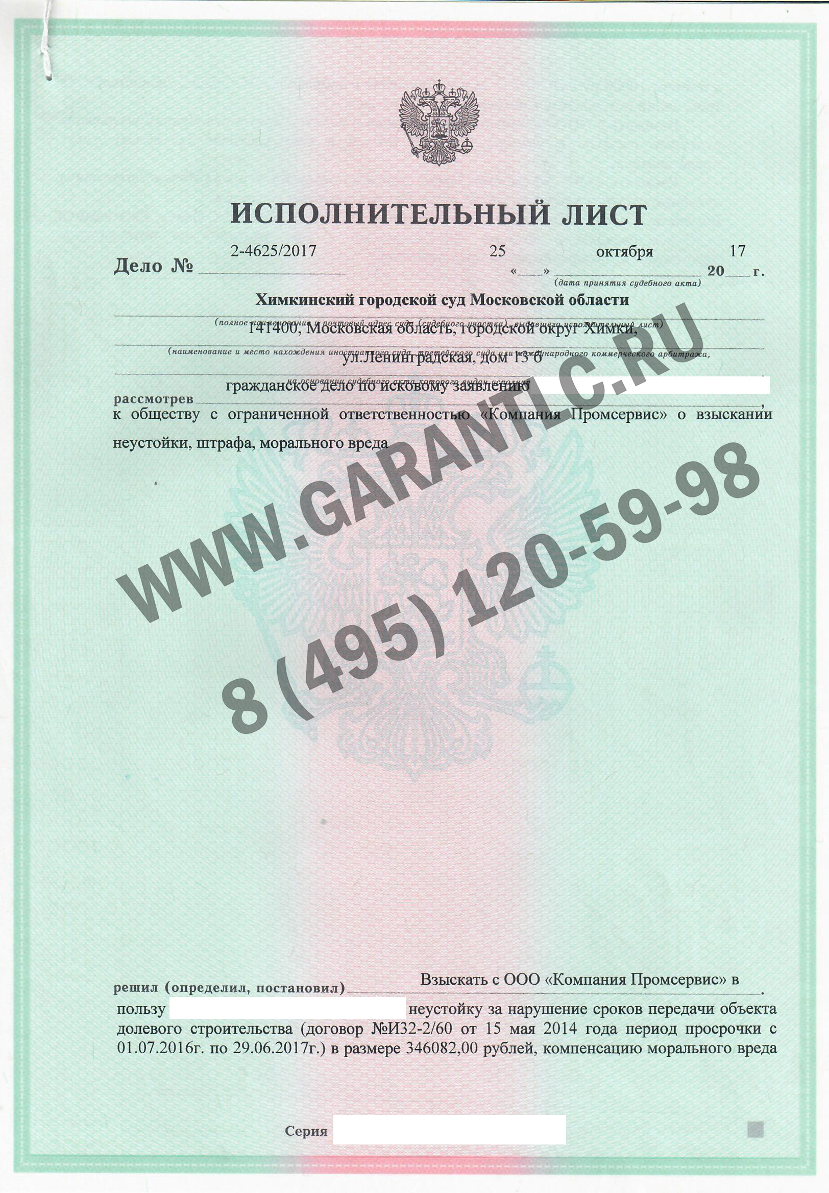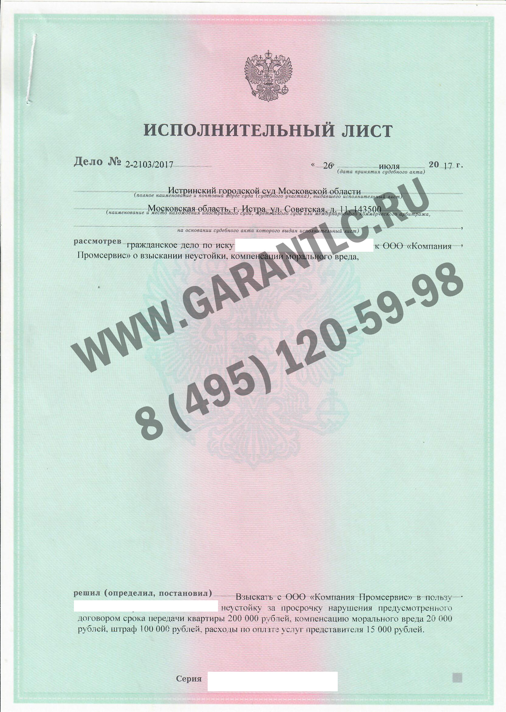 Практика ЮК Гарант по взысканию неустойки по ДДУ в Москве и МО